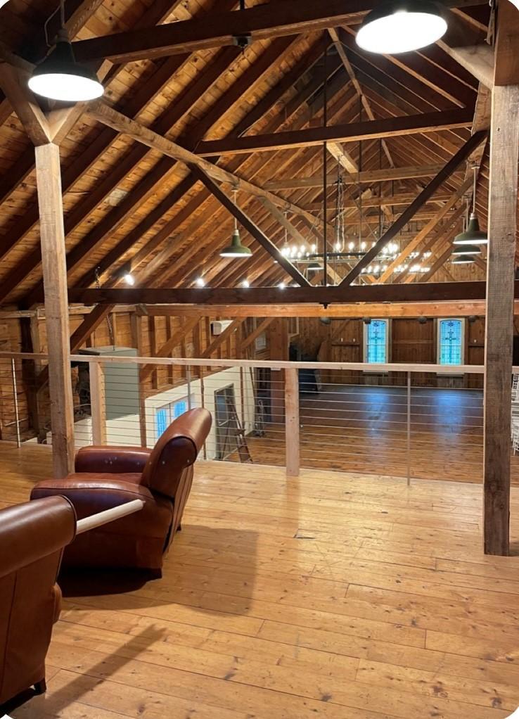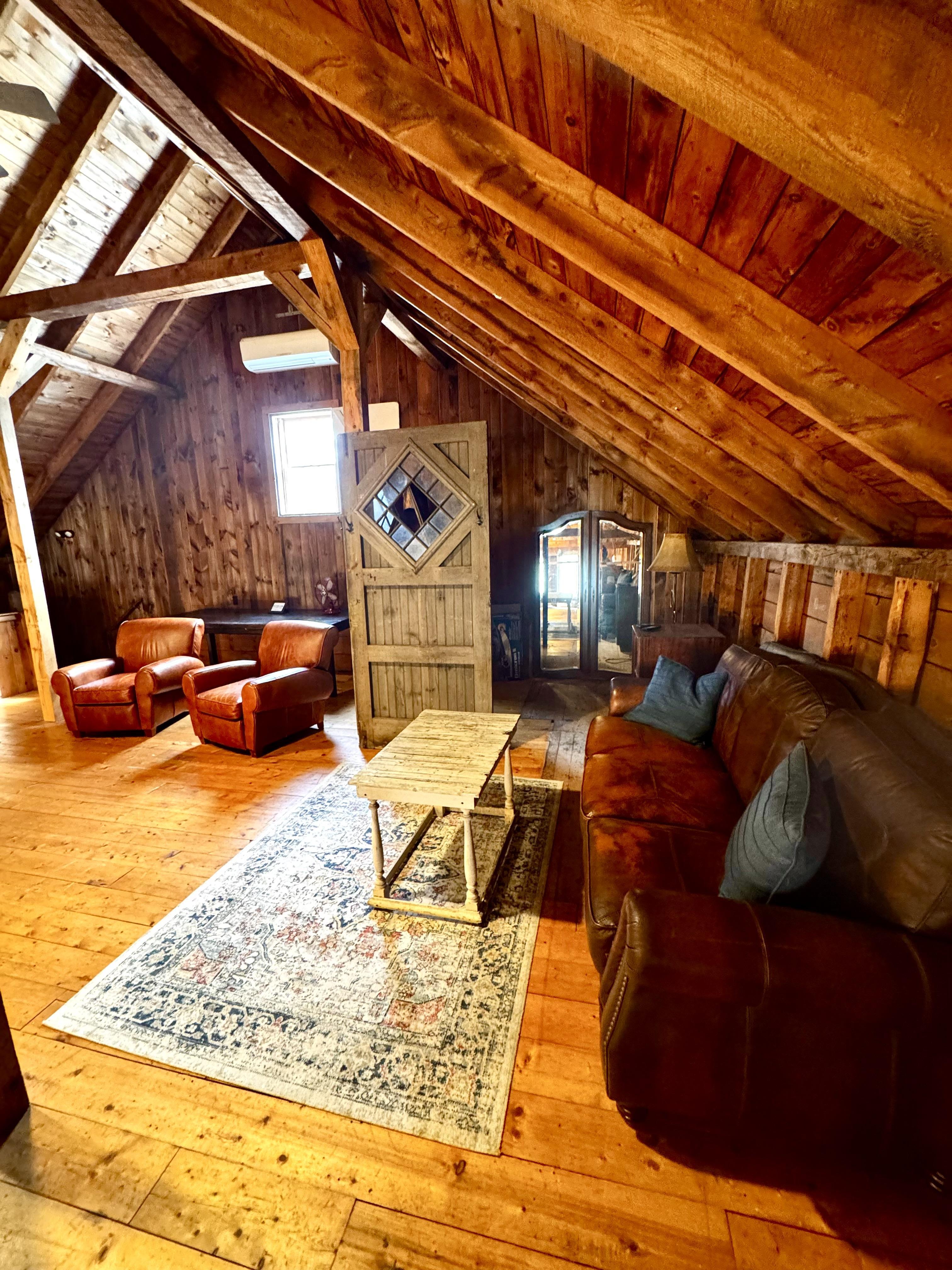 Elegant yet rustic barn theater with expansive vaulted ceilings