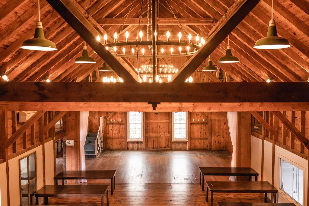 *Dimmable chandeliers *Heating and Air conditioning *Commercial kitchen space with refrigeration *Farm tables & cross back chairs