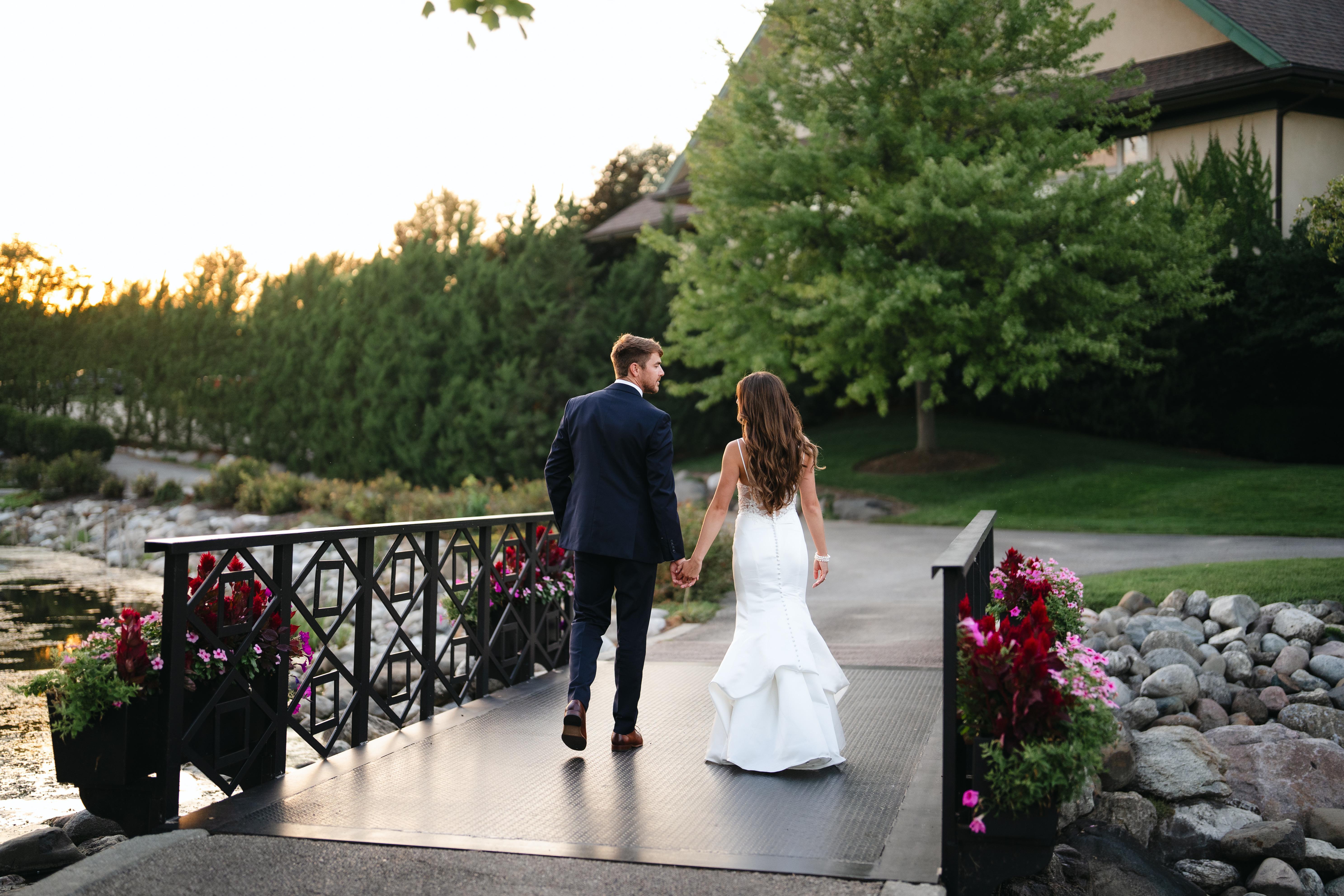 Private suites available for our couples to access throughout the day. Both have private restrooms, full length mirrors and vanities. The Veranda is the ideal space for your guests to relax near a fire table or lounge chair and enjoy our spectacular golf course views. Outdoor Ceremony Site with a golf course backdrop for amazing photos. Beautiful Scenery for those photos you'll have for a lifetime. With lush greenery, flowers and a bridge over the glistening pond.