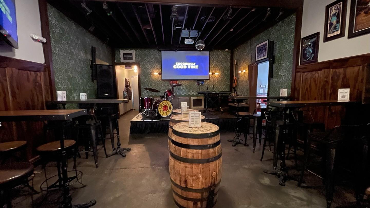 private room, with a dedicated bar Private entrance Can add on private patio for extra fee Great for larger gatherings Has a drop down projection screen and stage with AV or performance capabilities