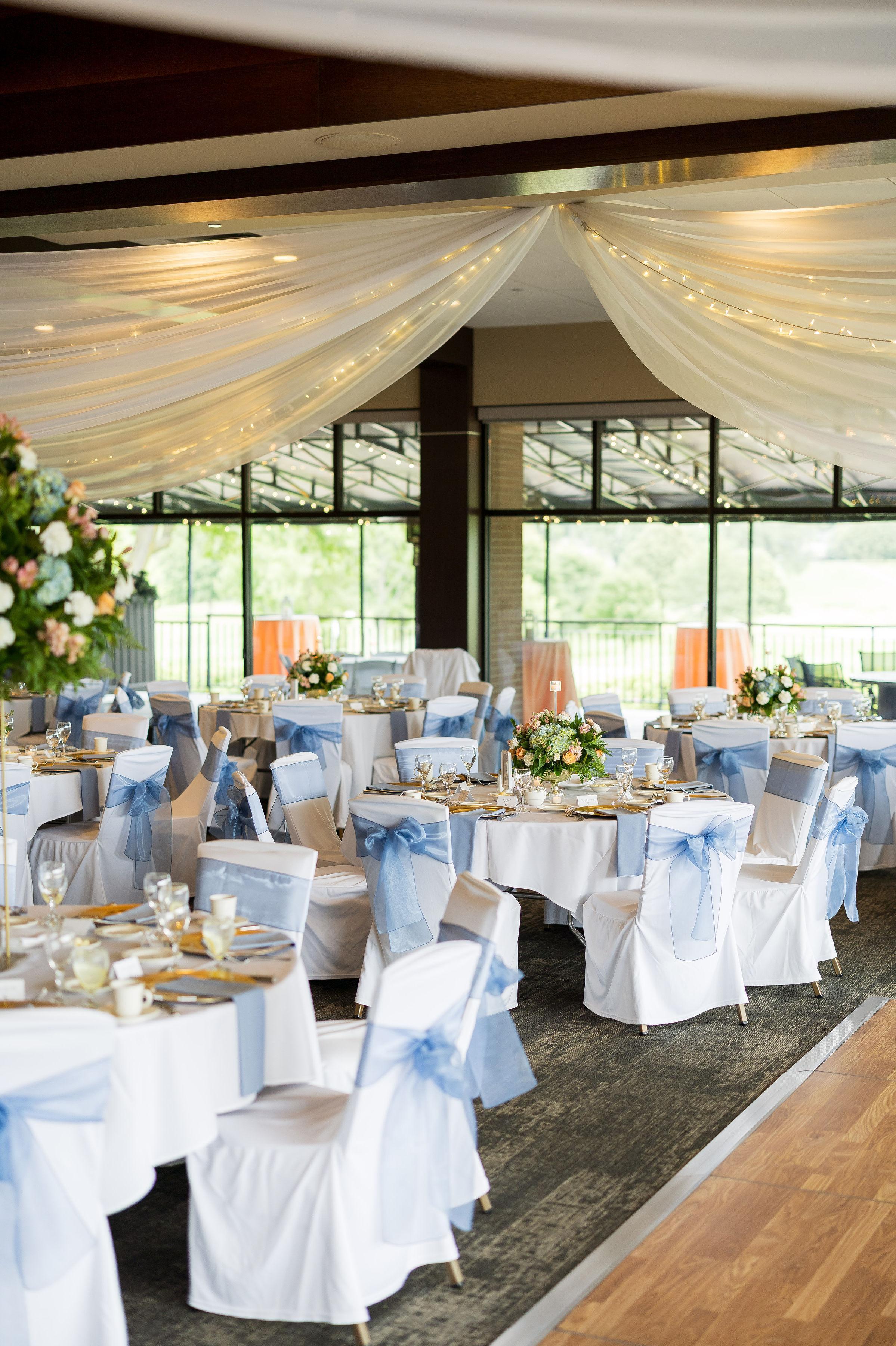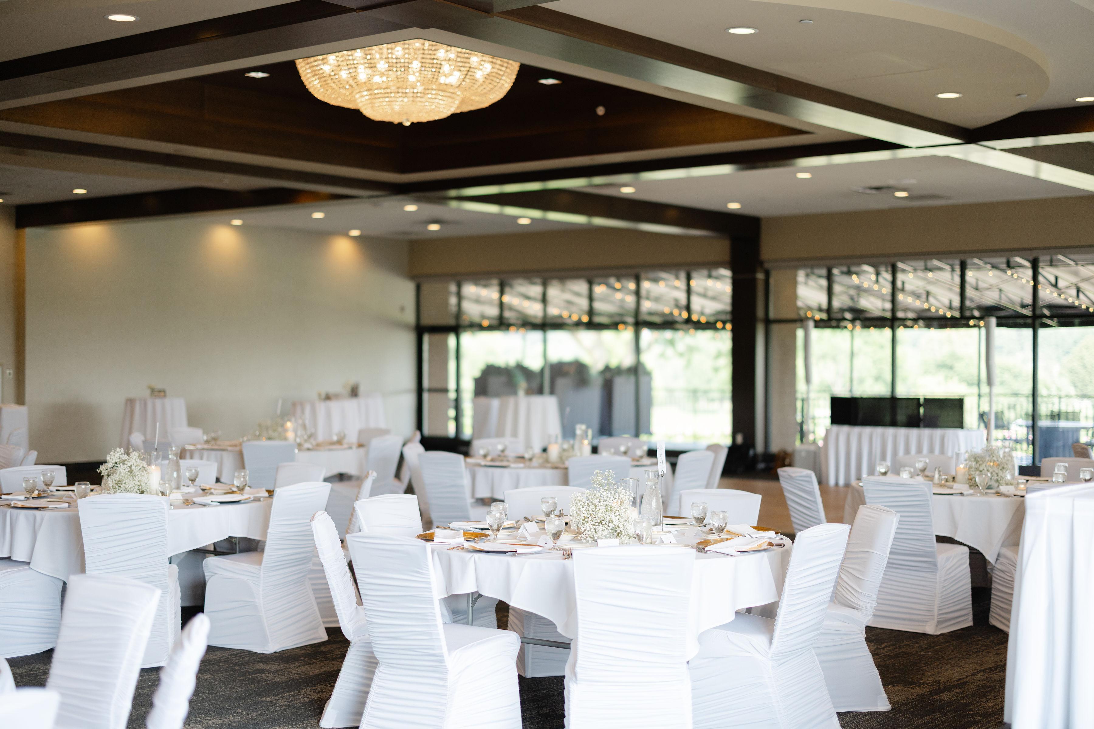 Our Platinum Ballroom is stunning, boasting floor to ceiling windows and breathtaking views. The modern ballroom features top of the line furnishings and two exquisite crystal chandeliers. The room includes use of our spacious terrace which will allow your guests to enjoy the evening breeze and view of the manicured golf course. The Platinum Ballroom holds up to 425 people comfortably for a Wedding.