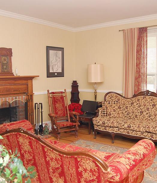 This colonial-style home with antique furniture accommodates our guests with 4 bedrooms and 5 bathrooms. With comfortable vintage couches, the West sitting room offers an opportunity to de-stress in quietude. The adjacent East sitting room is destinated for pure entertainment with a flat-screen tv and family-friendly games. A formal dining room and chef's kitchen with two ovens make it easy for our guests to prepare an amazing meal without limitations. Continental breakfast is always available at the wet bar that is located inside the chef's kitchen for those quick grabs. Laundry room access is available to guests as well as a full front porch and a sunroom.
