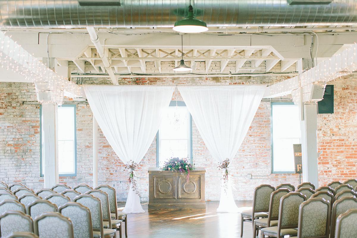 The Gallery is perfect for smaller weddings. The warm and cozy atmosphere with our century-old brick walls, original hard wood floor and exposed beams creates a stunning setting for any occasion. In addition to the historic charm of our intimate room, we have added additional warm lighting features, soft drapery and a romantic chandelier to truly set the space apart.
