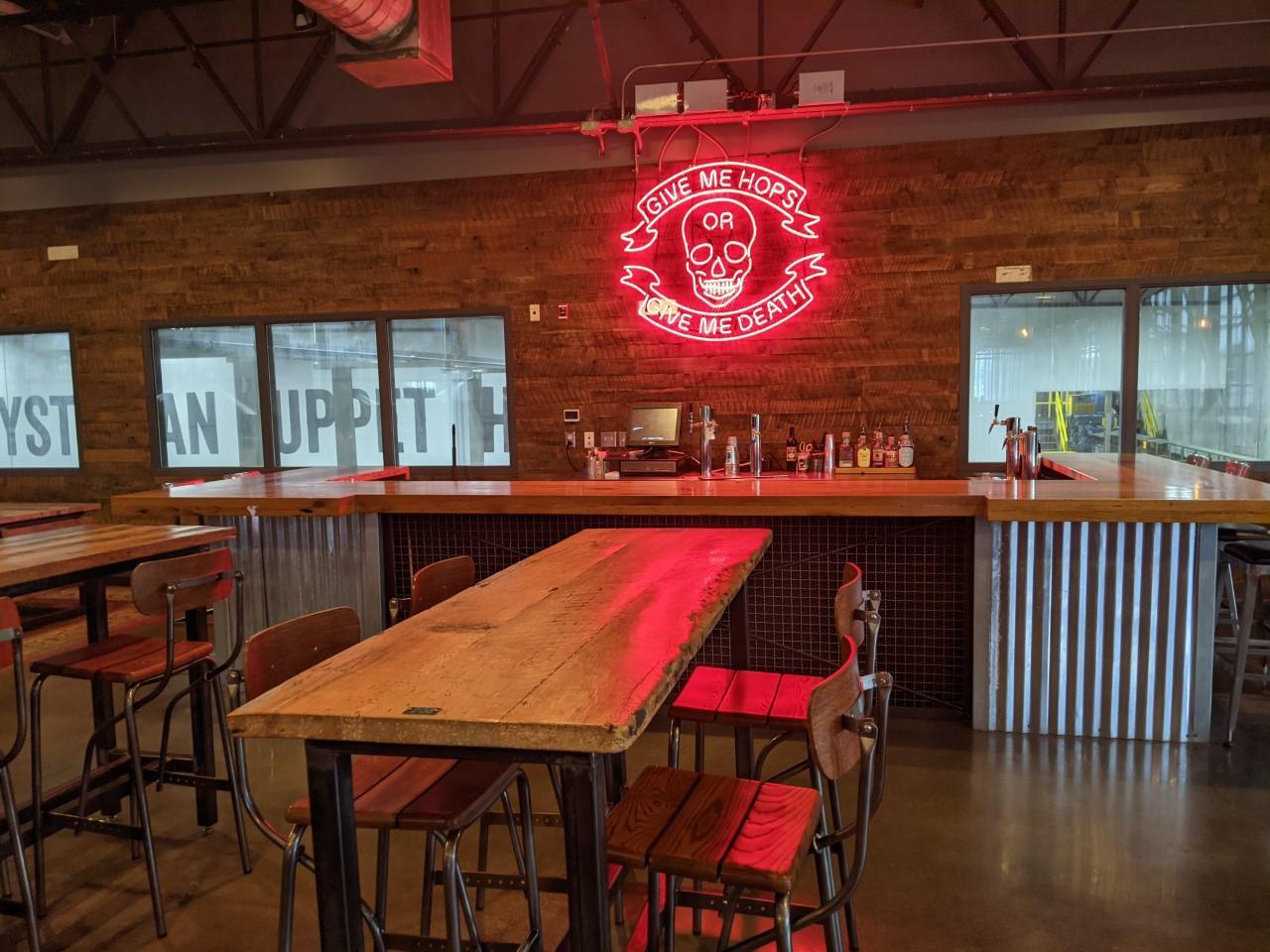The Container Bar is located outside, in front of the DogHouse Hotel. The space has its own full bar and 6 picnic tables. The space can hold 36 seated guests or 65 standing. For a private event, BrewDog will place signage around the space to “section” it off for your event. All guests will receive a wristband to help maintain a private space in this outdoor venue.