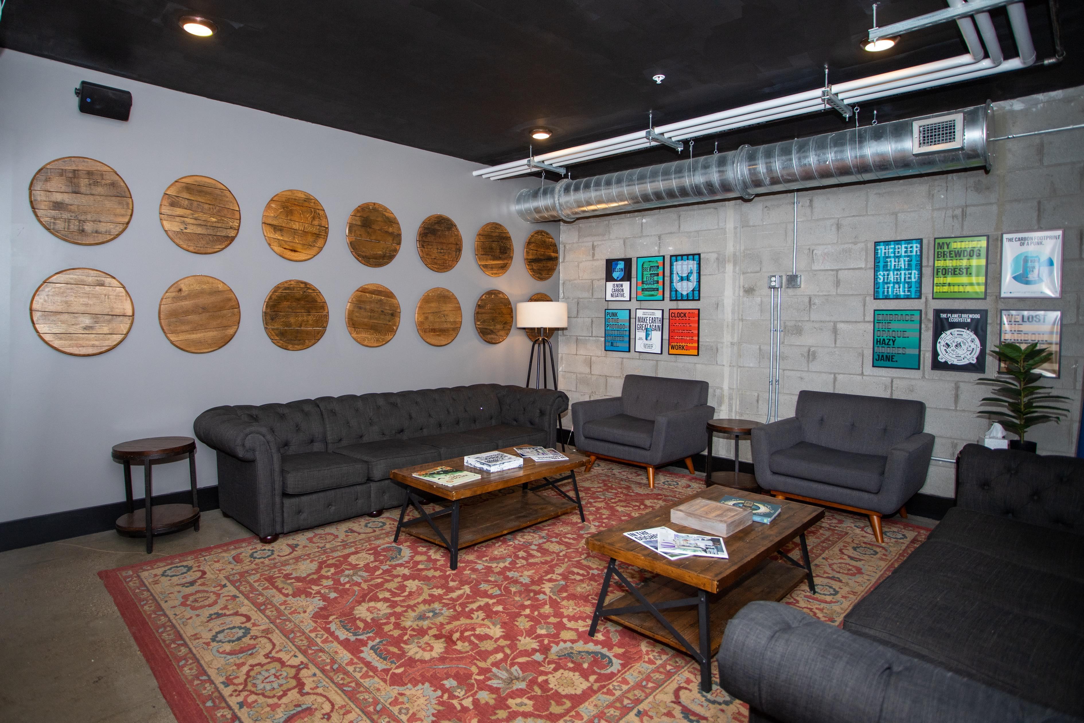 The Sour Lounge is in our hotel, and guests are given free access to the space. The room seats up to 12 people comfortably, with two 4-cushion couches and 2 oversized chairs. There is a TV available for use with HDMI hookups for presentations.