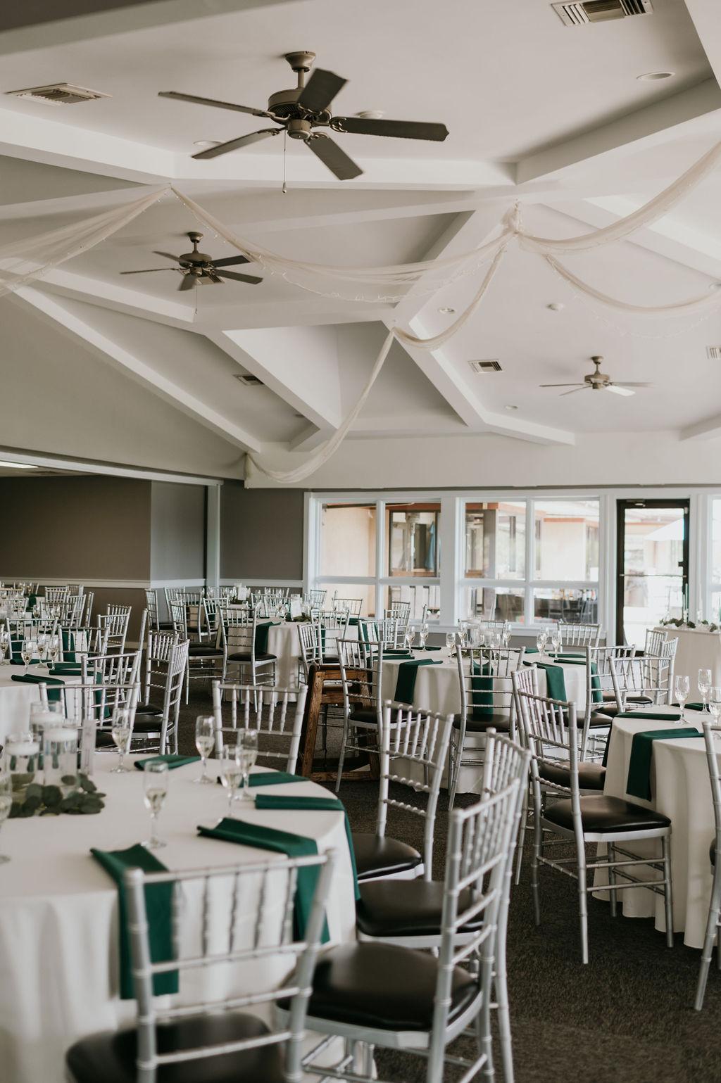 - Dimmers for total light customization - Heating & Air Conditioning - Wooden dancefloor - Newly renovated bar - All tables, chairs, linens & centerpieces - Backdrop - String lighting & ceiling drapery