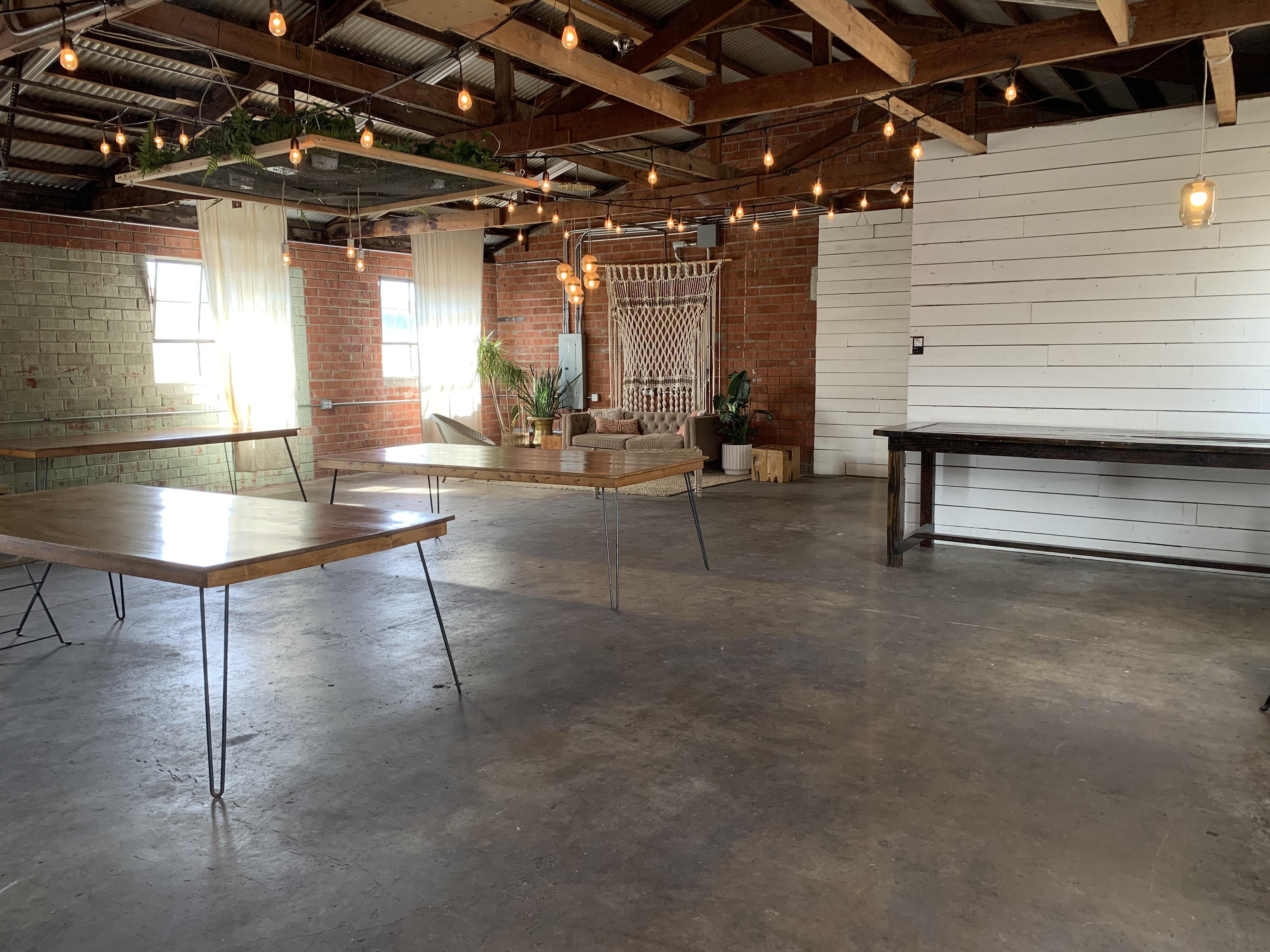 Couples looking to celebrate their bridal shower, rehearsal dinner, reception, and/or baby shower each find Brick + Laurel to be a perfectly fitted, styled space for their gatherings. With no vendor/food restrictions, you can plan your event the way you'd like. BRICK + LAUREL is an intimate warehouse space in La Mesa, CA. Designed for Gatherings, workshops, and photoshoots. Under 50 people fit this space best. You will have access to 1 farm table, lounge area, a full-sized bar built into the space for your use with space rental. We have no restrictions on food or catering giving you the freedom to plan the event that is perfect for you! Our rental rate is $135/hr or $1795 for all day access (8a-12a). We have 4 dining tables and 45 chairs that can be included for an additional $150 (these are included on the all day $1795 package).