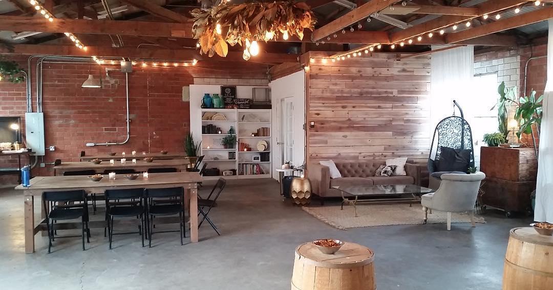 BRICK + LAUREL is an intimate warehouse space in La Mesa, CA Designed for GATHERINGS and CELEBRATIONS of all types. Under 50 people fits this space best. You will have access to: 1 farm table, a lounge area, welcome chalkboard, full sized bar built into the space for your use with space rental. We have no restrictions on food or catering giving you the freedom to plan the event that is perfect for you!