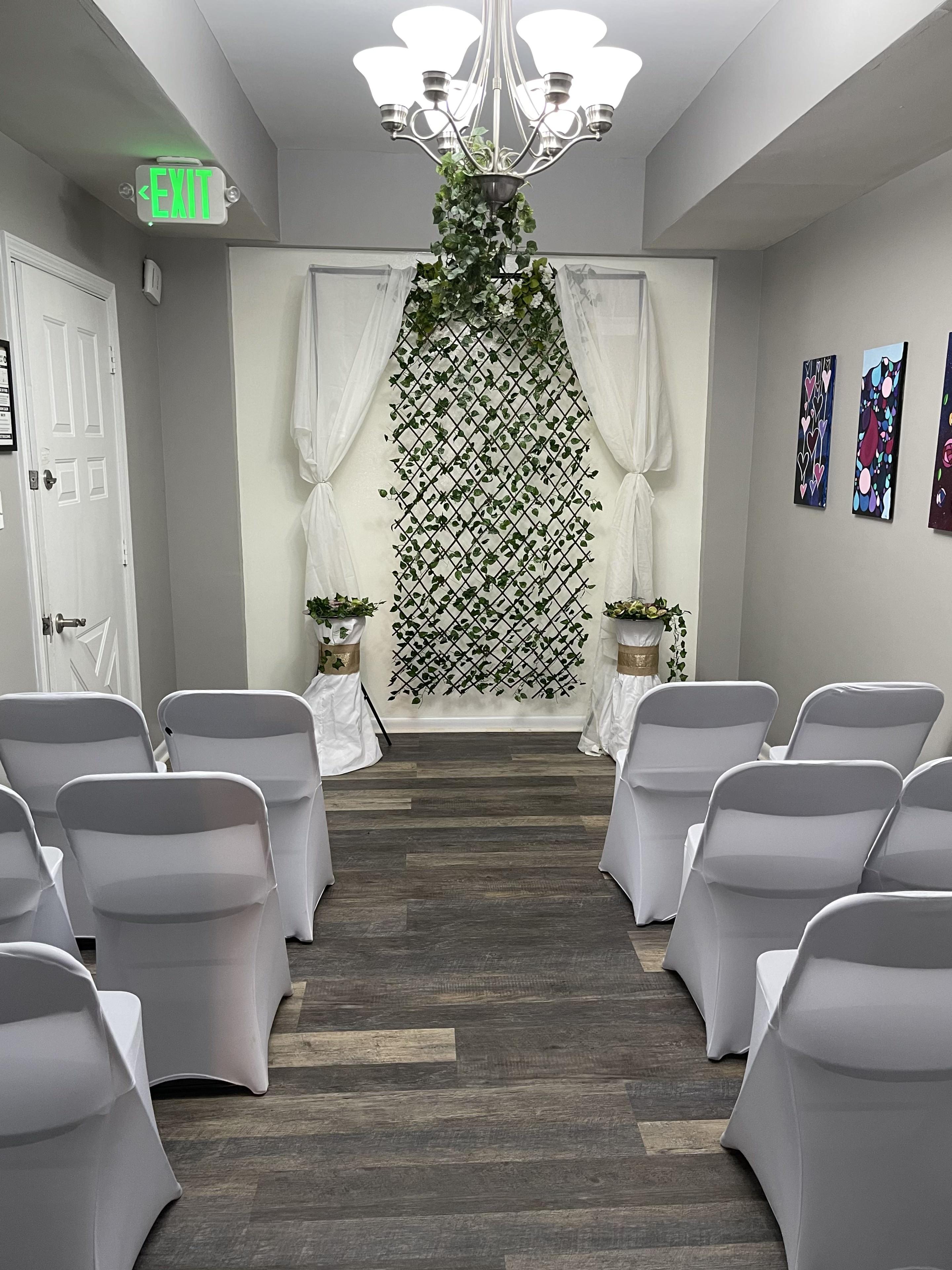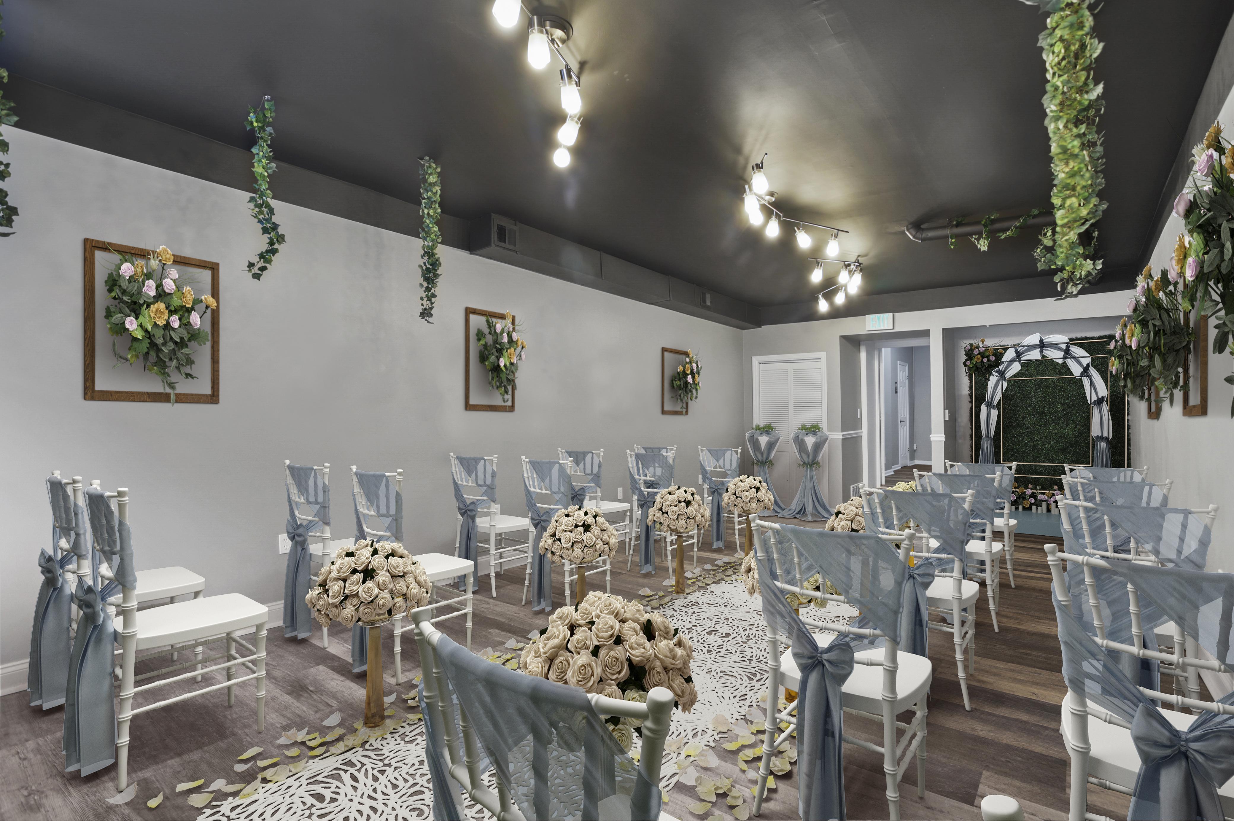 The venue boast three distinct areas that have been used for: a bridal suite, ceremony, cocktail hour and wedding reception. The entire space can host 50 people however, for a seated reception we suggest 25 persons.