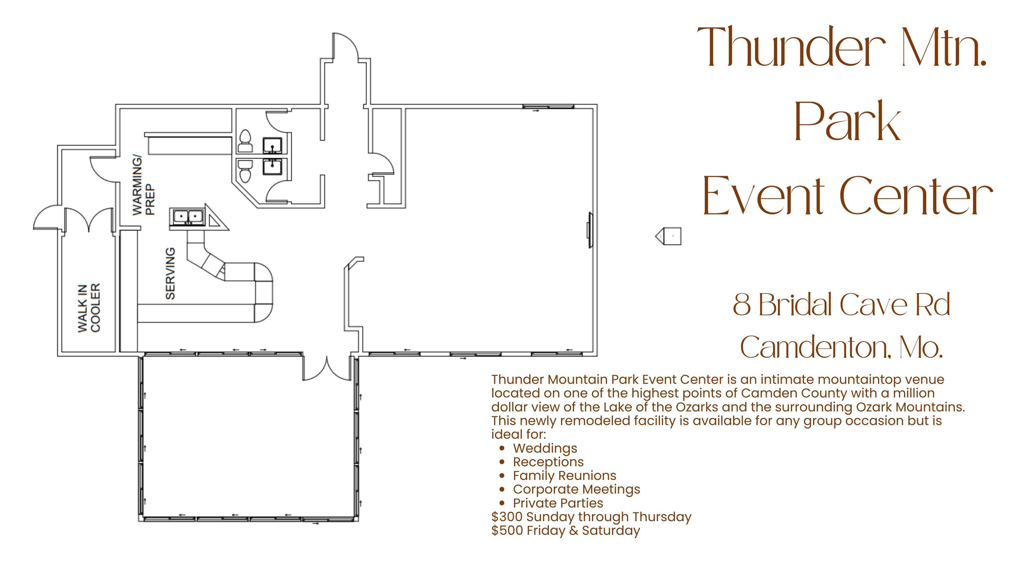 Thunder park mountain events in Camdenton was a absolutely stunning place/perfect location to host any event. We hosted our reception hall here, and Mrs. Lindsey, the coordinator over this event space was just amazing from start to finish. She communicated very effectively throughout the process, she was a big help with last minute hiccups, and her energy and attitude was just very professional and a breath of fresh air. I would definitely highly recommend service at this space. If I could have all my special events here I would!!