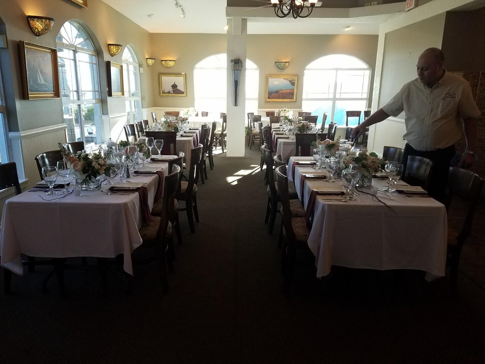 Our second floor banquet space seats up to 65 guests in our beautiful water view space. Enjoy expertly prepared dishes from our culinary staff. We offer customizable menus based on your needs. Hors d'oeuvres, Buffet Style, or Plated options are available.
