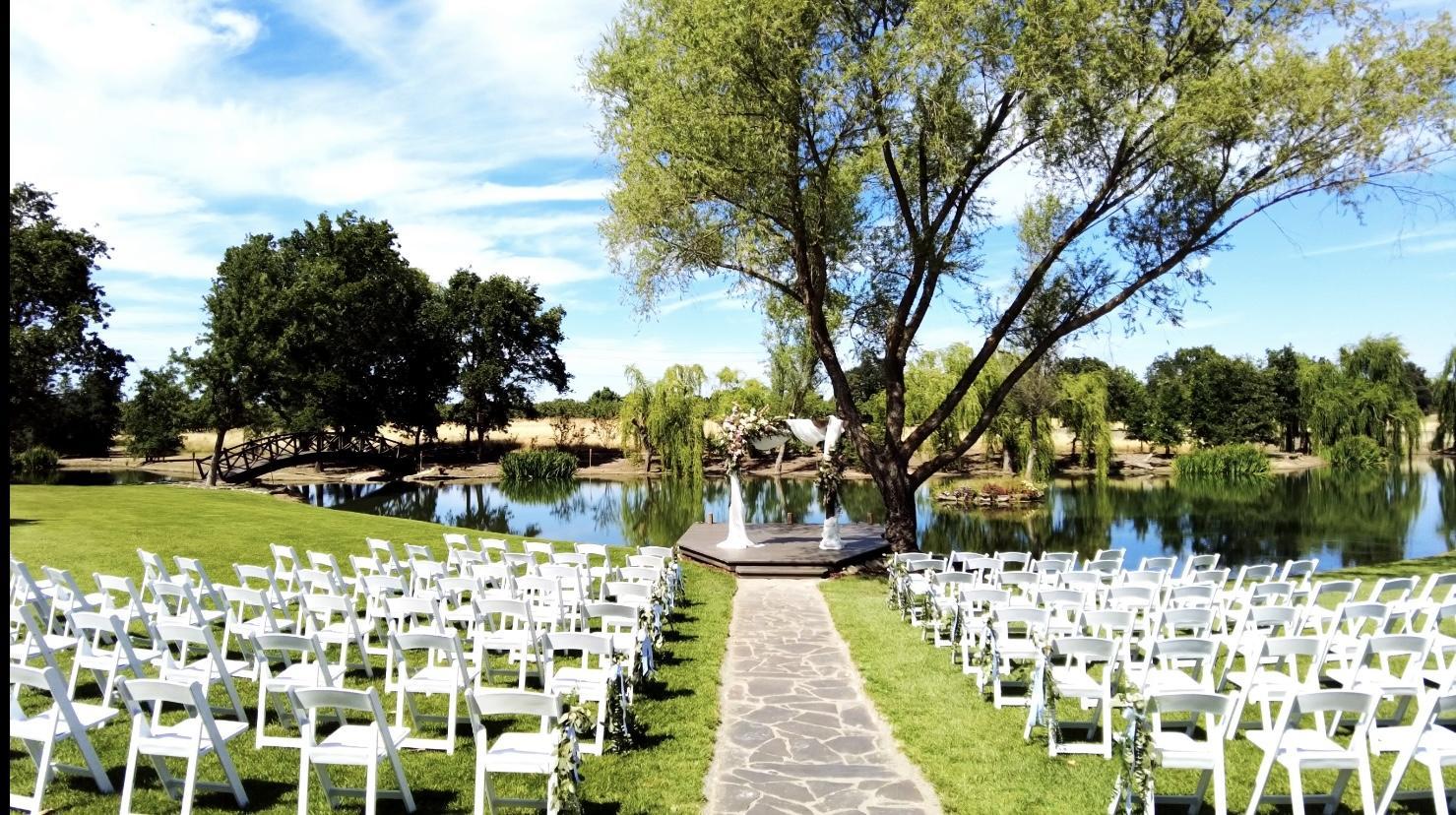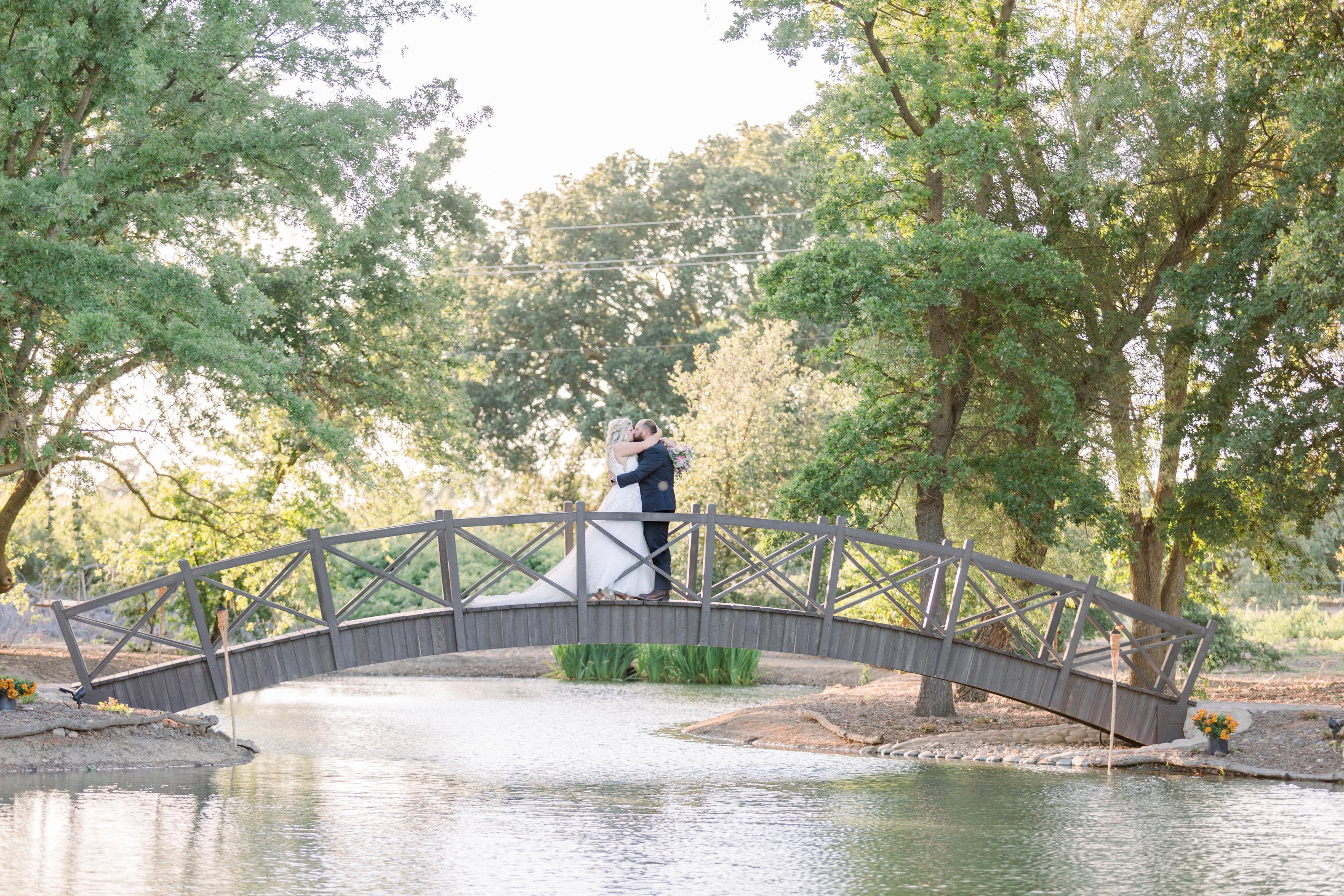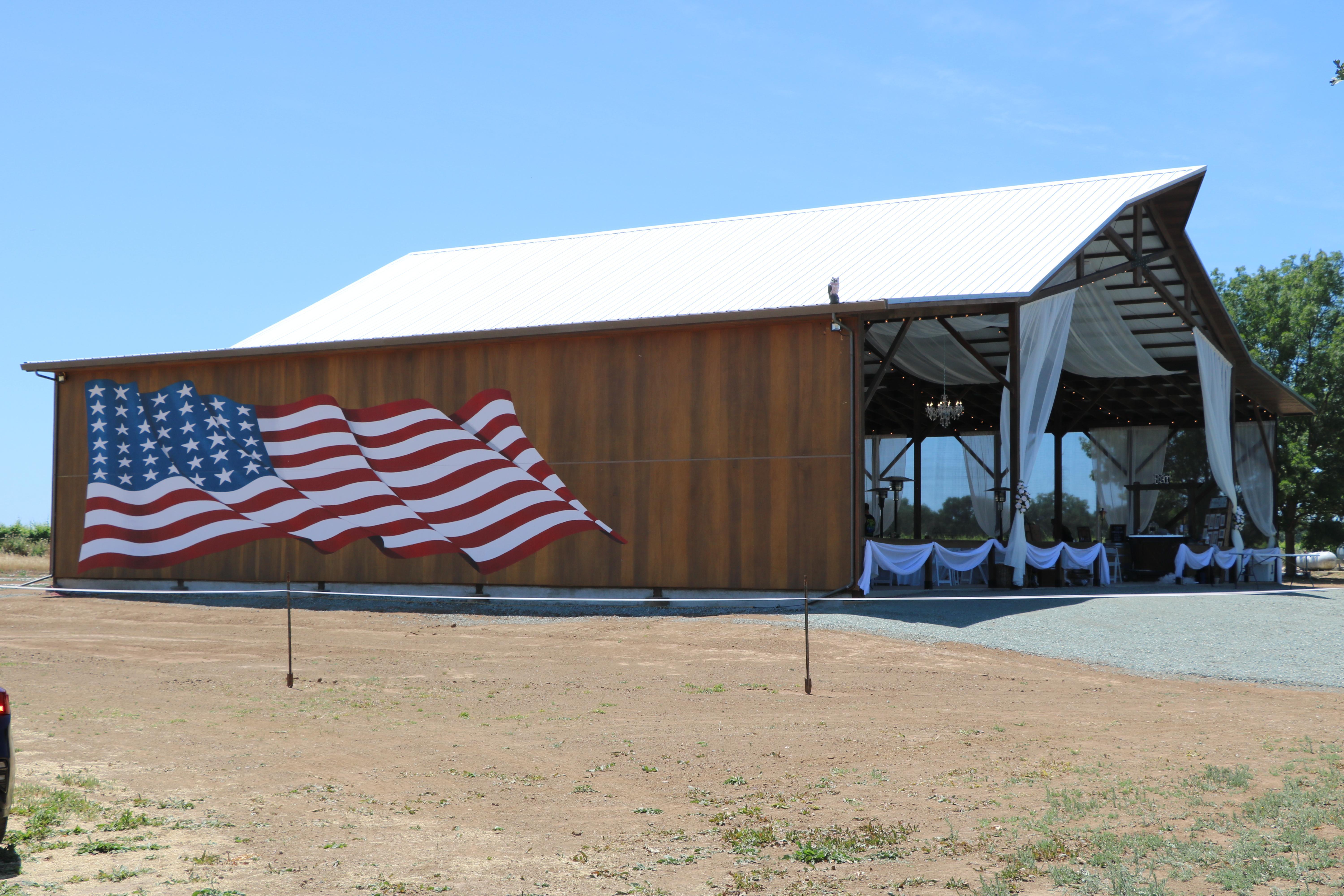 Visit us at Bridgewood- events.c o m A tranquil setting, nestled upon seventeen secluded acres of beautiful open farmland. Bridgewood Events is bordered by scenic vineyards and lovely almond orchards. The focal point of the venue is a breathtaking pond surrounded by mature trees and plush green lawns, highlighted by a picturesque arched wooden bridge. Offering a rustic 4380 square foot rustic style barn that proudly boasts an americana painting of the American flag waving gently on a breeze. The barn displays open beams with dimmable bistro lighting. Your guests will also adore the scenic views of the waterfront ceremony area. This intimate setting is perfect for an elegant country wedding, At Bridgewood you’ll feel like your many miles away- situated on a quiet, dead end country road. Our mission is to provide you with a stunning backdrop for your event that will wow your friends and family and create amazing memories that will last a lifetime.
