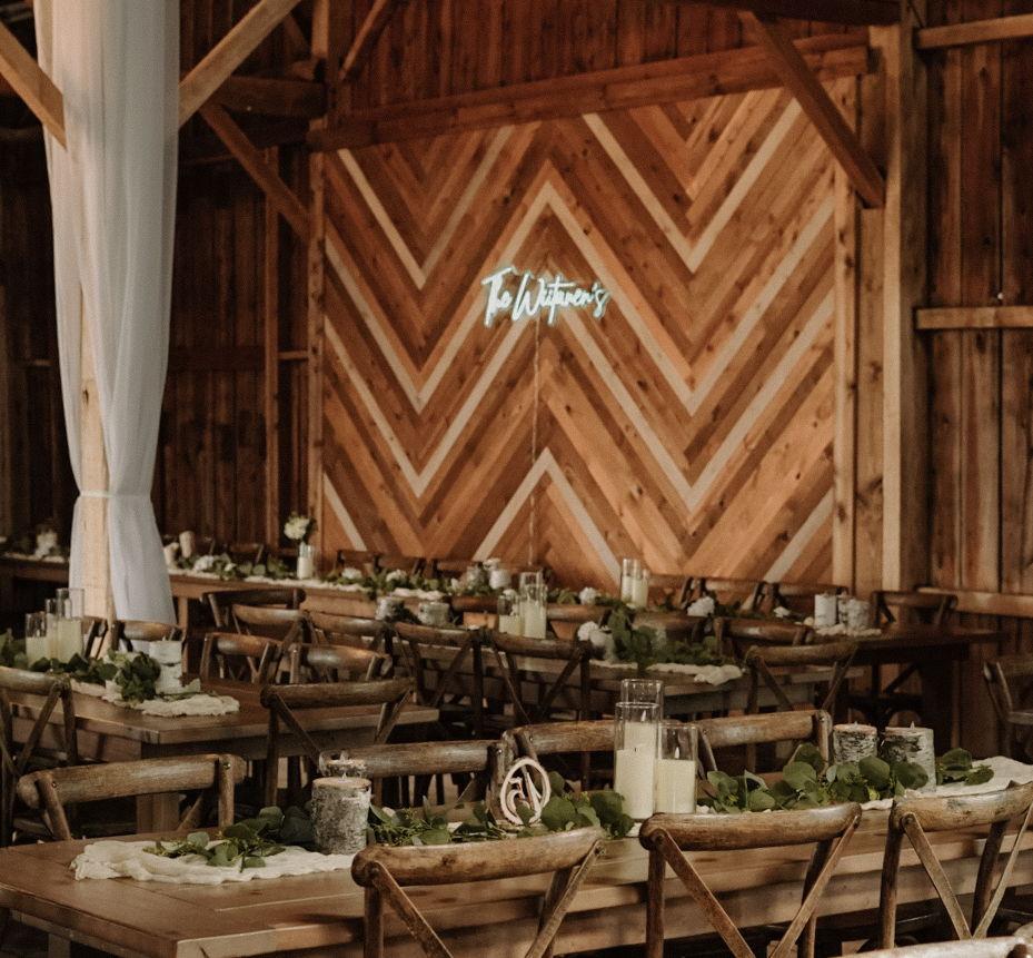 - 9ft Farmhouse Tables - Wood, crossback chairs - Bridal Suite & Groom's Bar - Full Ceremony Setup - Everything's included, no upcharges, ever.