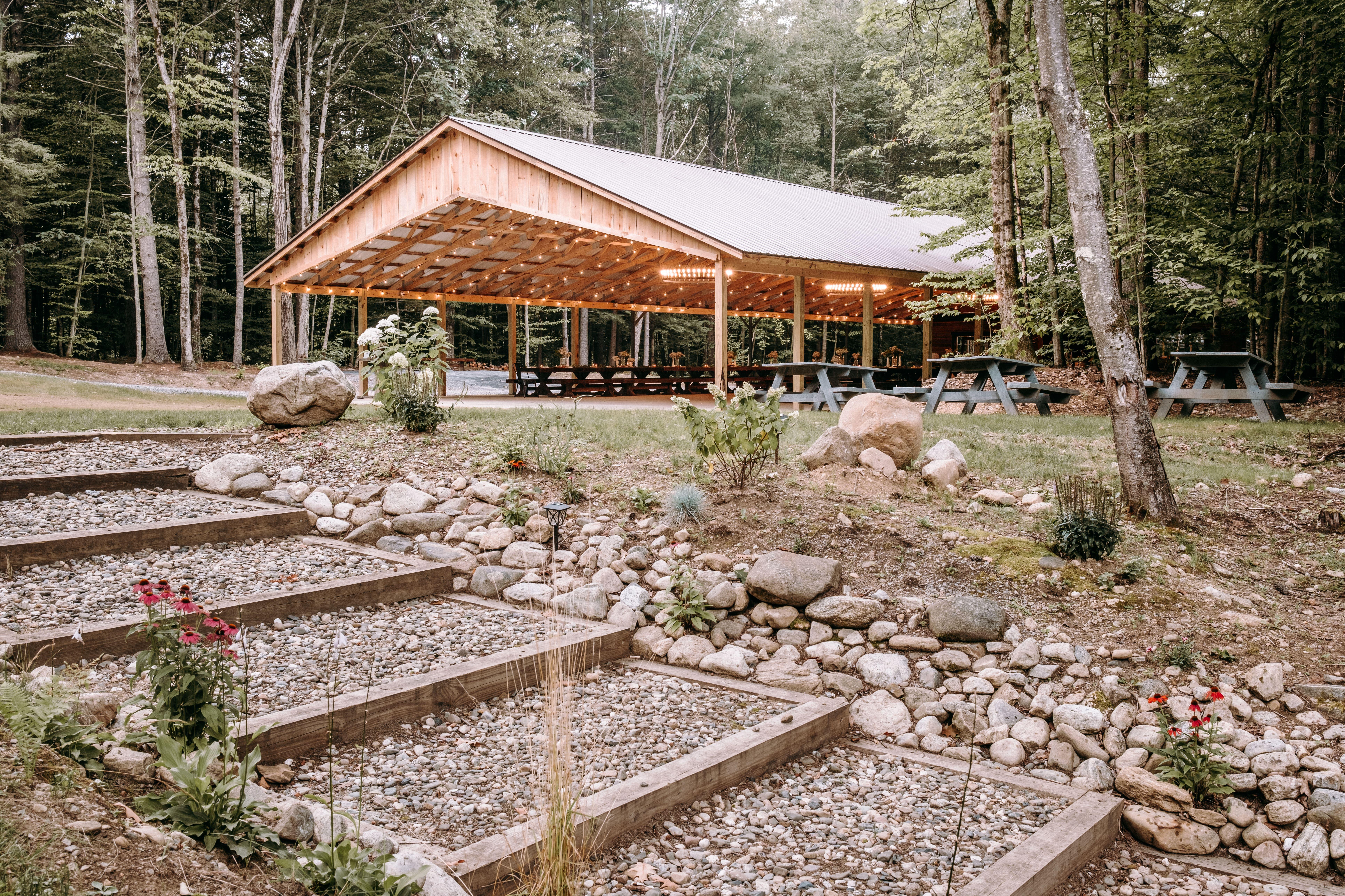 Couples will have the exclusive use of Brookledge for two nights. Up to 200 guests will enjoy a ceremony at the Camp Chapel with custom benches to enhance nature. Your guests will walk along the wooden pathway to Raymond’s Roost and Pond for cocktail hour. Your 5-hour reception will be celebrated at The Fireside Pavilion. Lodging for two evenings in our cabins and glamping tents.