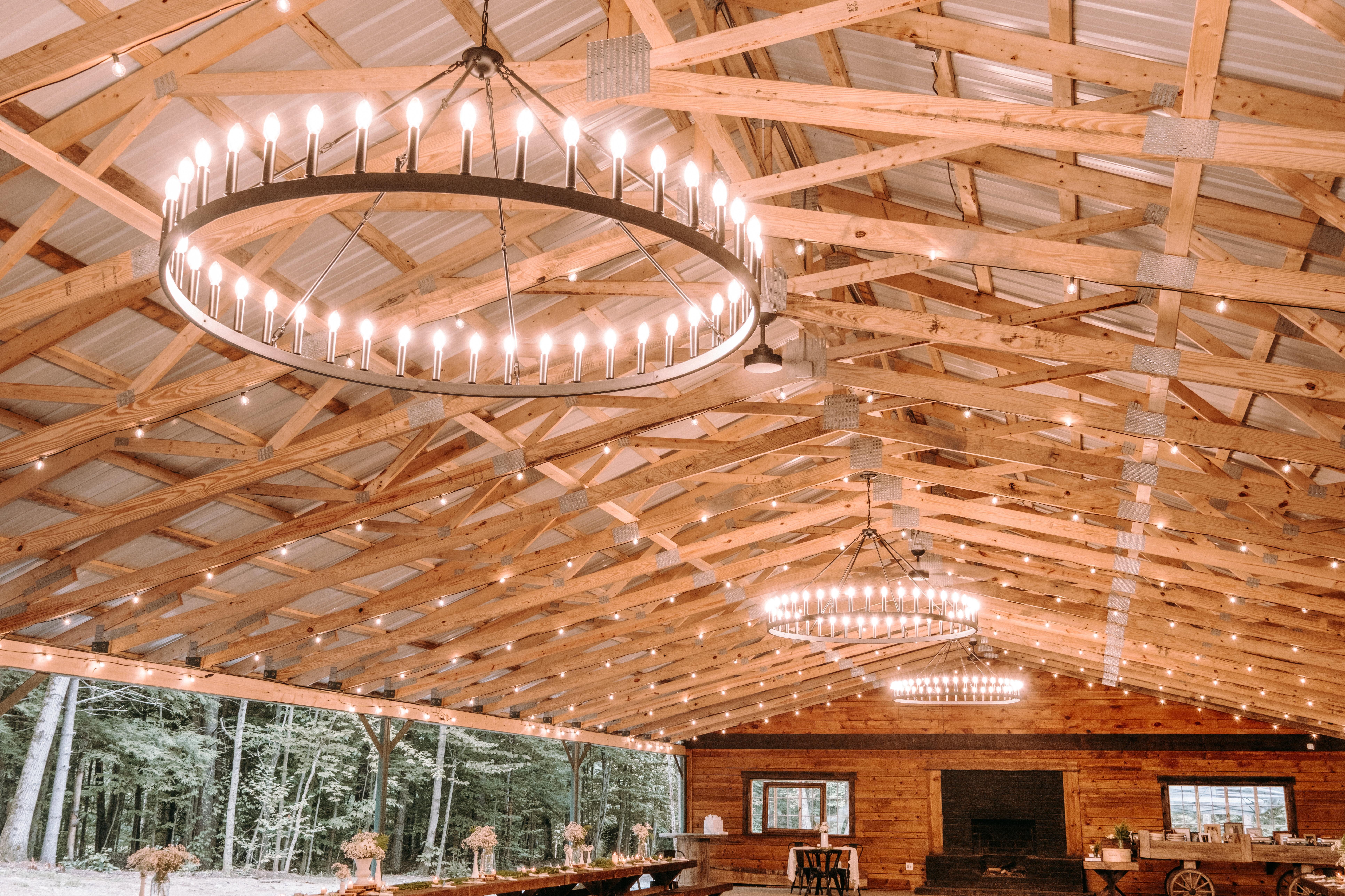 The Fireside Pavilion offers rustic elegance and enchanting simplicity. The atmosphere is set by the custom farmhouse tables, benches, and chairs not taking away from the working fireplace. Crafted with care, these wooden furnishings evoke a sense of warmth and authenticity. As daylight fades the Fireside Pavilion transforms into a magical haven bathed in the soft glow of round chandeliers and delicate cafe lights. Guests enjoy a space to dance and to spend time with loved ones.