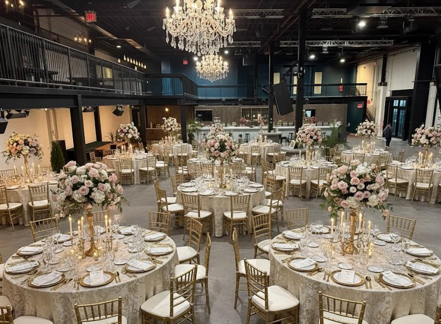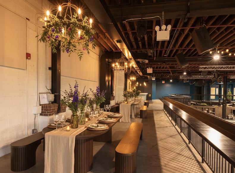 Brooklyn Roots Collective is a stunning indoor-outdoor sustainably restored former paper factory features soaring ceilings, natural light streaming through paned windows, and doors that open into a private outdoor sanctuary. Couples can exchange vows in the intimate garden, surrounded by lush greenery and upcycled structures. Inside, the expansive first-floor hall offers an open-plan layout for dinner, dancing, and live entertainment. Industrial-chic details, potted plants, and naturally sourced sustainable elements set a stylish backdrop, while a built-in stage can host bands, DJs, or performers. A mezzanine level adds depth and dimension, complete with a VIP bar and lounge seating. Guests can also enjoy the outdoor courtyard for fresh air and conversation throughout the festivities. With flexible indoor and outdoor settings, Brooklyn Roots Collective accommodates weddings of varying sizes and styles. We can easily accommodate BIG weddings—there’s no need to limit your guest list.