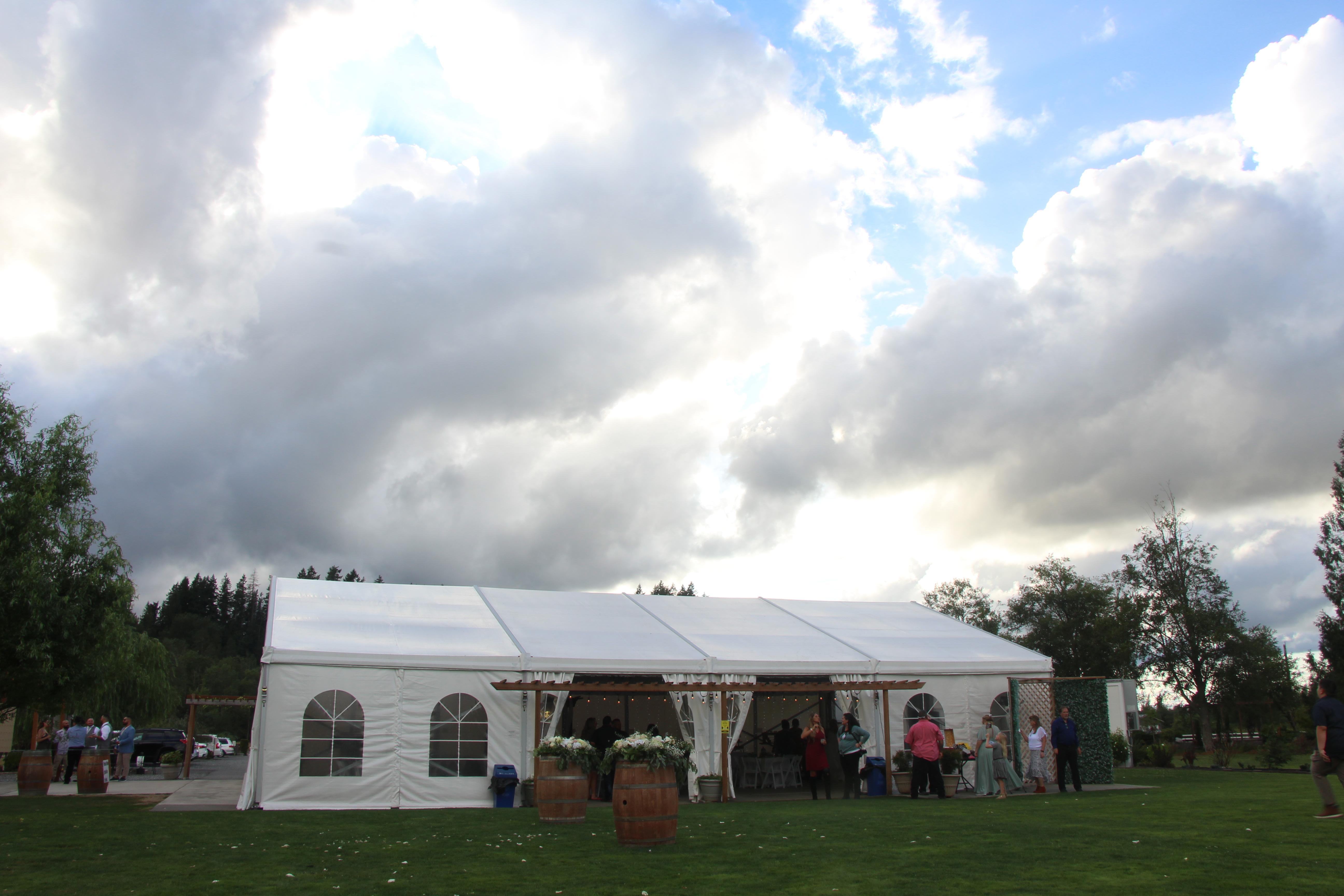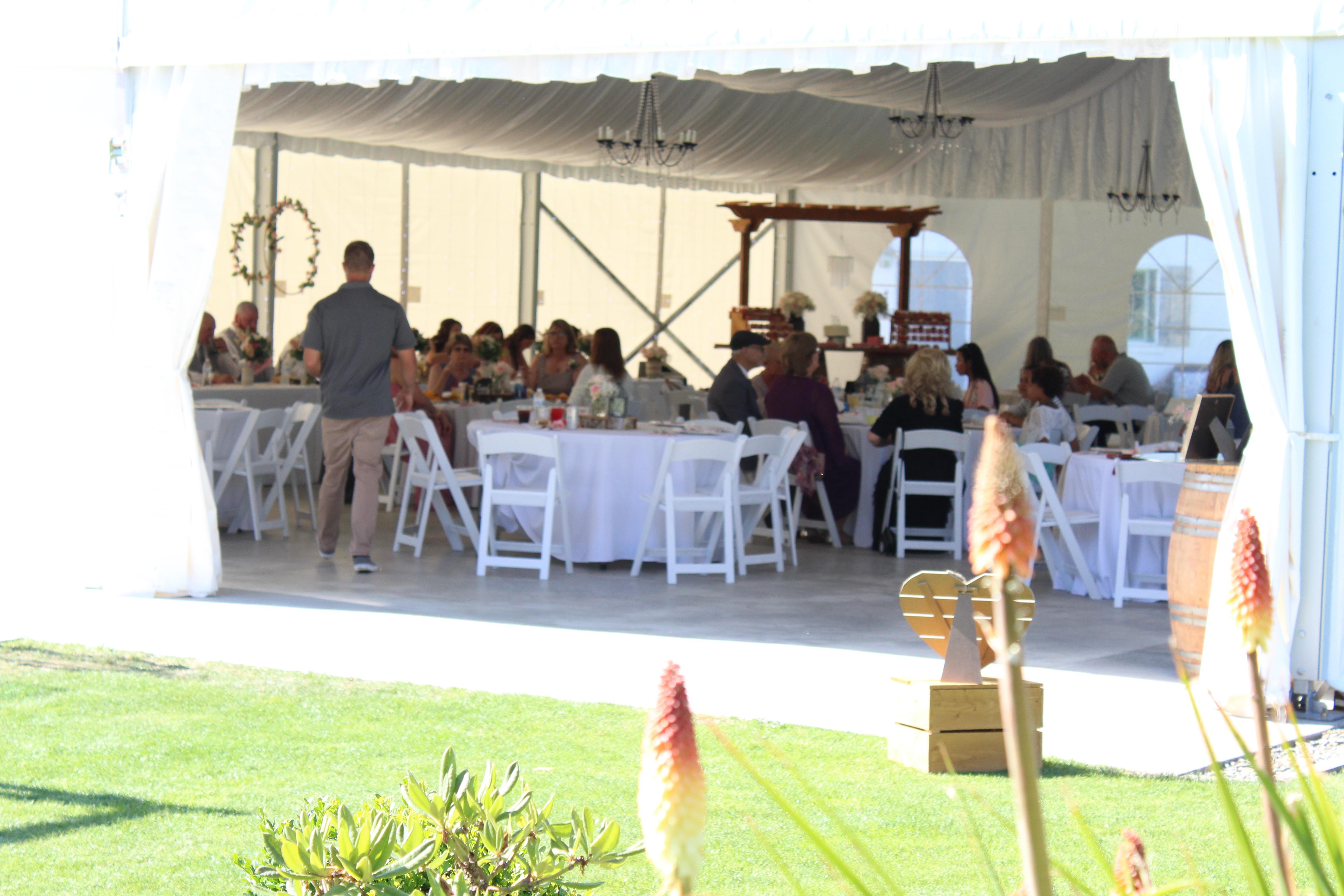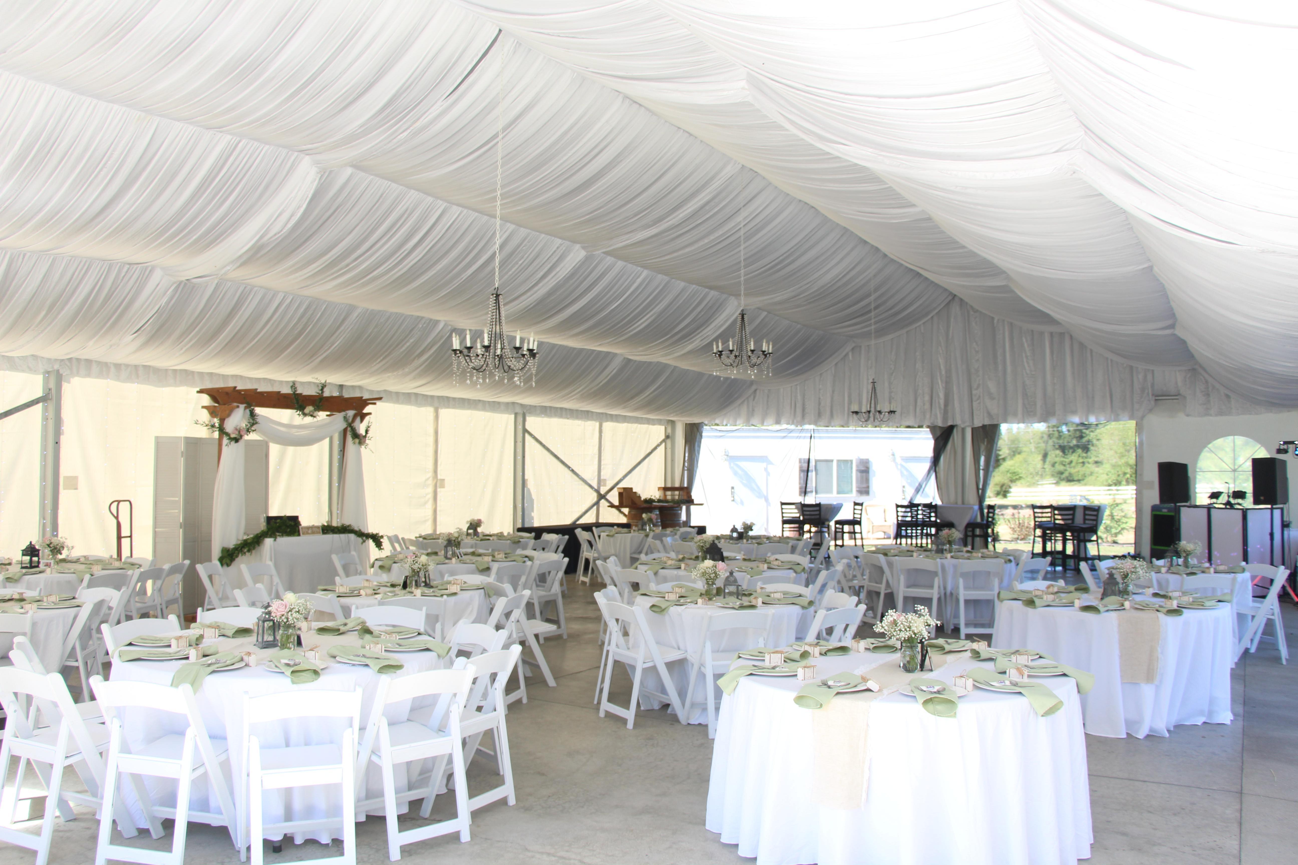 10 hour wedding venue rental 1 hour rehearsal (Friday's) 1-hour event coordinating session Tables and chairs for up to 100 guests Staff setup of tables and chairs to your specifications Wedding party table Bridal quarters Elegant tent reception with white fabric drapery Parking up to 76 vehicles including full ADA Facility Coordinator Wood Barrel glass top gift table Bistro area with lights & misters Bistro tables with umbrellas