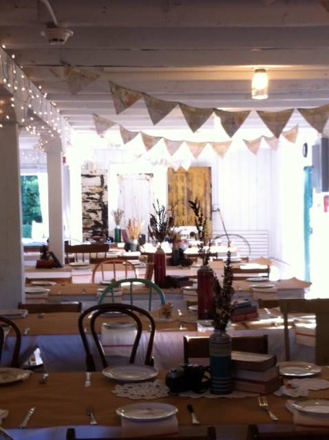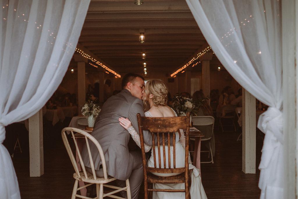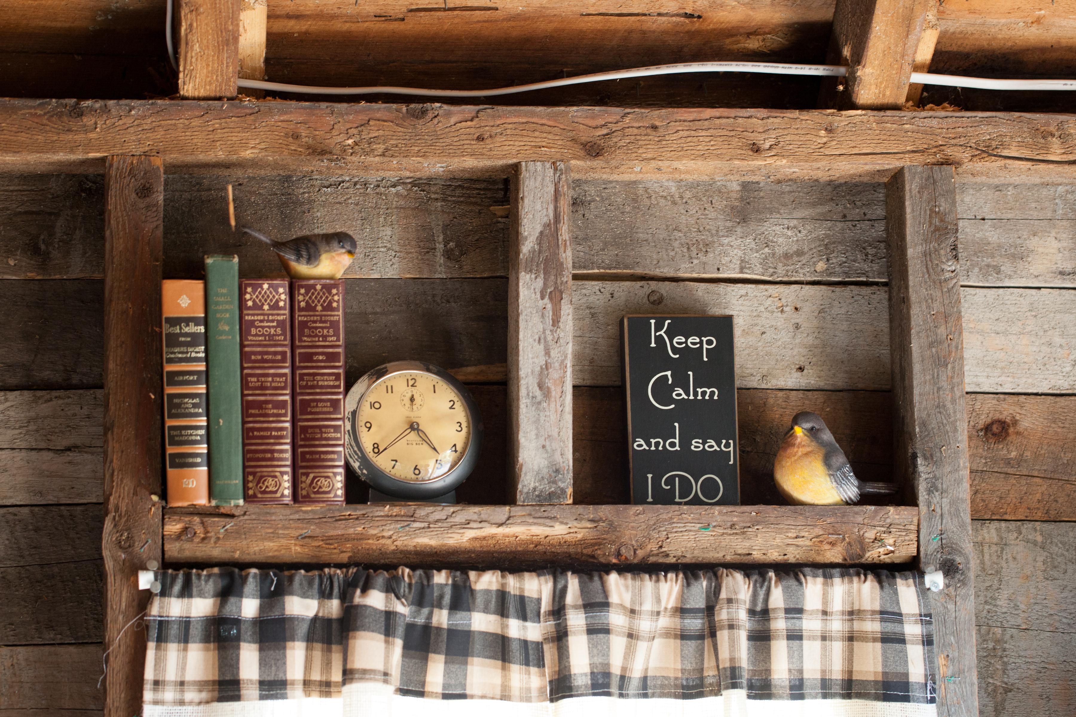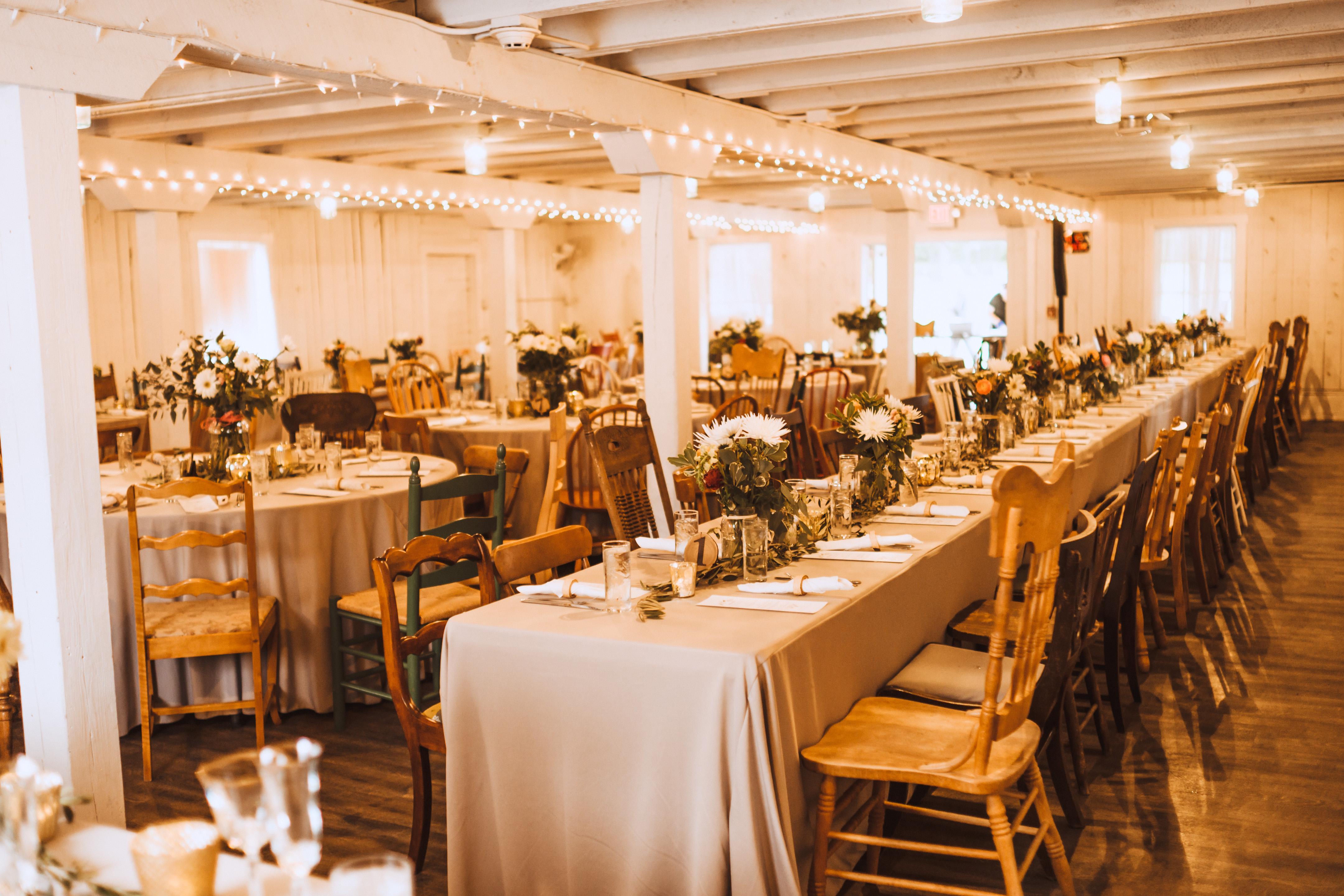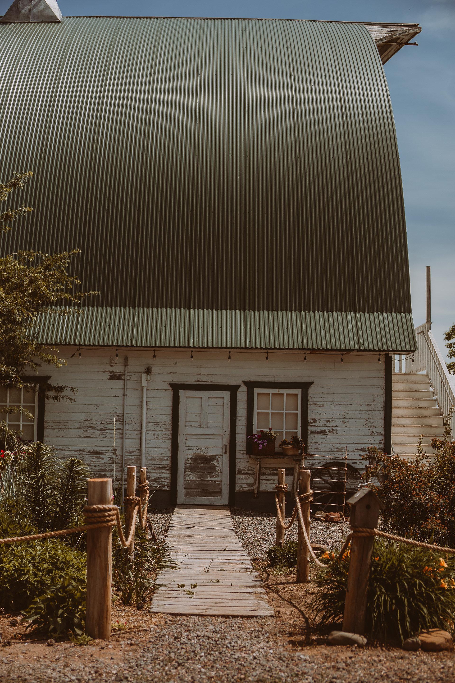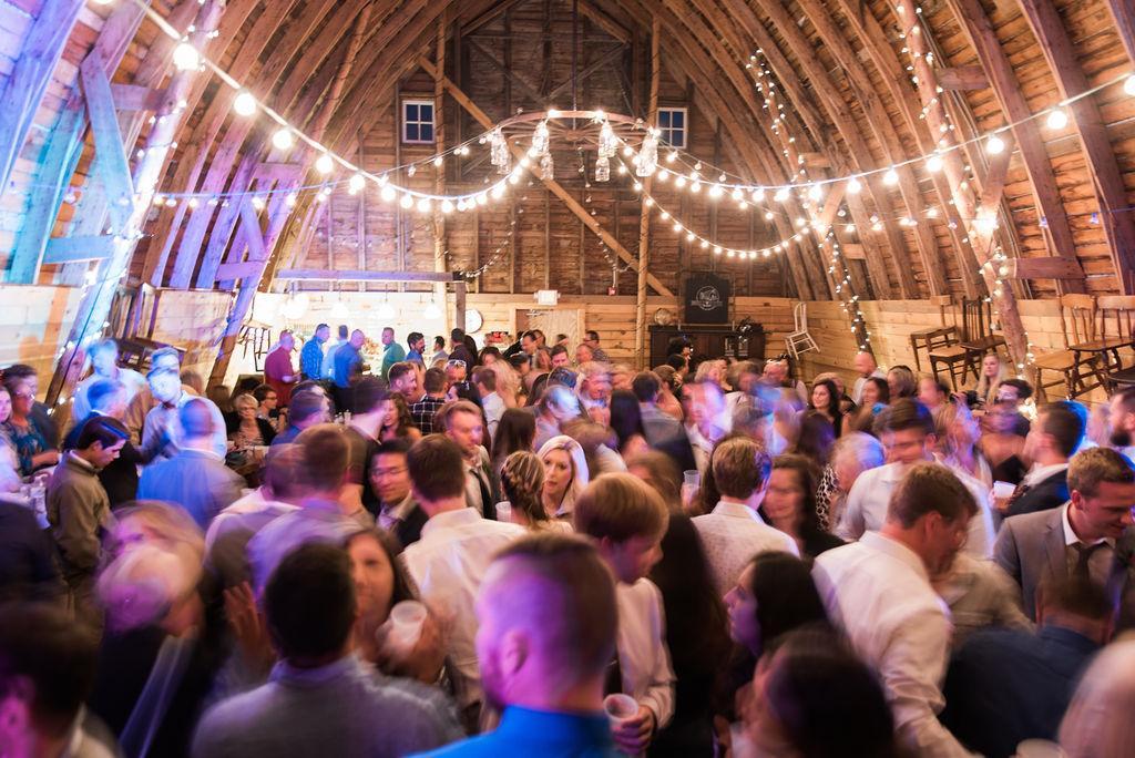 The top floor of the Barn features vaulted ceilings with the original barnboard walls, cafe lights, and a wet bar. The flooring is double-thick for a night of dancing away and an eclectic collection of dining chairs and tables circle the room for when you need to take a break. The concrete-countered bar features a sink and a keg fridge with 3 taps and CO2 included. An attached deck overlooks the grounds and includes our version of the Love Bridge with couples' padlocks of love.