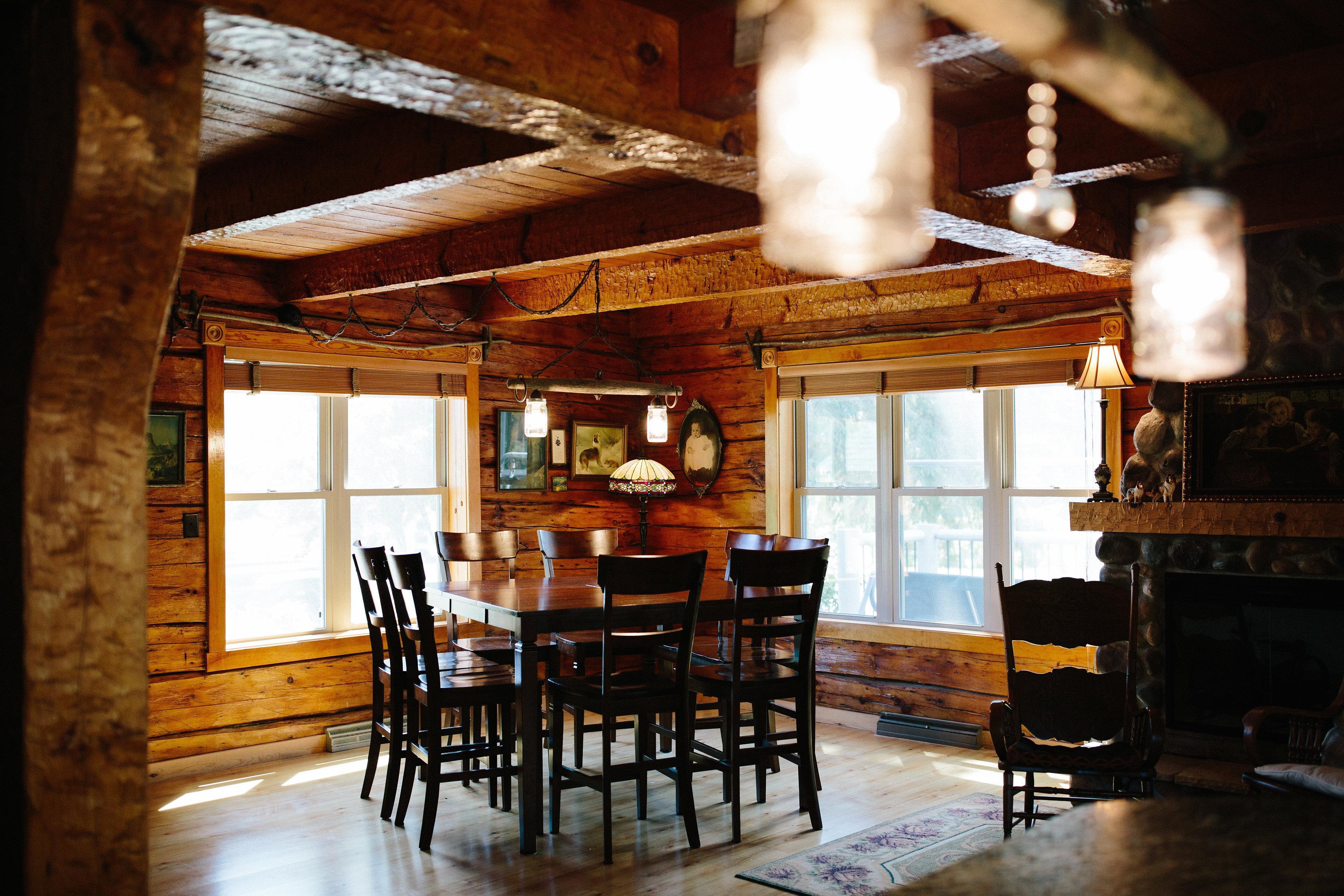 Our Farmhouse was built before 1900 by some of the first settlers in our area. Its interior features the original log construction, a fireplace, a fully-stocked kitchen, four bedrooms, and two bathrooms. A number of windows in the living room look over the property and three decks overlook a number of ponds. The Farmhouse sleeps 10-11 and is included in our Weekend Wedding Experience, our most popular package.