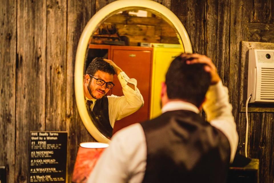 The Milkhouse was once where the cows were milked, but now stands as a place for half of the wedding party to get ready. It features vintage school lockers, a mini fridge, and seating area along with a number of rustic touches.