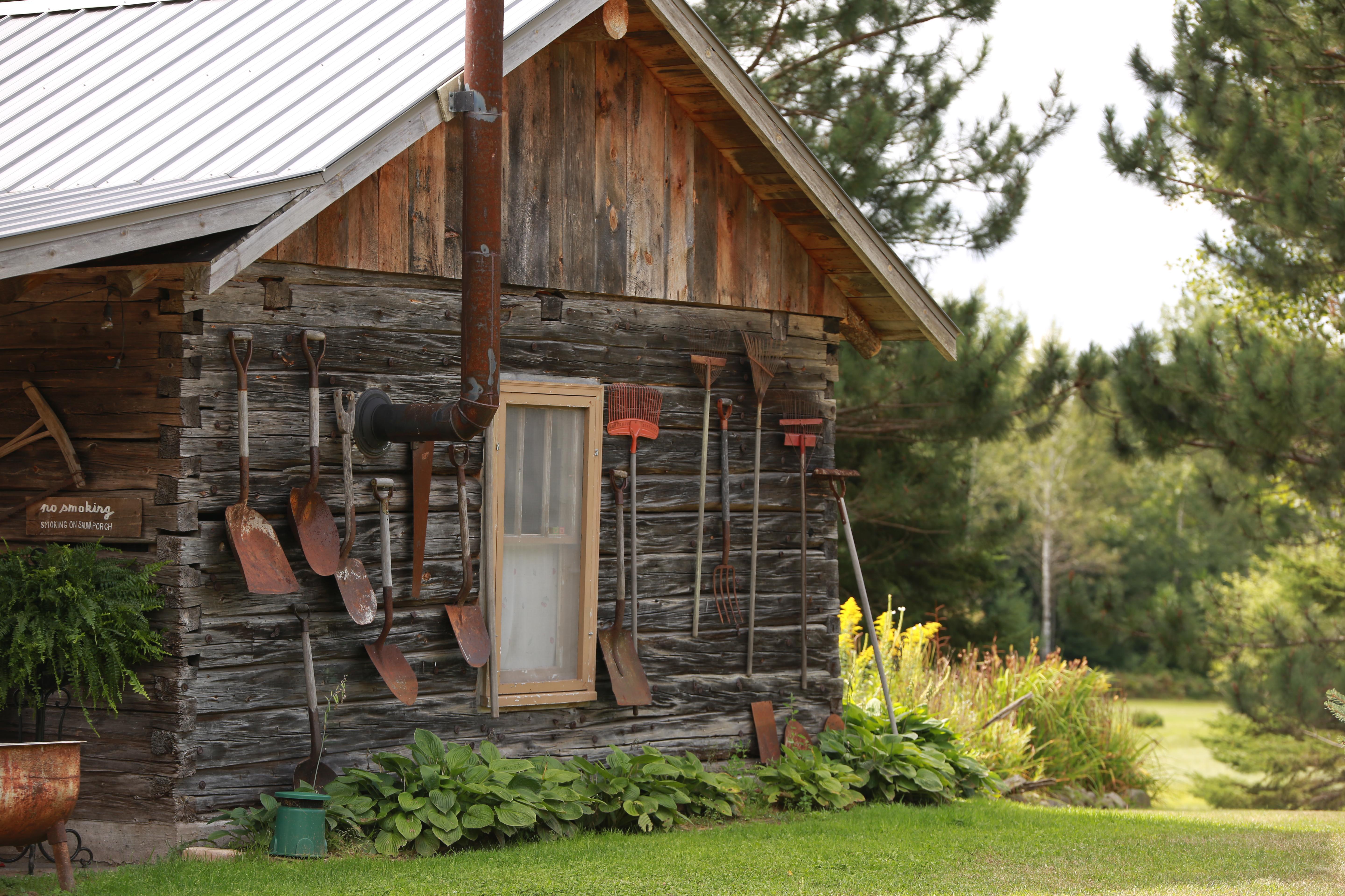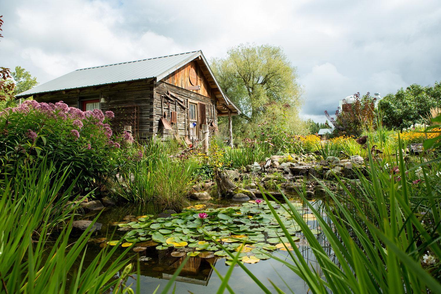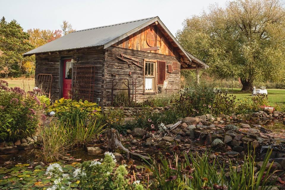 The Summer Kitchen is an log building from the turn of the century that houses Jill's antiques collection. It's right next to our carefully maintained ponds and features a counter and fridge, making it a great location for a cocktail hour and lawn games.