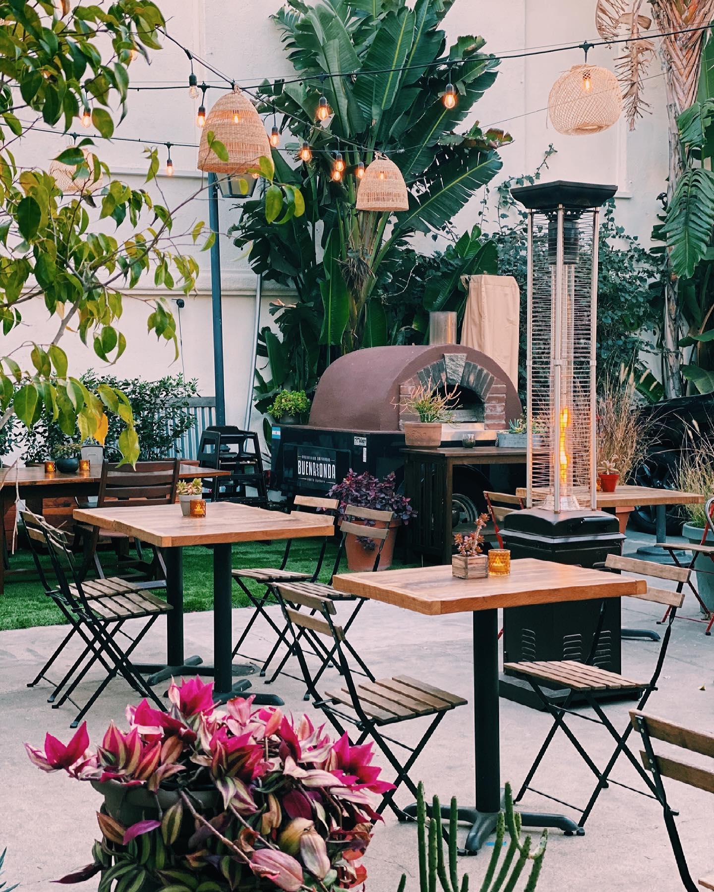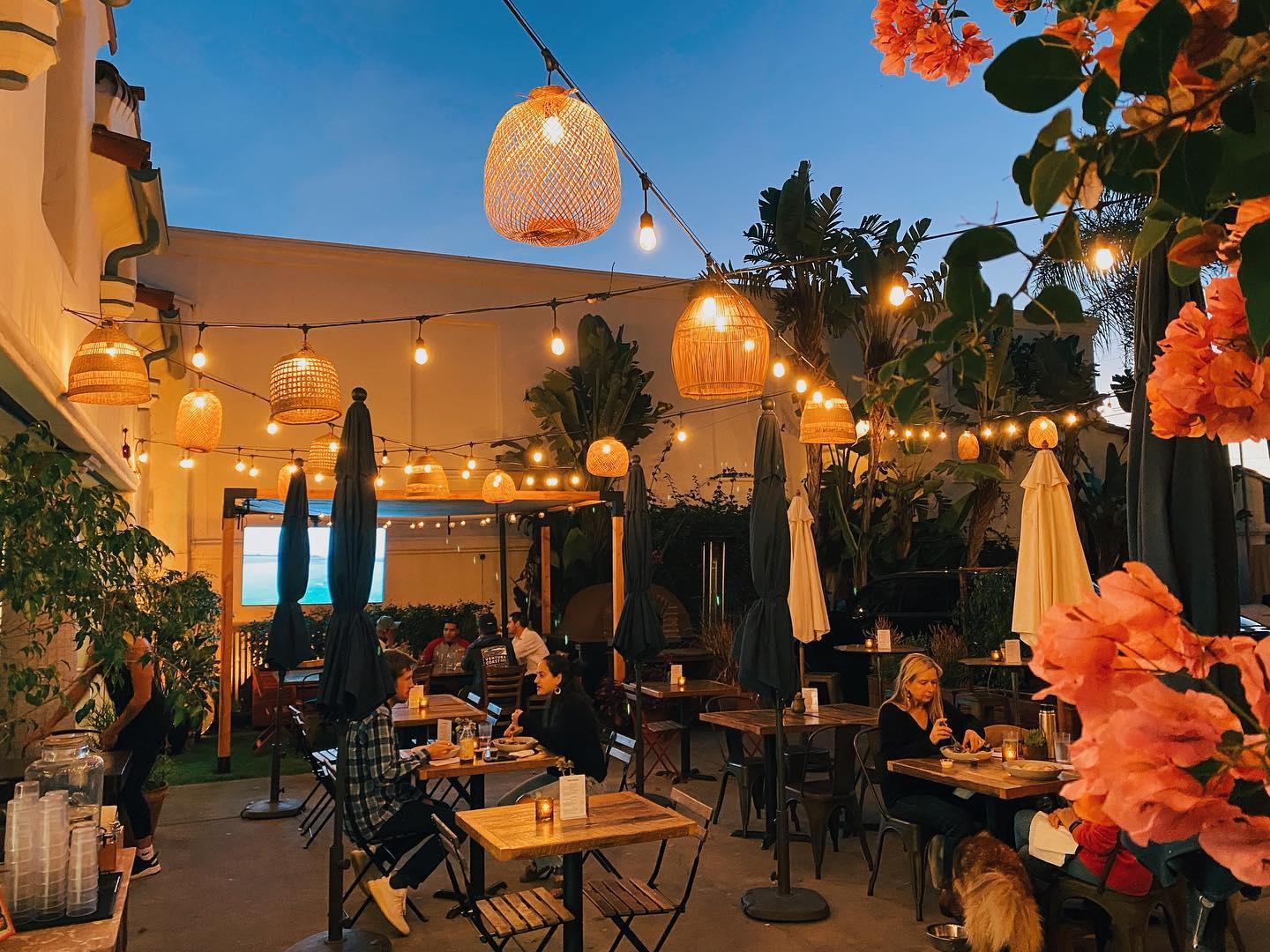 The Buena Onda Courtyard is filled with ambiance. With the backdrop of a Spanish-style building facade, bougainvilleas, string and basket lights, and a picturesque outdoor bar, it is a picturesque space to host any event.