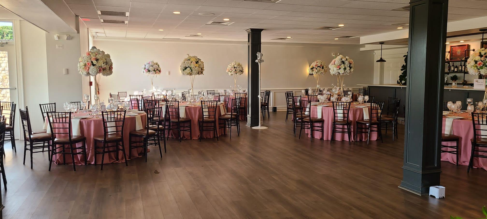 • Modern Event Space overlooking 18th Hole • Large Back Patio suitable for cocktail hour • Contemporary Expanded Bar • Ceremony Location overlooking Bull Run Pond • Ample, On-Site Parking Accommodations • Private Bride and Bridal Party Room • Groomsmen Changing Room • Access to Golf Cart and 350 Acre Golf Course for Photos