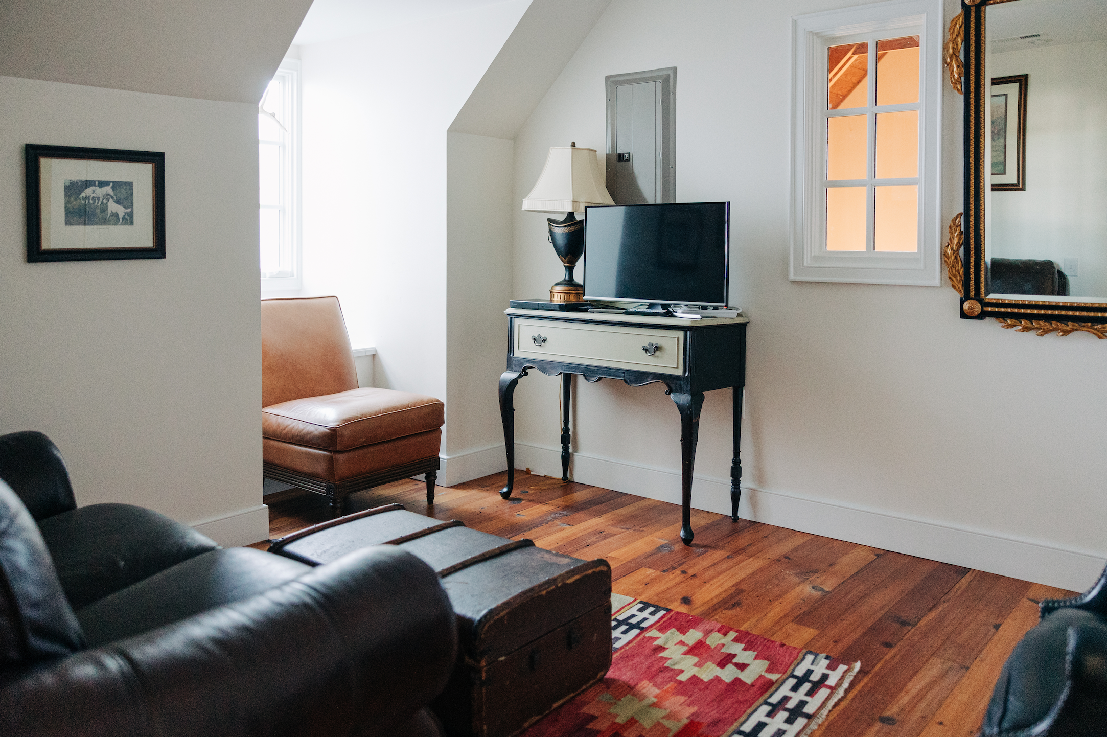 Space for the groom + his groomsmen to get ready before the event, featuring a bedroom, full bathroom, and kitchen