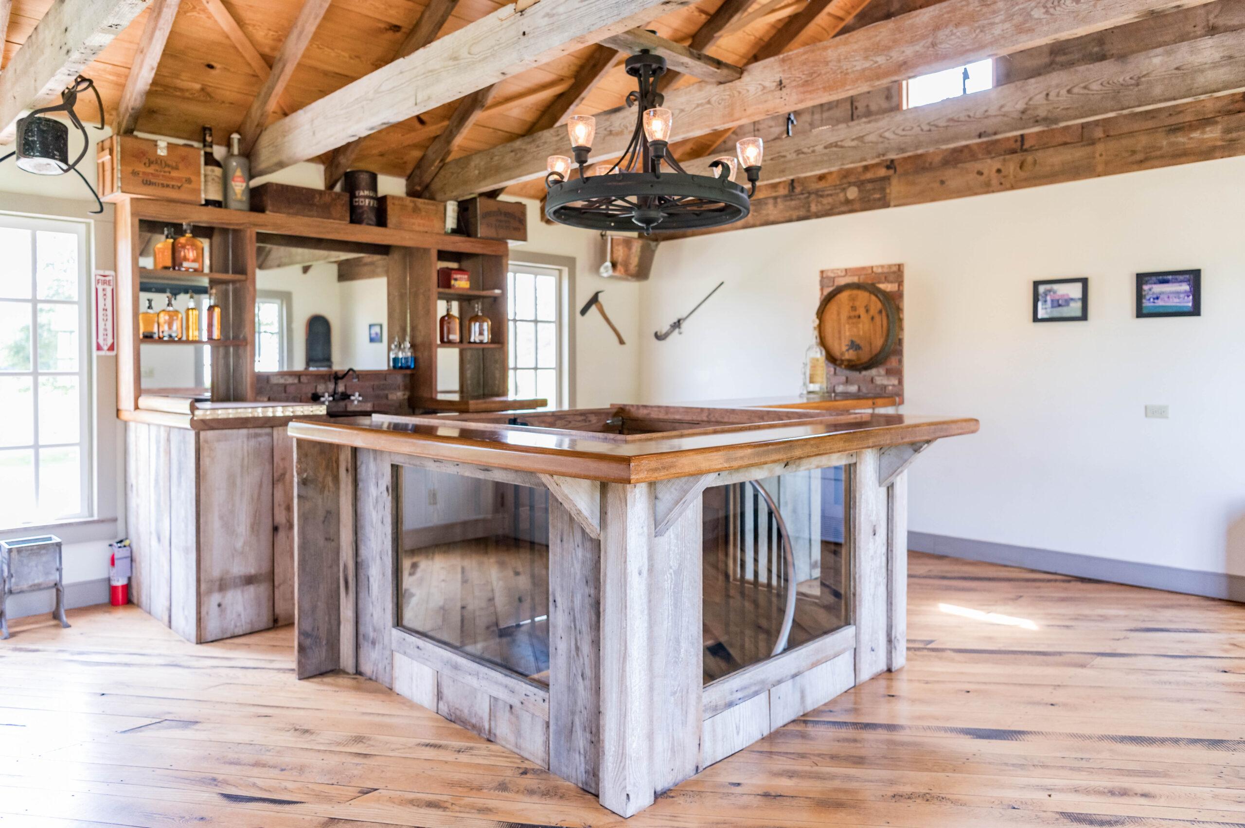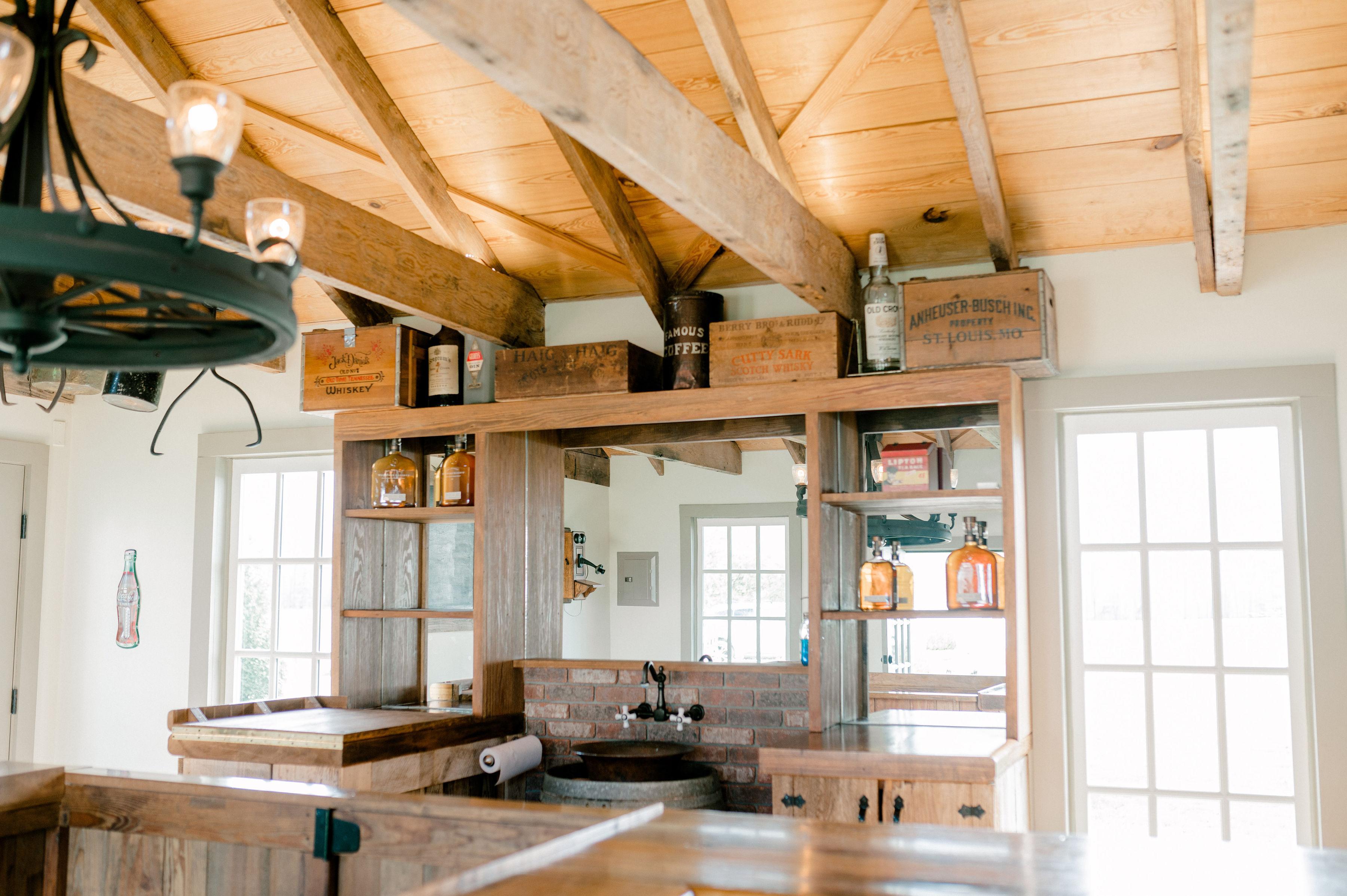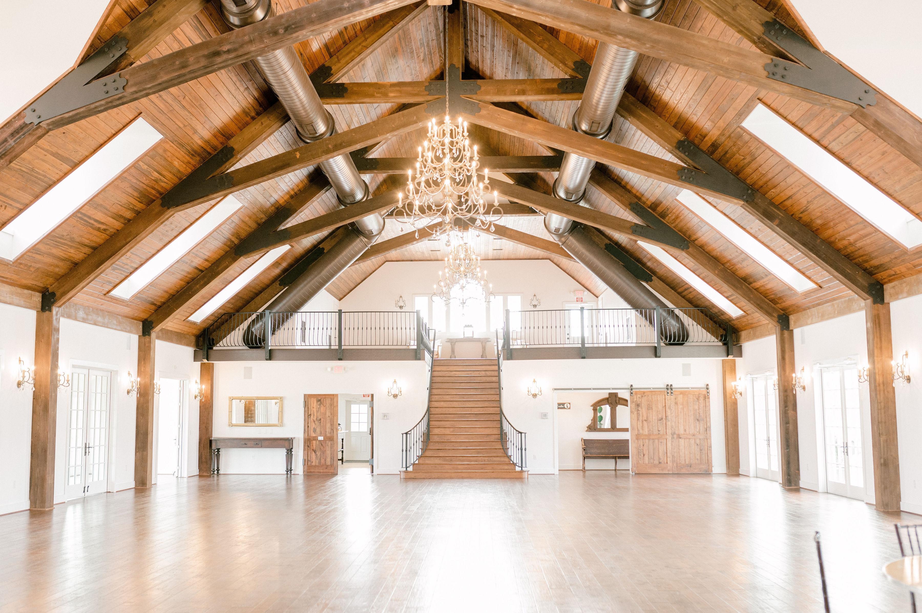 Main Bar – Featuring an antique saloon bar, four sets of barn doors and wooden columns. This becomes the bar once the reception begins Reception Hall – Grand ballroom featuring a grand staircase, wooden floors, multiple sets of French doors, custom chandeliers + sconces, and offers plenty of natural light. A perfect space for your ceremony and/or reception, as it holds up to 300 guests