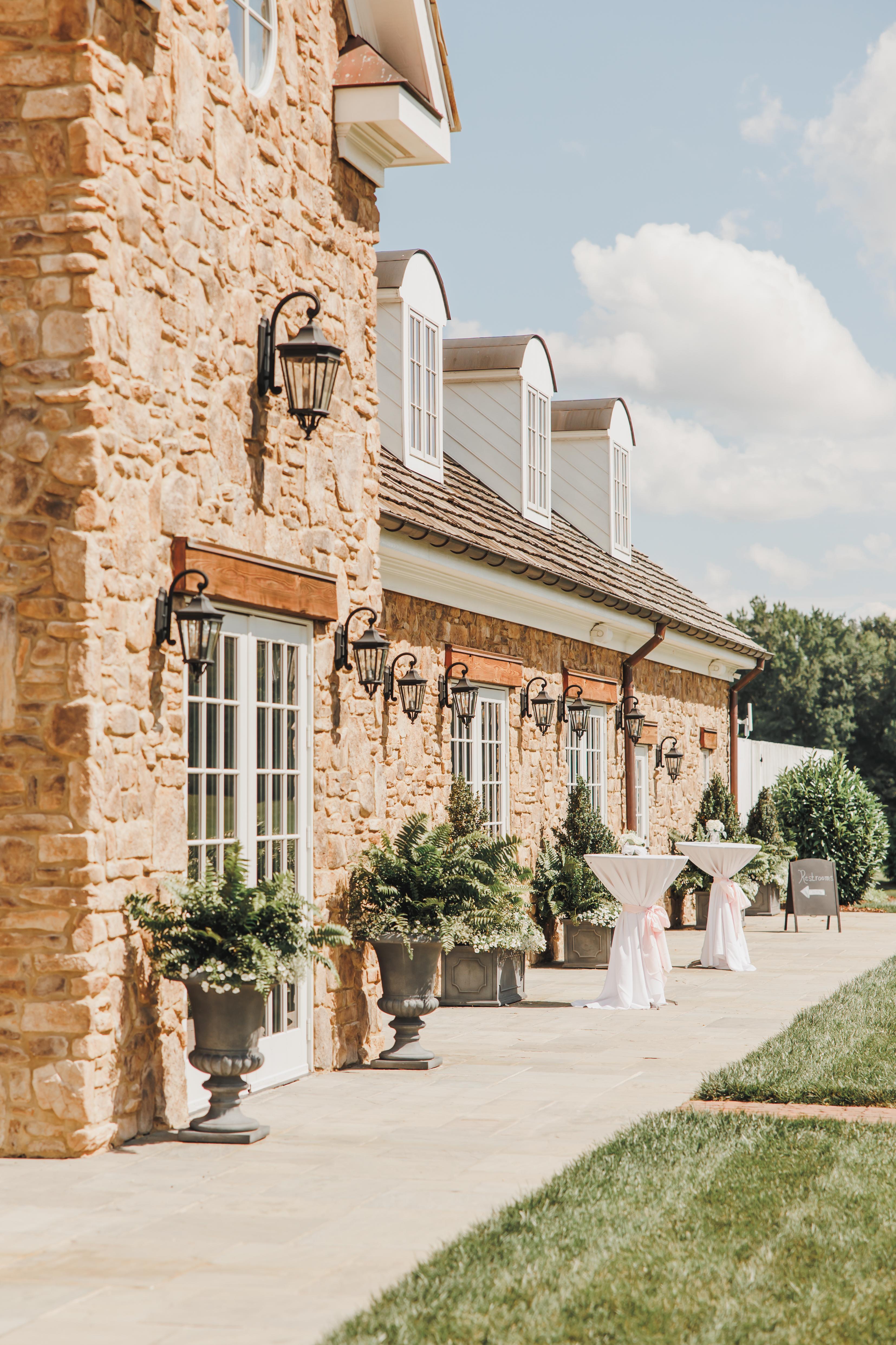 Available for events year-round, Burlington is a wedding venue located in Charles City, Virginia. The main house was first built in 1818 and has been recently restored and expanded. Burlington offers couples the exclusive use of the property for the duration of their occasion. Two outdoor ceremony sites are available, as well as an expansive indoor ceremony space that can double as a reception venue. The indoor wedding space in the Stables features exposed wooden beams and custom chandeliers, while the gardens and lawn offer views of the surrounding countryside for an outdoor ceremony. Both the indoor and outdoor spaces can accommodate up to 300 seated guests. The Bridal Cottage and Groom's Den allow the wedding party a private location to prepare themselves and relax before the ceremony. The Ice House Bar, an additional space converted from an 18th-century colonial ice house, can host cocktail receptions.