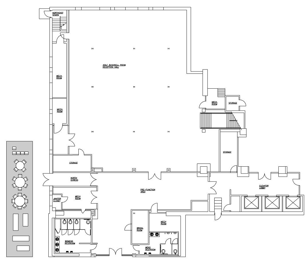 Covered parking and street parking, handicap accessible, and walking distance to the hotel. All fees include set up and tear down.