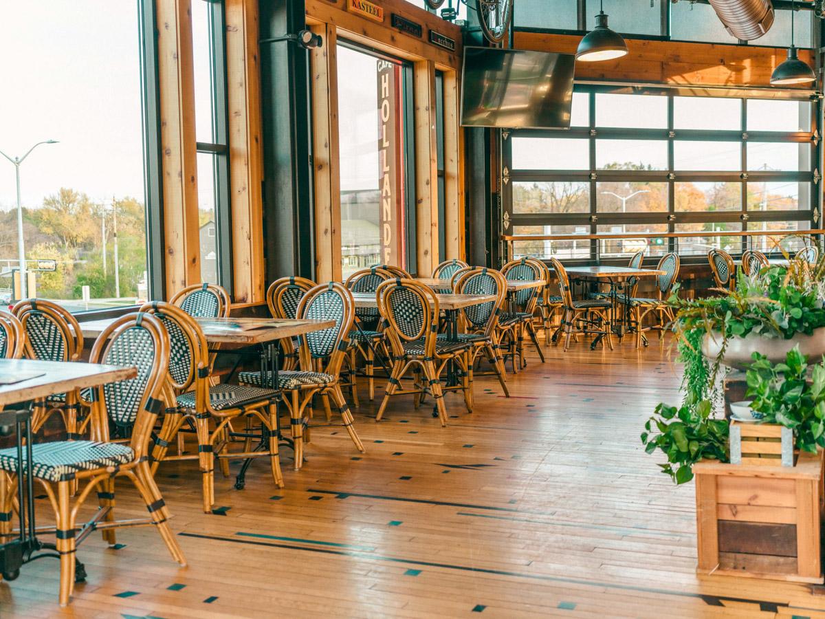 Overlooking bustling Mequon Road, this intimate private covered patio space features overhead heaters and great photo-op positioning over the Café Hollander lighted sign! This 2nd floor rooftop is accessible via elevator as well.