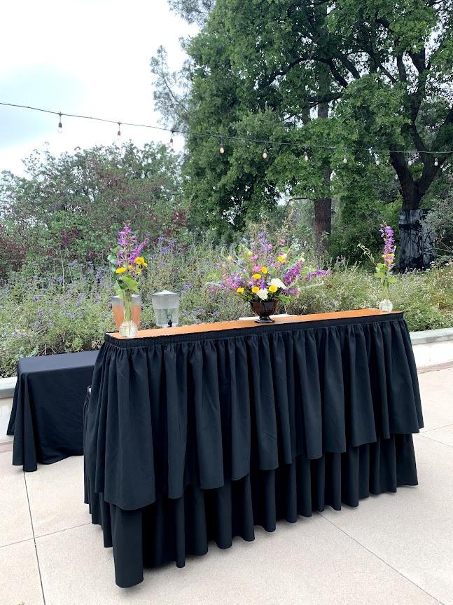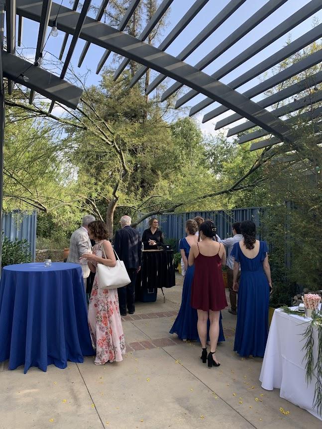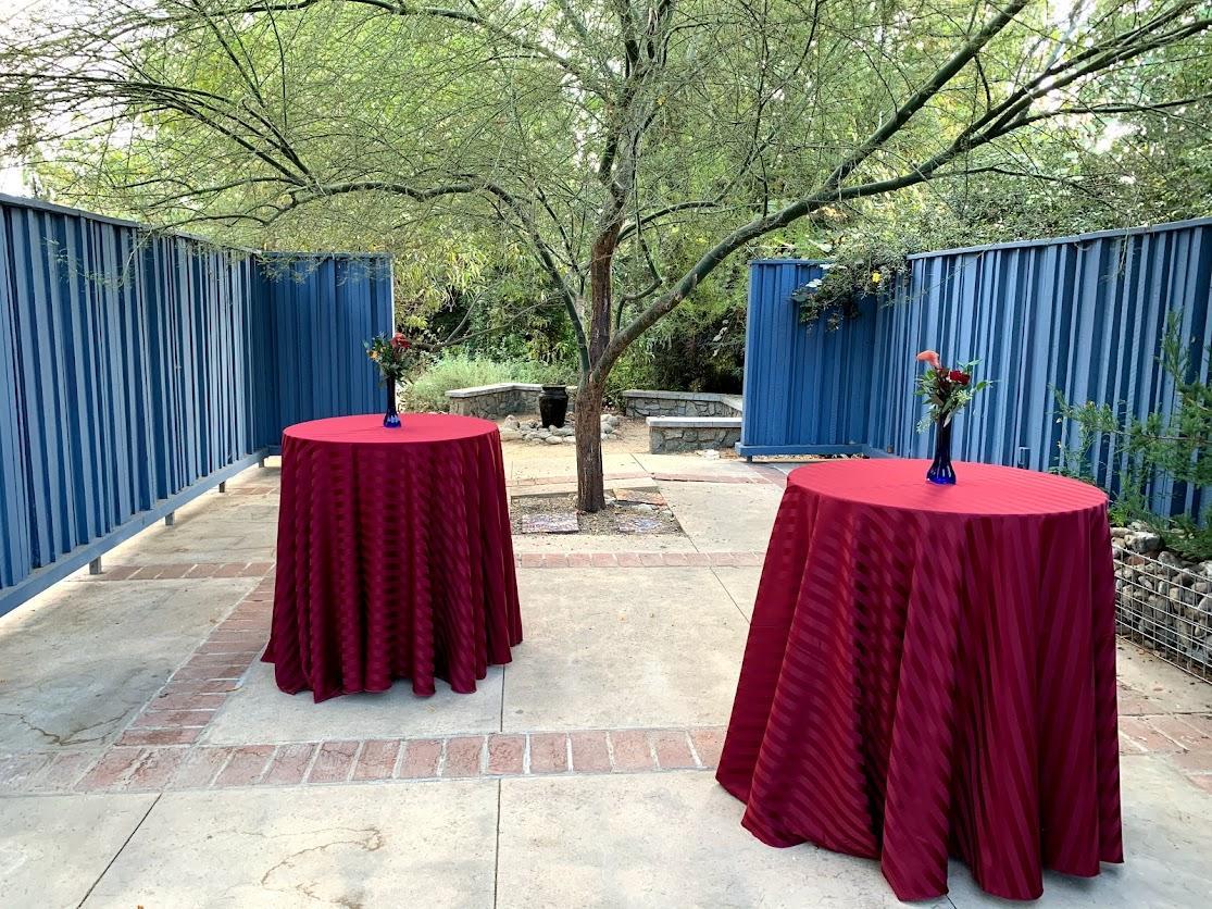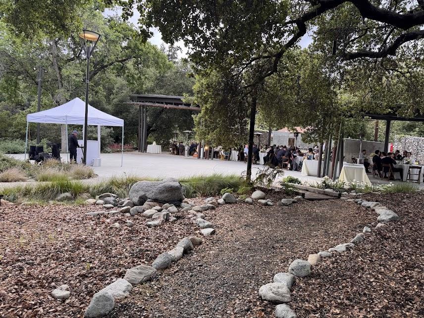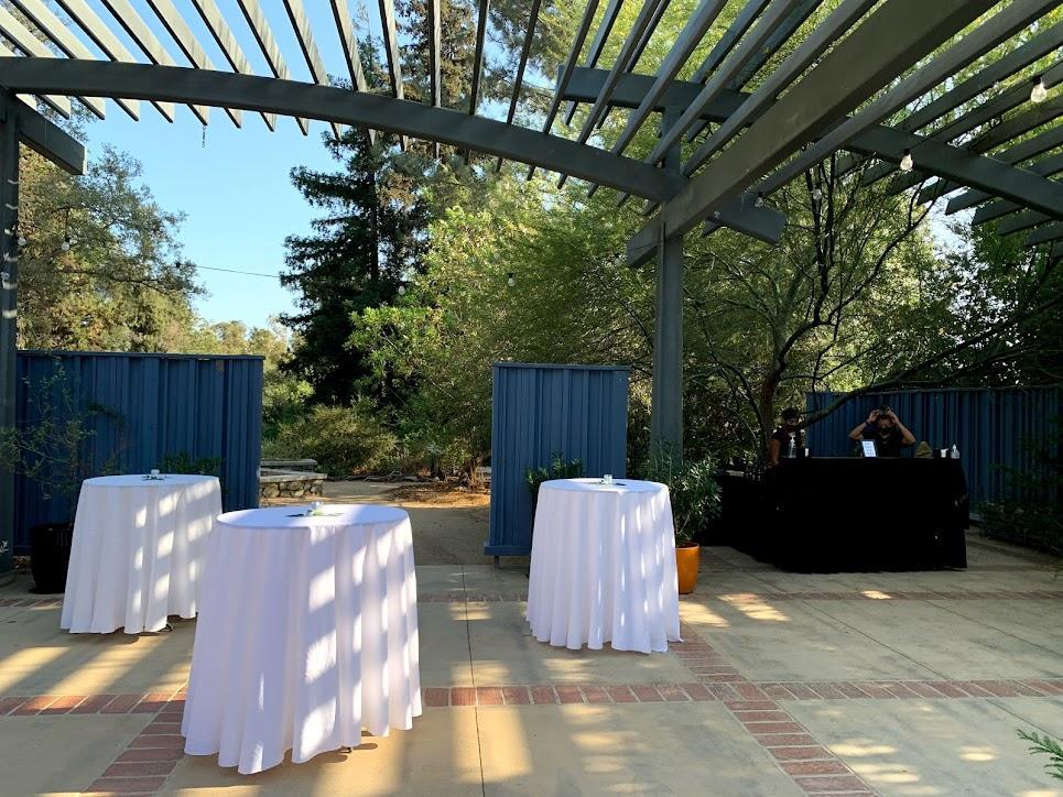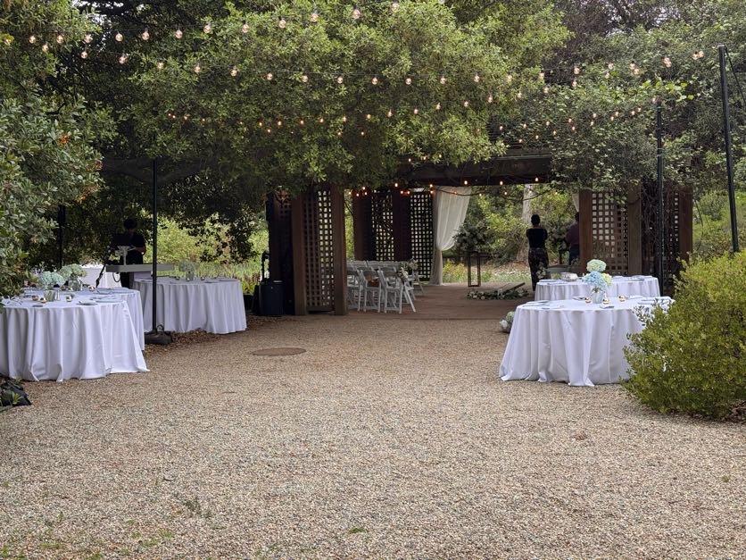This open-air venue is surrounded by fragrant sage plants, and features a soaring shade structure. Wooden partitions create a private, sheltered feeling. A favorite spot for cocktail receptions, ceremonies, and dinner receptions.