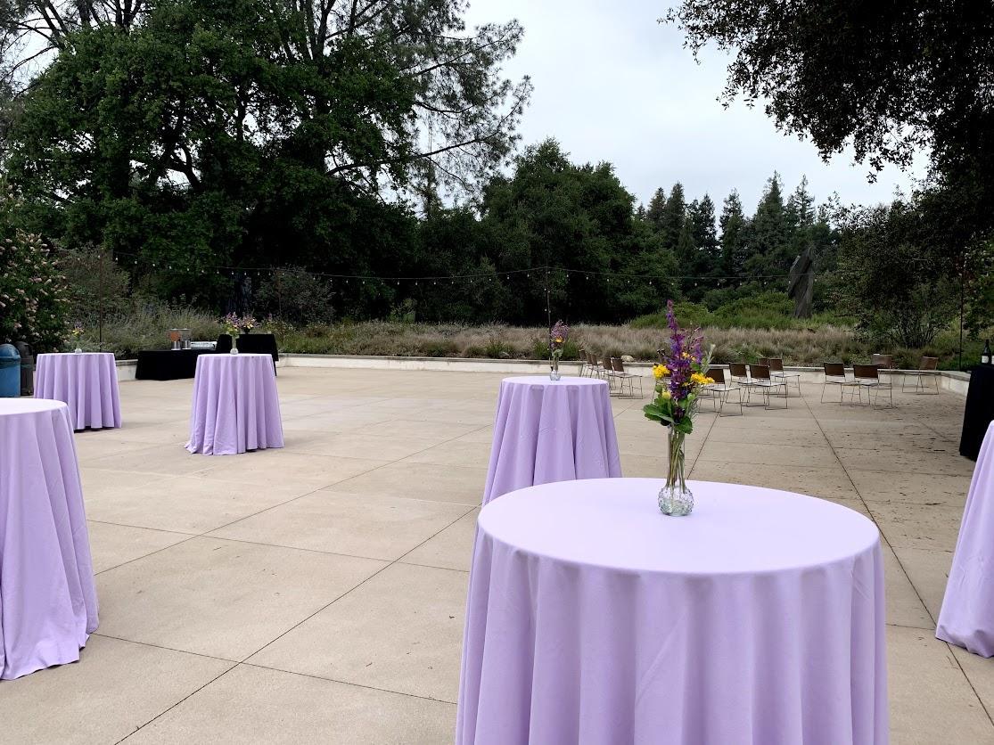 This spacious open-air location offers exceptional views of the surrounding garden landscapes. The space is easily accessible, with restrooms located in the adjacent administration building. This venue can accommodate a large canopy. Surrounded on three sides by mature and lush landscaping, and with a mountain view, your guests will love the open feel of this space.