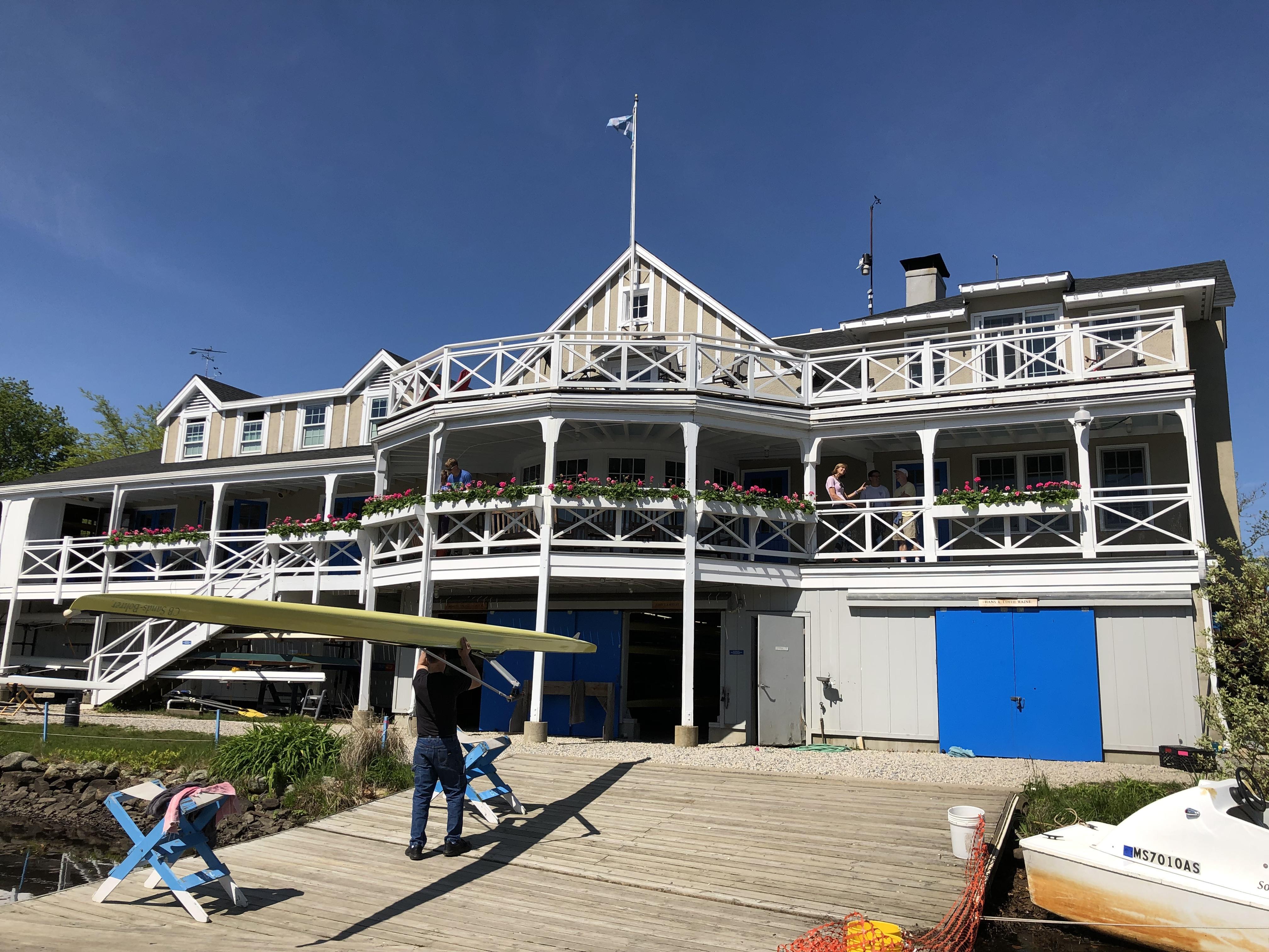 Cambridge Boat Club is a social and rowing club, located on the banks of the Charles River overlooking Eliot Bridge. Originally built in 1909, CBC was picked up in its entirety and rolled upstream to its current location in 1947, to make room for the building of Memorial Drive. Featuring vaulted ceilings and dark exposed beams akin to a ski chalet, and double french doors opening to a full length veranda, CBC offers a unique, rustic setting for any event.
