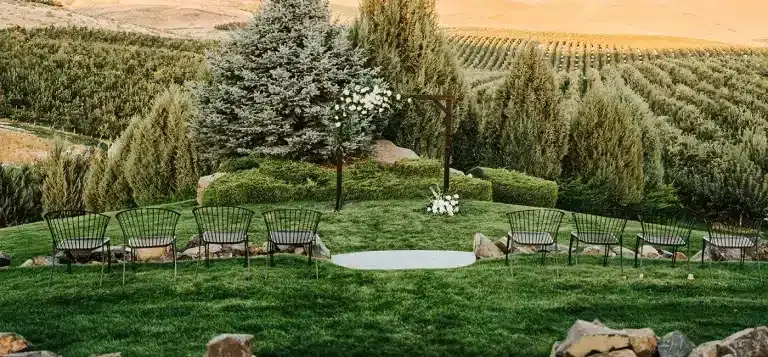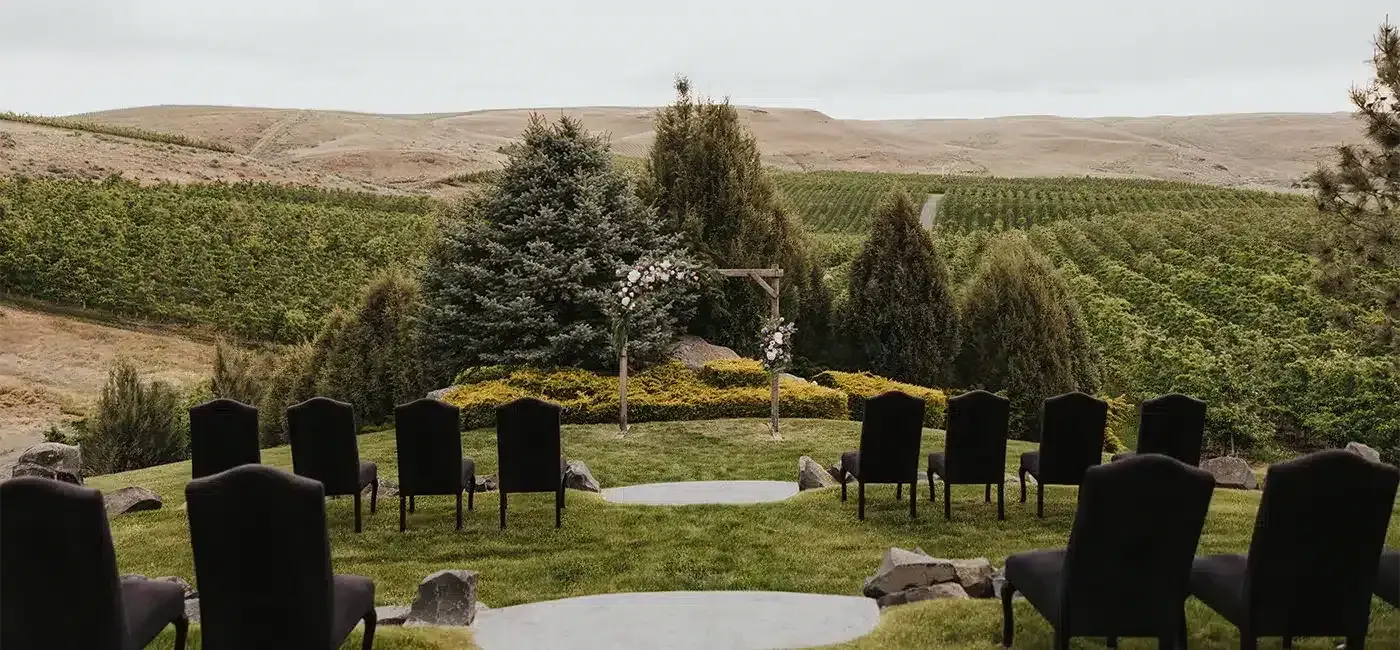 Exchange your vows against the breathtaking backdrop of the Walla Walla Valley, where soft light dances across the vineyards and the air carries a whisper of romance. Outdoor ceremonies unfold within lush, manicured gardens surrounded by sweeping countryside views, while indoor celebrations within the mansion exude timeless elegance. The ceremony salon features graceful architectural details, rich wood accents, and soft, romantic lighting that transforms the space into a haven of intimacy and beauty. Whether you choose the golden glow of sunset over the terrace or the cozy ambiance of the grand salon, every corner of Cameo Heights Mansion is designed to frame your love in unforgettable style.