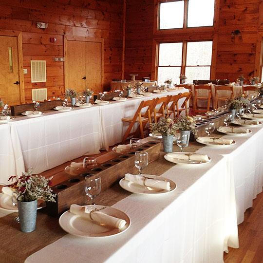 Give your guests a rustic cabin-like experience in our Franklin hall!