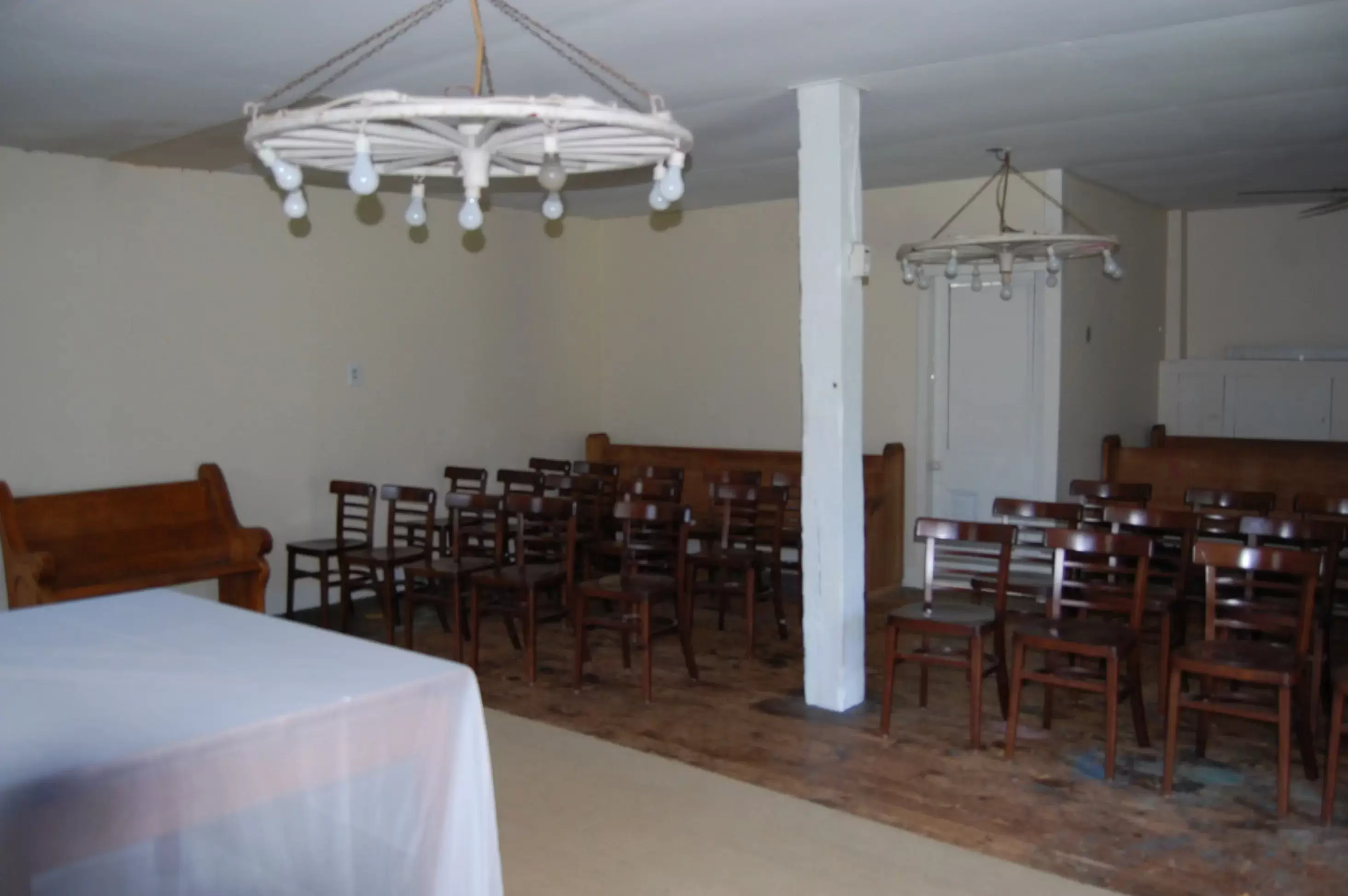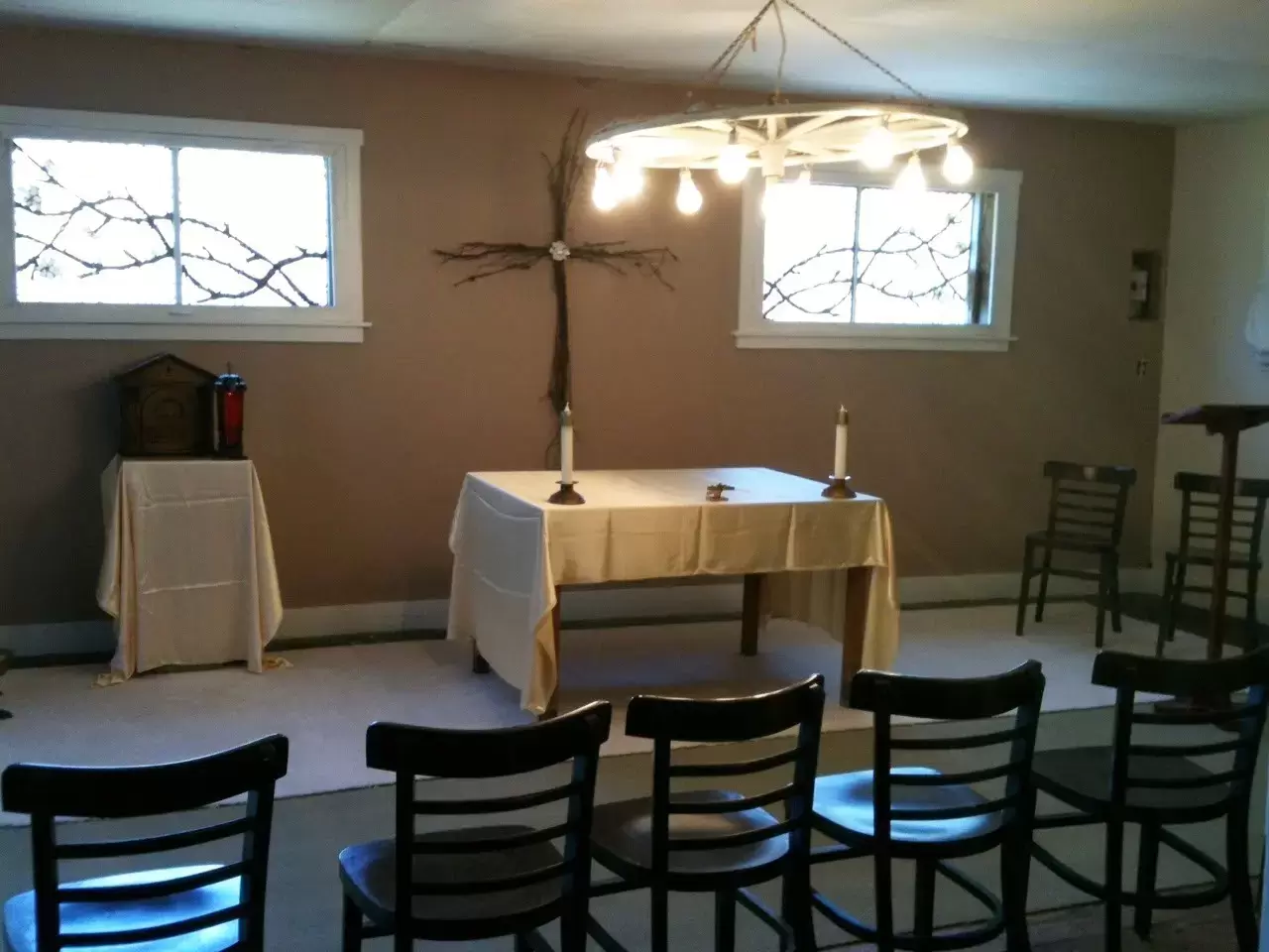 Seats 50, altar table, artist-created windows, speaker’s podium, video screen, projector, AC, heat, and WiFi.