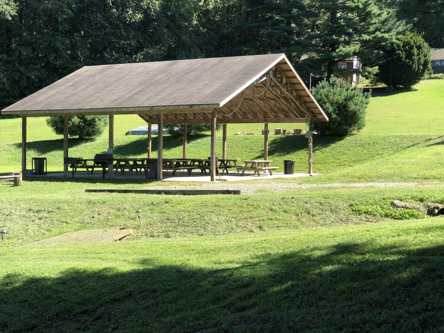 The pavilion at Camp Oak Hill is a popular gathering place for outdoor group activities such as picnic meals, campfires, children’s games, worship services, etc. The pavilion has 11 picnic tables providing seating for 88 guests, a propane grill, and two in-ground park-style charcoal grills (guests must provide charcoal). The pavilion is attractively lighted and has eight electrical outlets providing sufficient power for sound equipment and other electronics, etc. The campfire circle is kept stocked with firewood for the guests to use.