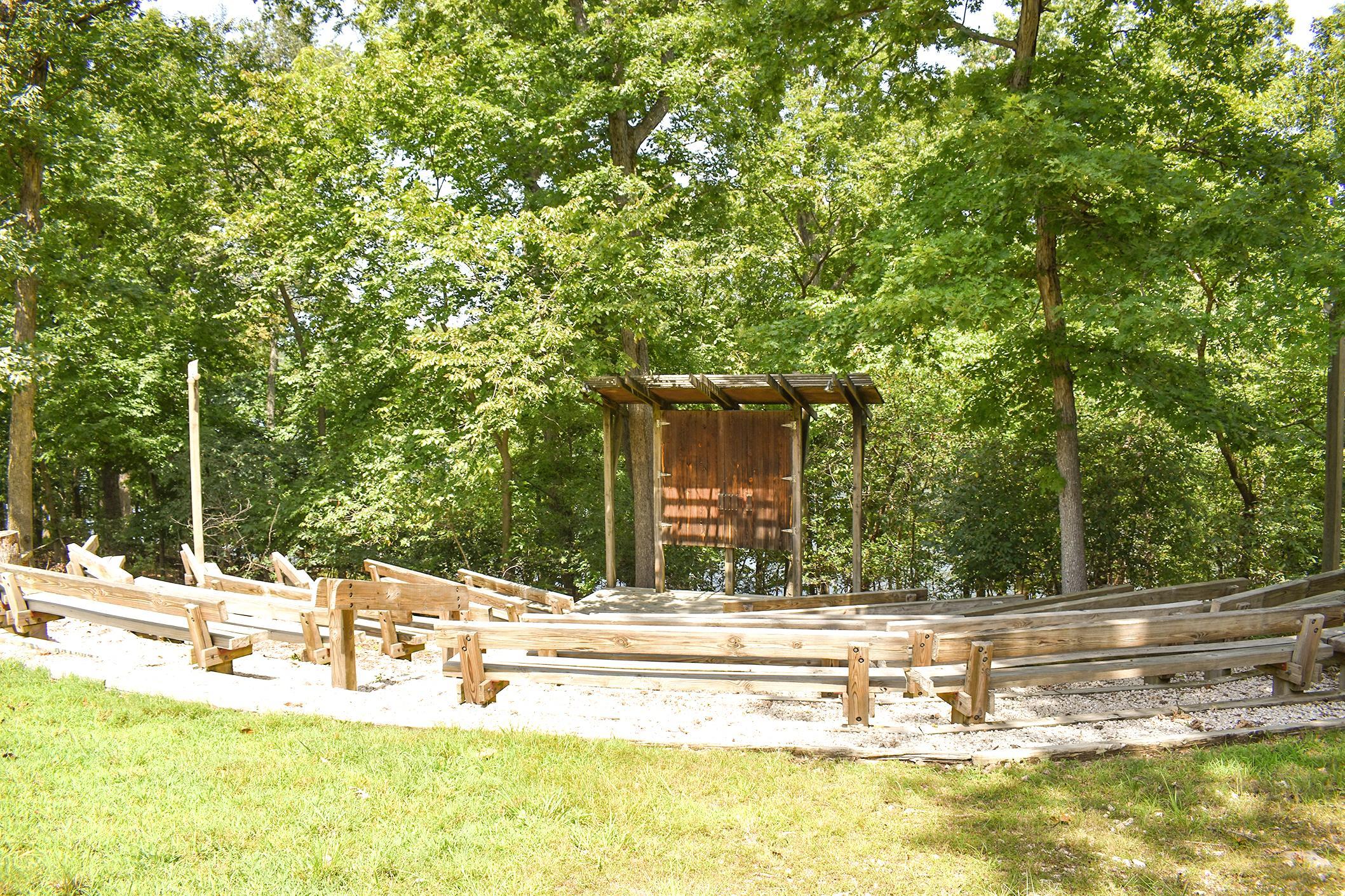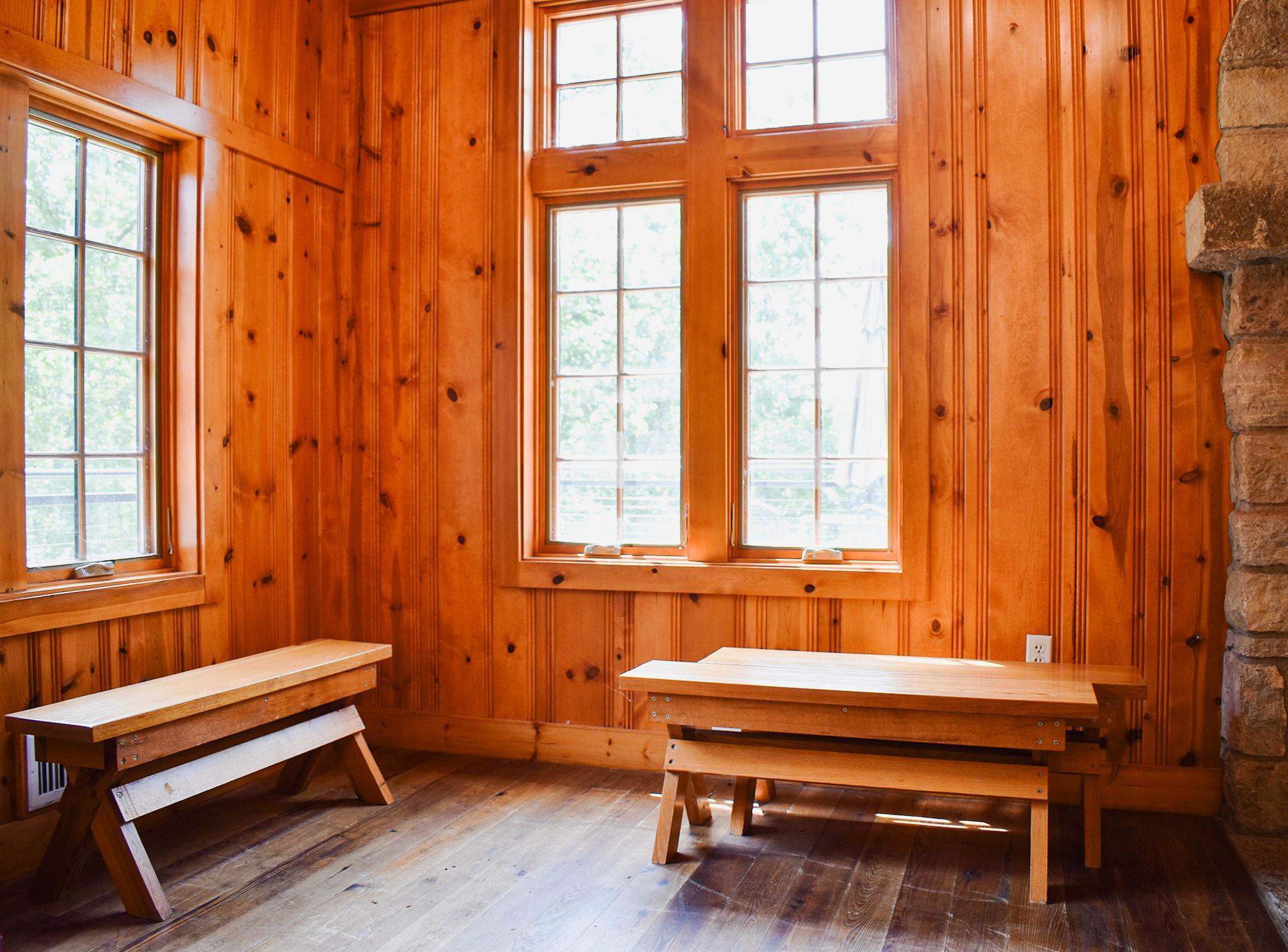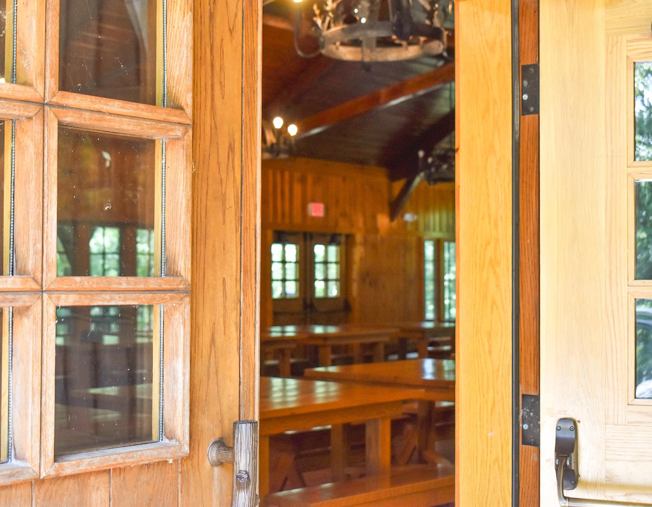 Surrounded by lush trees and a glimpse of the lake, our outdoor ceremony space will certainly make a wonderful setting for your wedding photos. With plenty of room for all of your favorite people, a wooden stage, and long benches, there are a million and one ways to make this space your own. In the event of poor weather, the CCC lodge also makes for a wonderful ceremony space!