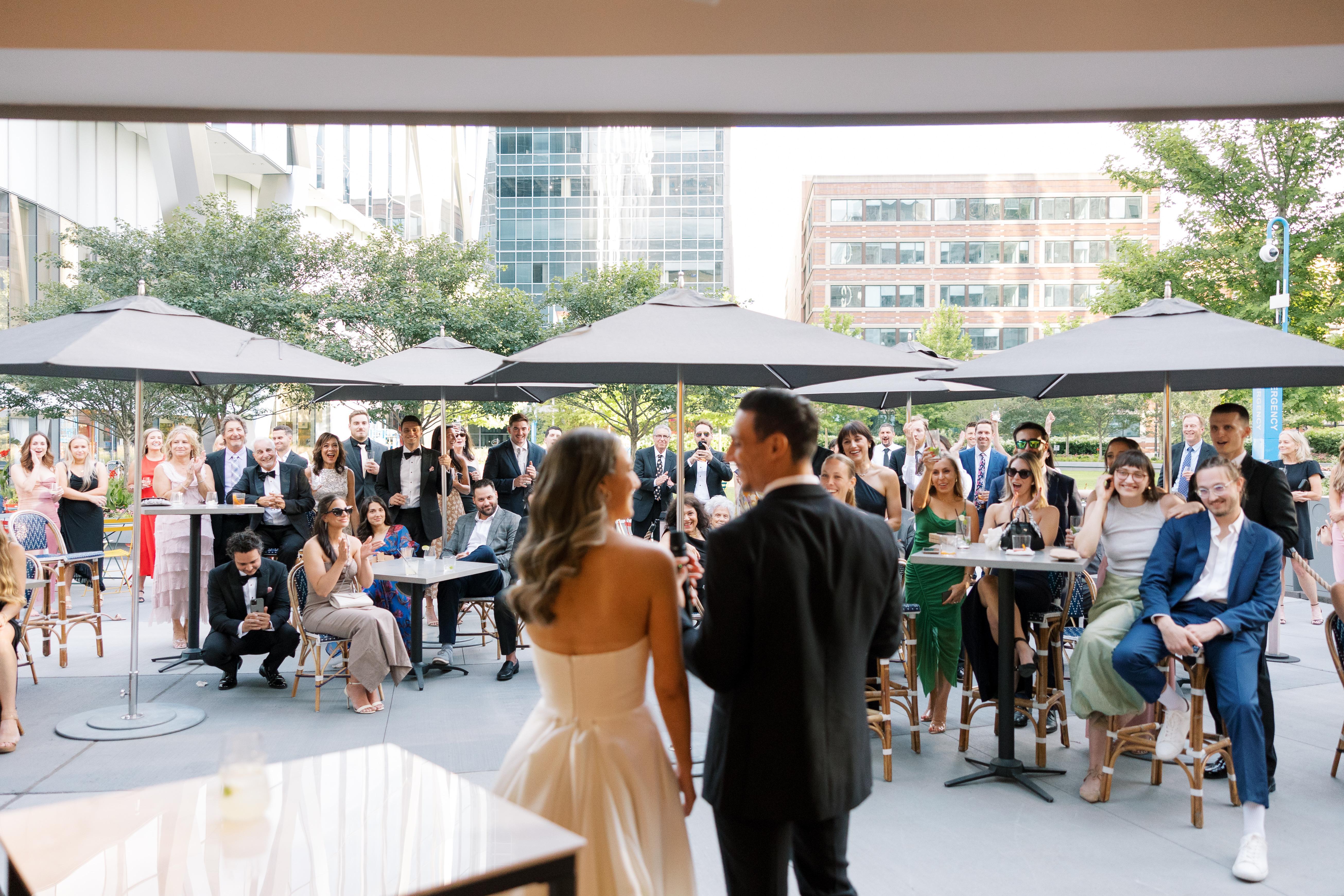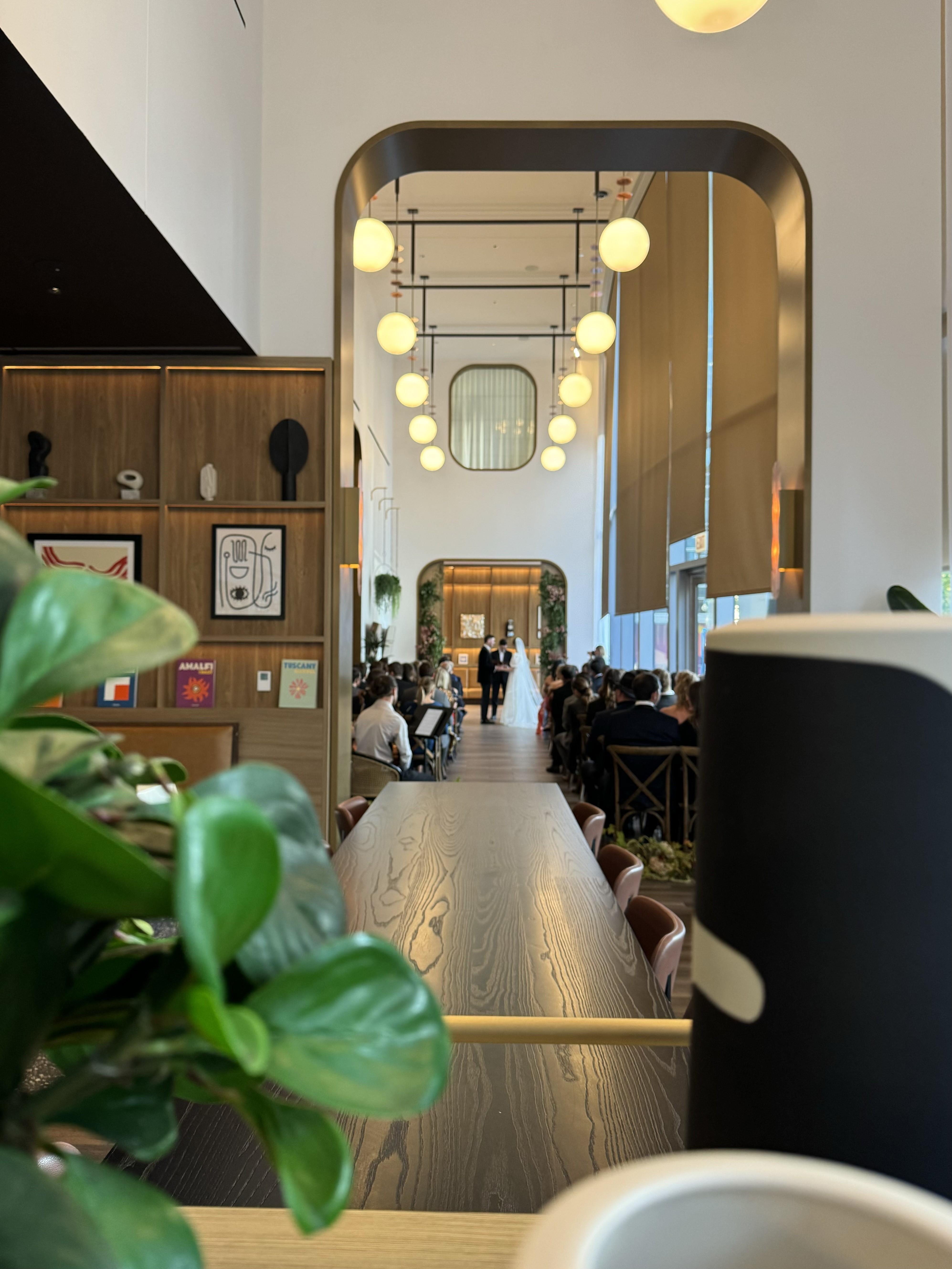We had our wedding ceremony on the Green, cocktail hour at AfterBar, and our reception at the Eatery and the transition between the 3 spaces was seamless. All the food and drinks were fabulous, and the chic and modern spaces really set the tone for everyone to have a wonderful time. The location is also unbeatable, easy to get to via public transportation with a garage parking option on-site. The Eatery/AfterBar's event team were also so responsive and helpful throughout the entire planning process, were thoughtful and accommodating regarding guests' dietary restrictions, and were great with our other vendors (Rob Karlic Photography, Naturally Yours Events, Flowers for Dreams, Defloured Bakery, Umaga Bakehouse, and BreezyBooth). I cannot recommend this venue and their team highly enough, and we look forward to coming back often!