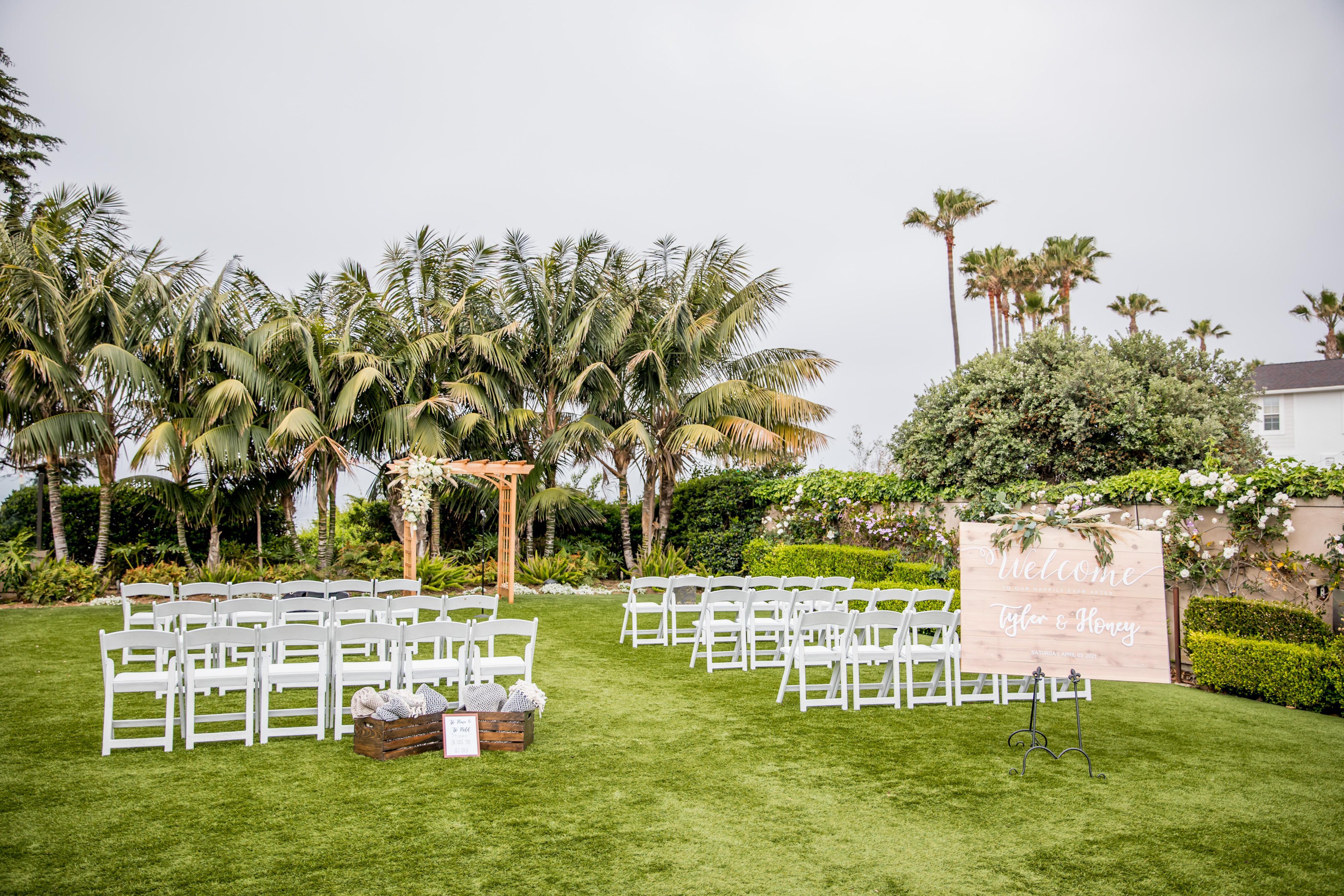 Elegance and nature come together during your Shearwater Lawn Wedding Ceremony. Exchange vows on our lush, tropical Private Lawn with ocean views. Choose from a white or natural wood trellis and garden chairs. Enjoy gift tables, fruit-infused water, a sound system and a stunning coastal backdrop for your wedding photos. The Wedding time frame is five hours, from Ceremony start to Reception end. $3,500 ceremony and reception venue fee (varies by season).