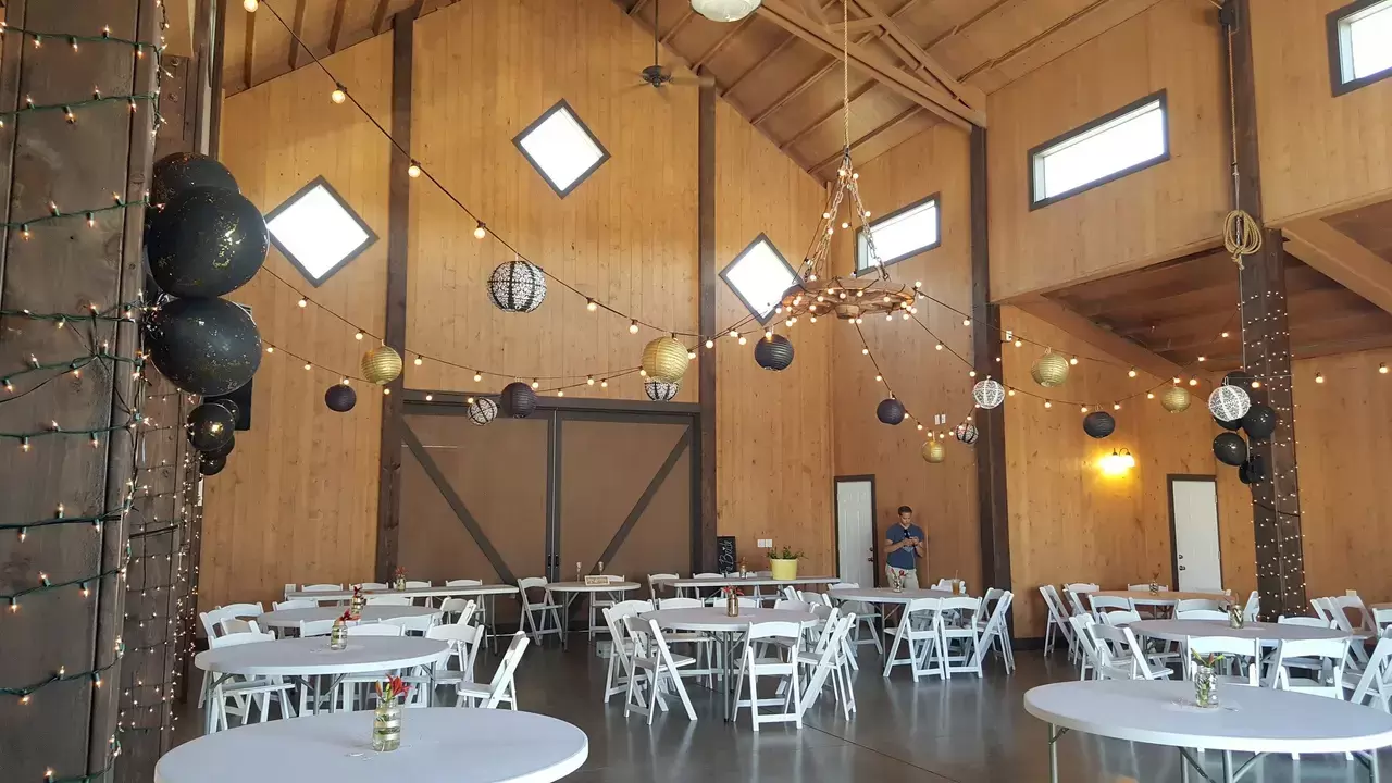 The Wedding Barn offers a charming interior and a stunning courtyard with a ceremony deck.