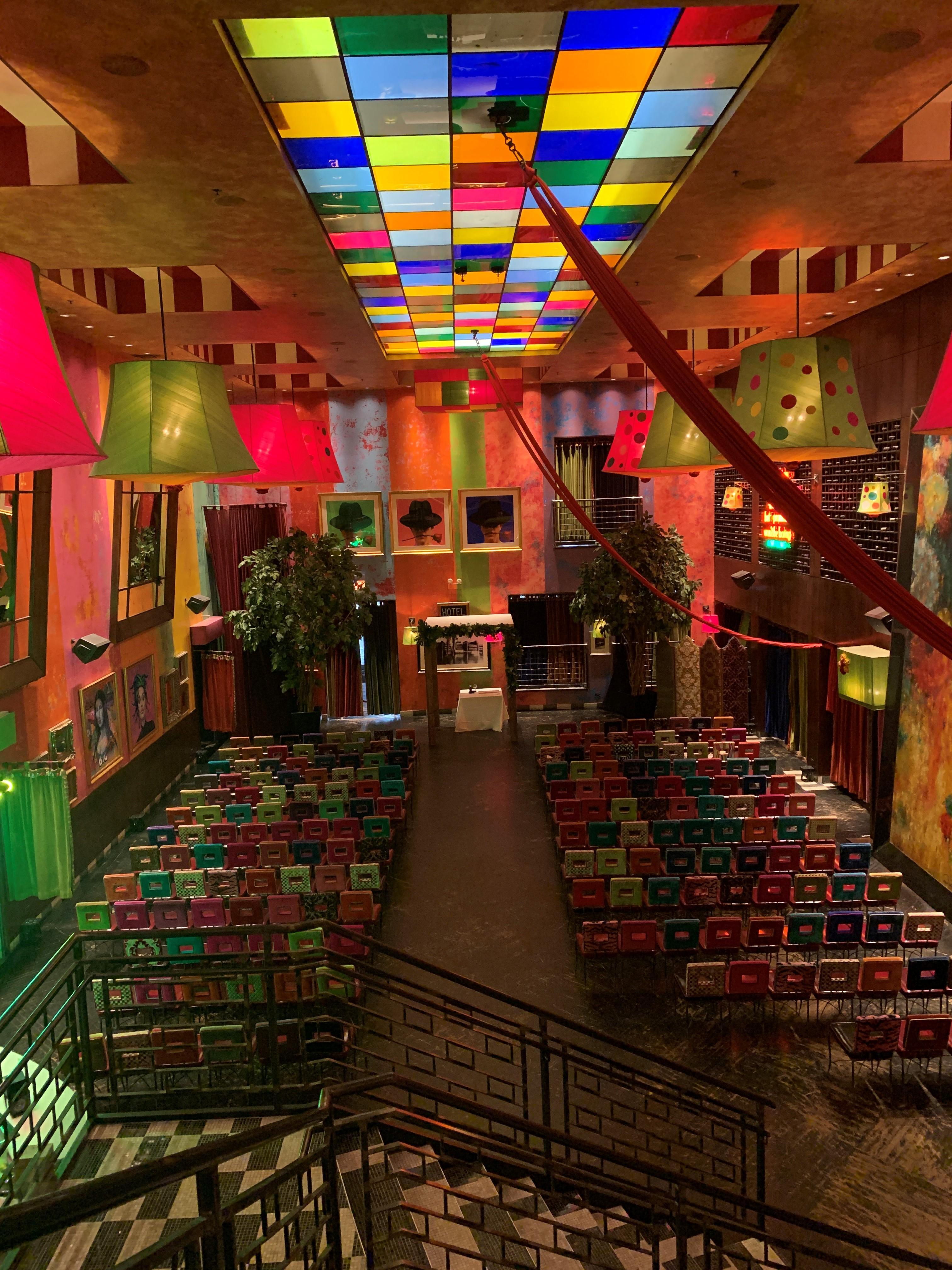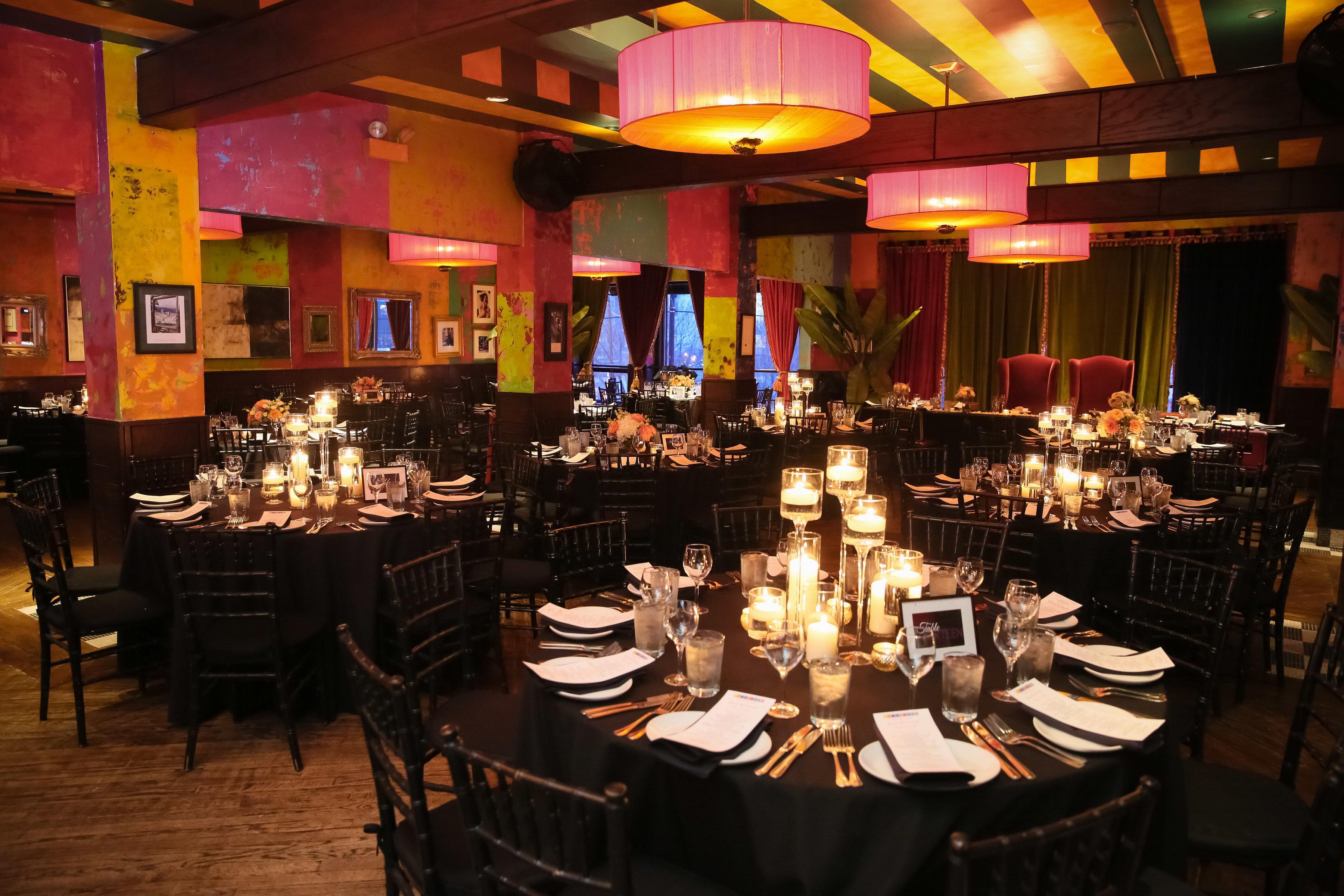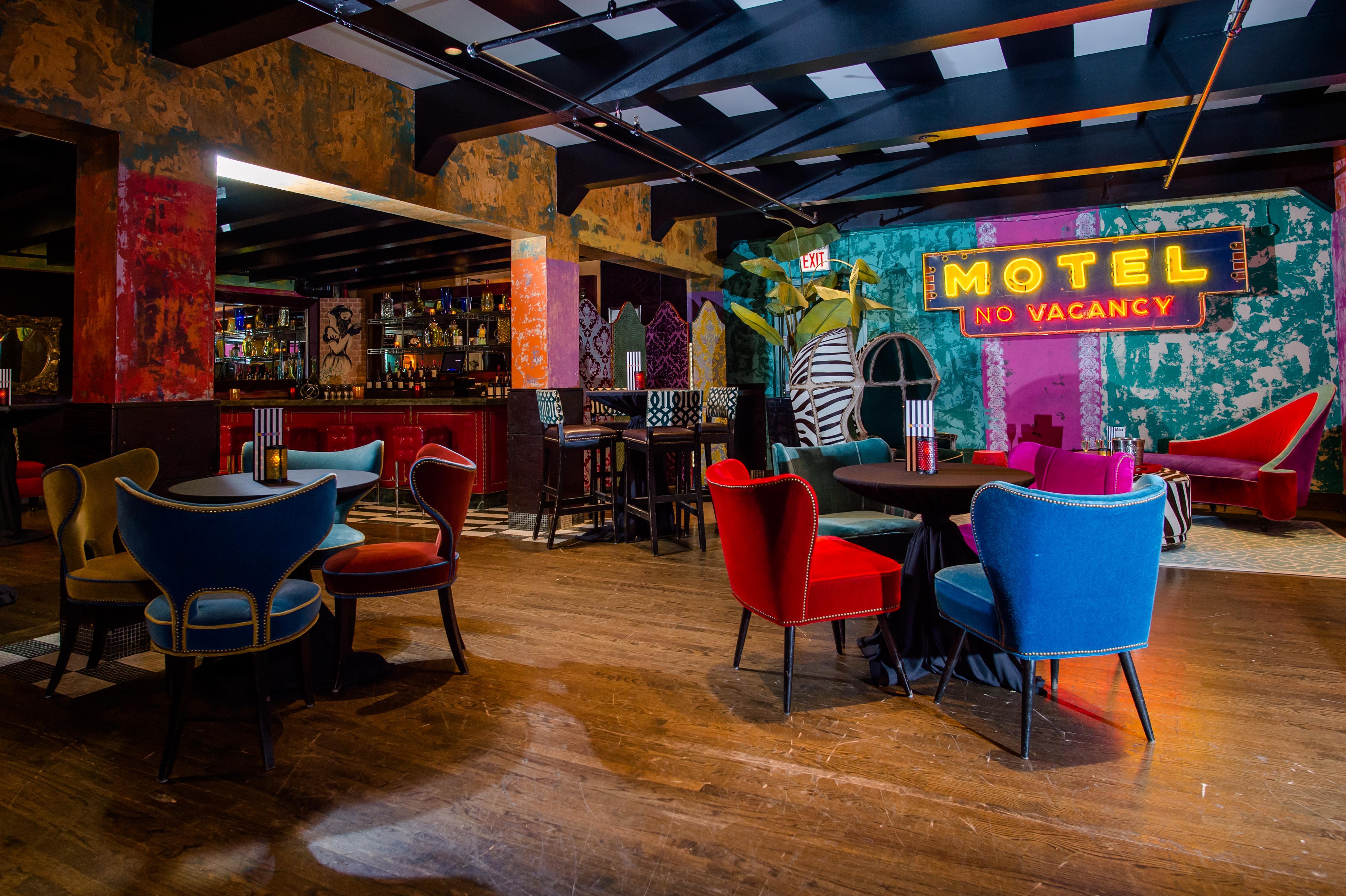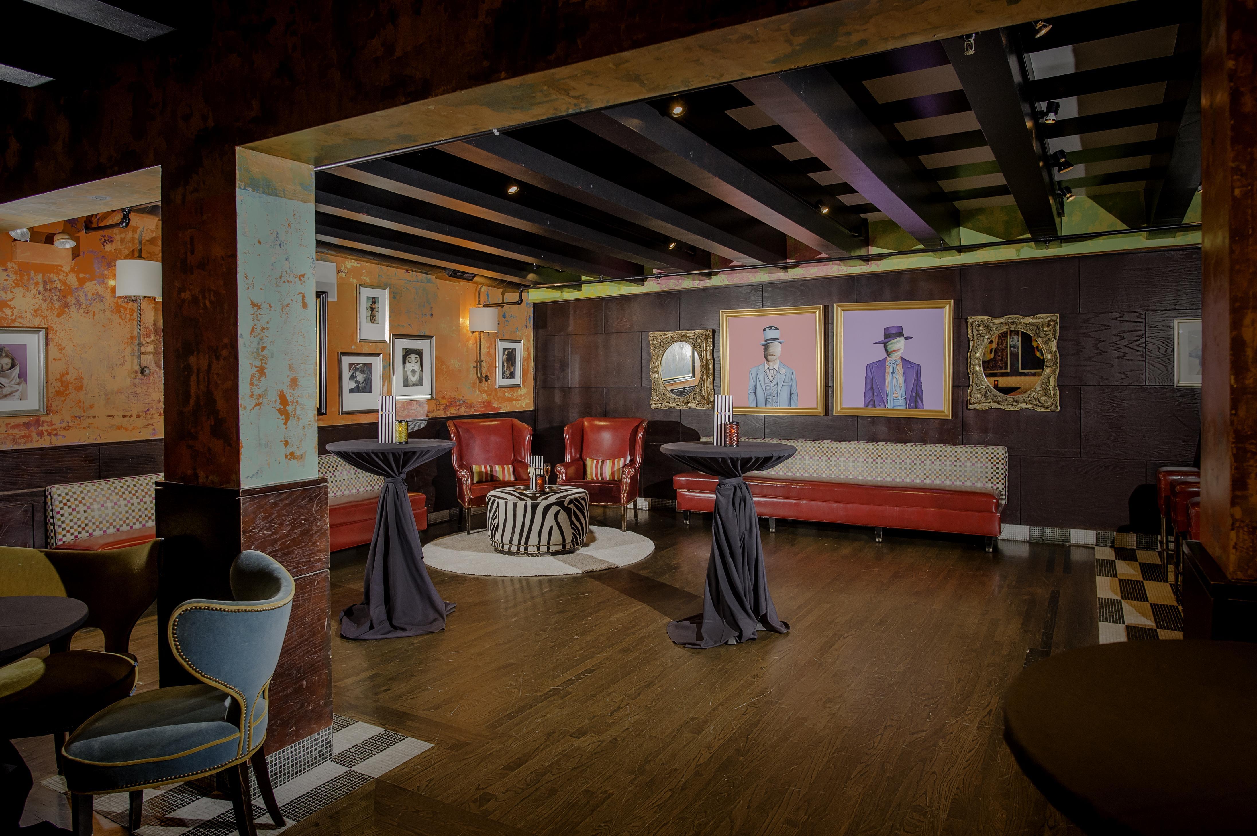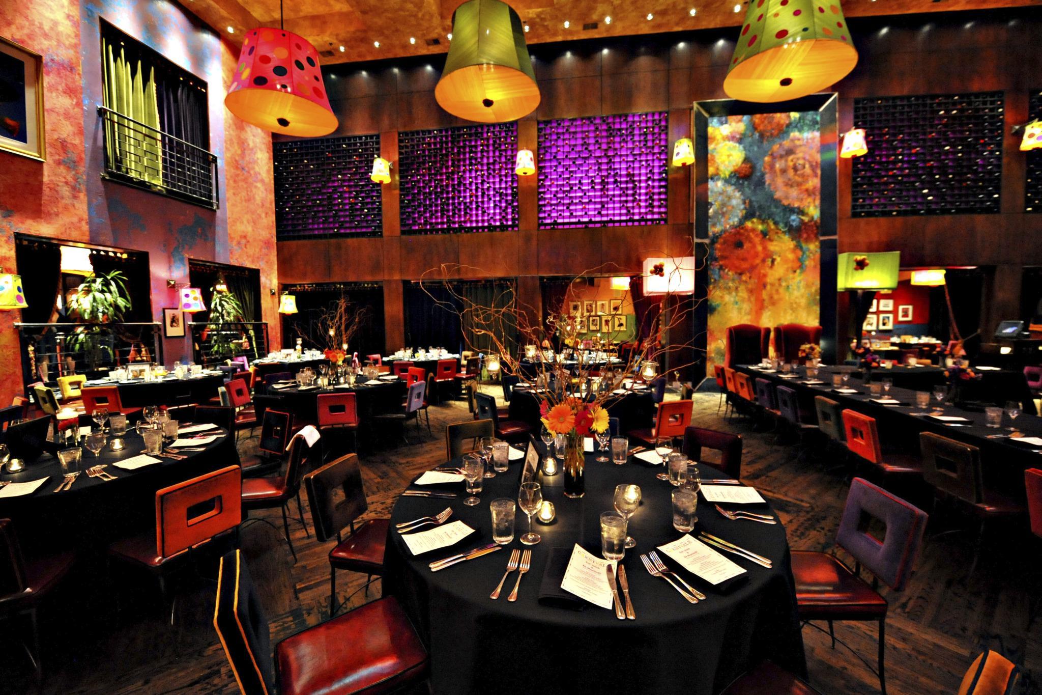 Overlooking a bustling main floor, the Tango and Catwalk Balcony welcome your guests with an open feel and warm decor full of color. Ideal for groups of 40-60 to have reception space, but can hold as many as 100 for a seated meal.