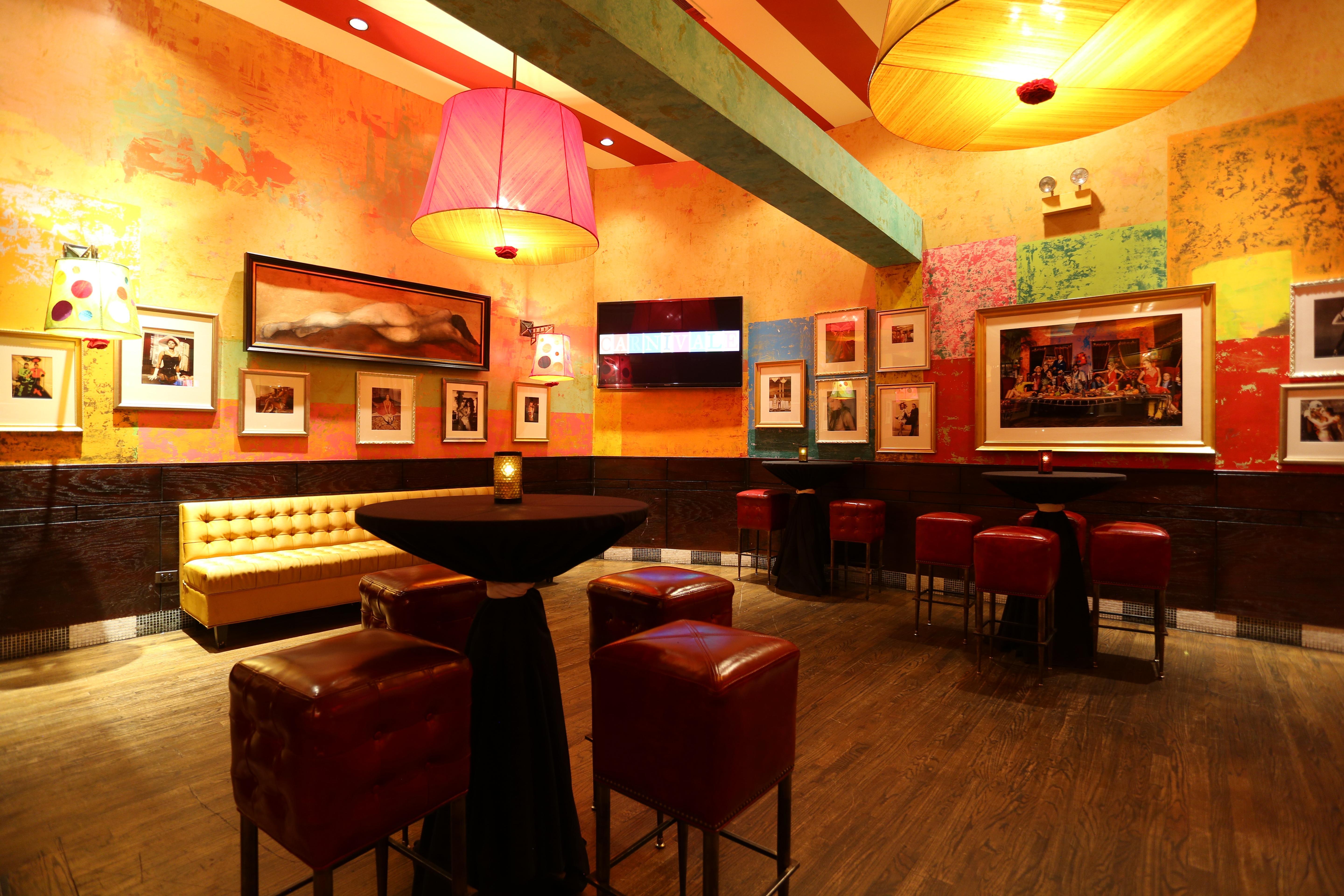 Completely private, Flamenco has the ambiance to connect with your guests and enjoy time together. The atmosphere is discreet, but vibrant with contemporary artwork. The space gives the feeling of a speakeasy, but maintains that famous Carnivale flair.