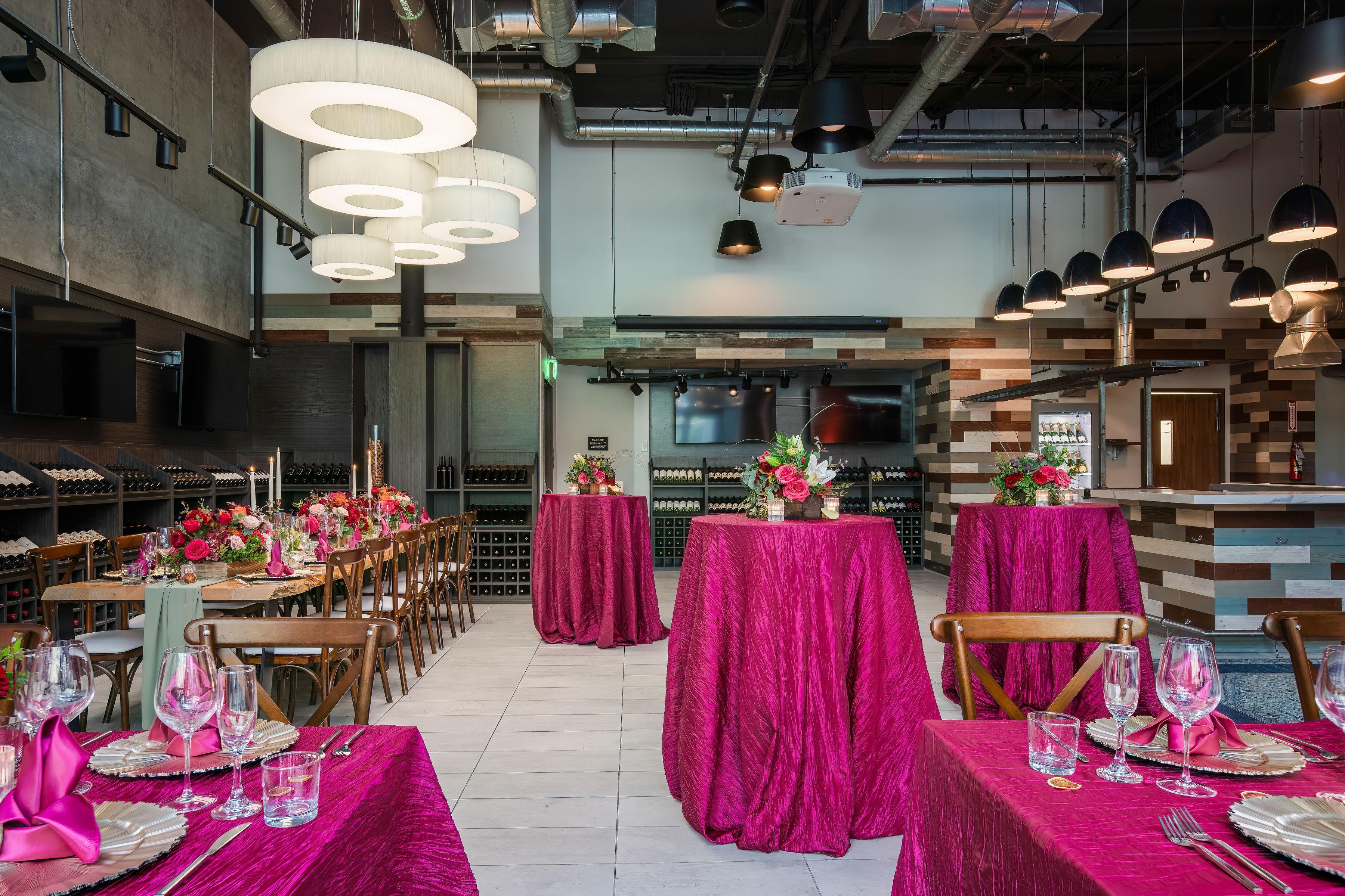 This unique event space is located on the first floor of Carté Hotel and features an industrial-chic blank canvas with cement walls and wooden accents, plus an outdoor lush garden-style patio with fire pits. Great space for private events including receptions, corporate events, social gatherings, and wine + spirit tastings. Live music welcome but not necessary as this space is ready to host your next rehearsal dinner, welcome reception, showers and more.