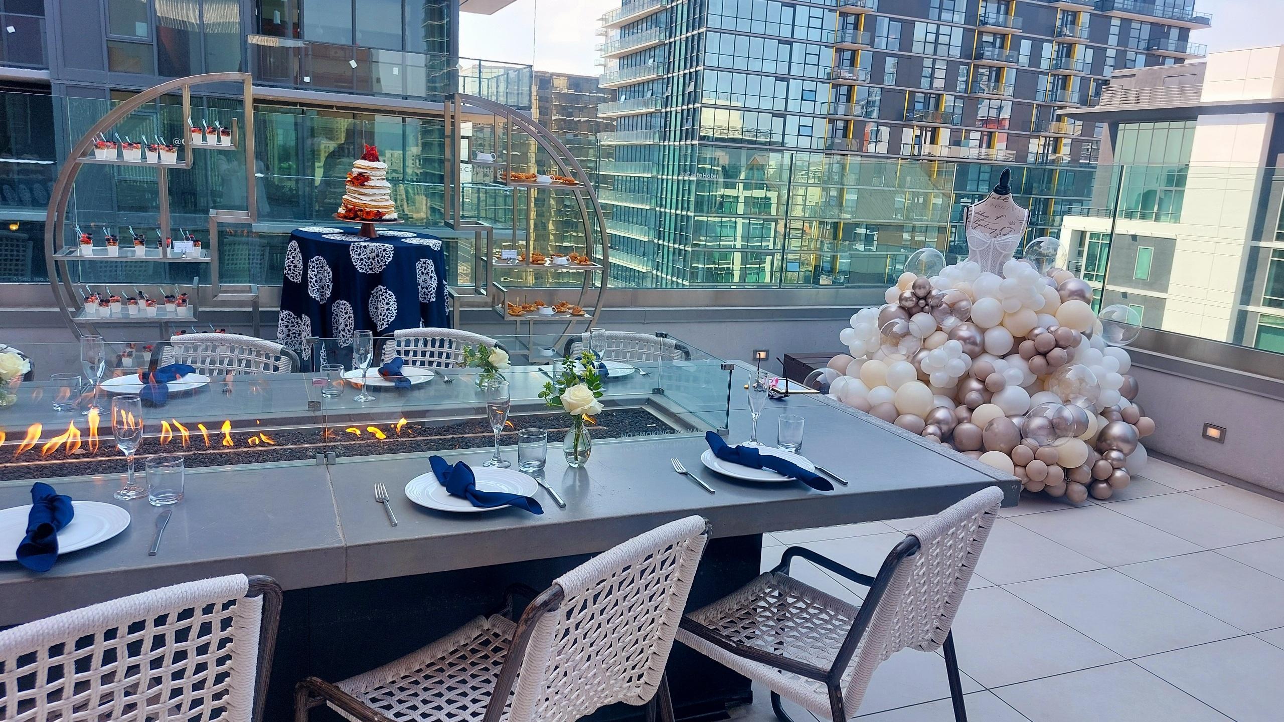 Create lasting memories with receptions, elegant ceremonies, farewell brunches, and joyous surprise proposals on this enchanting al fresco terrace with cityscape views.