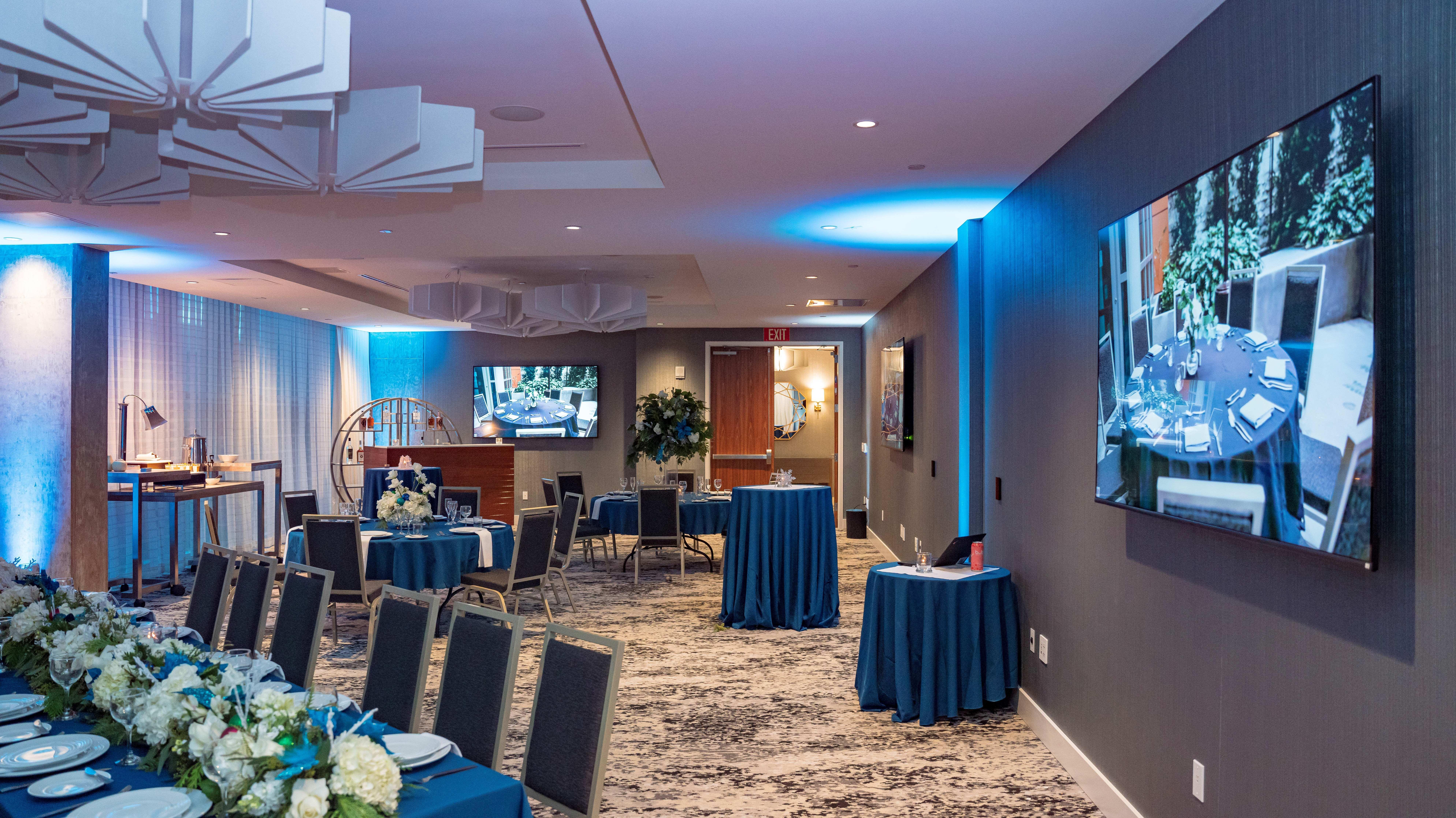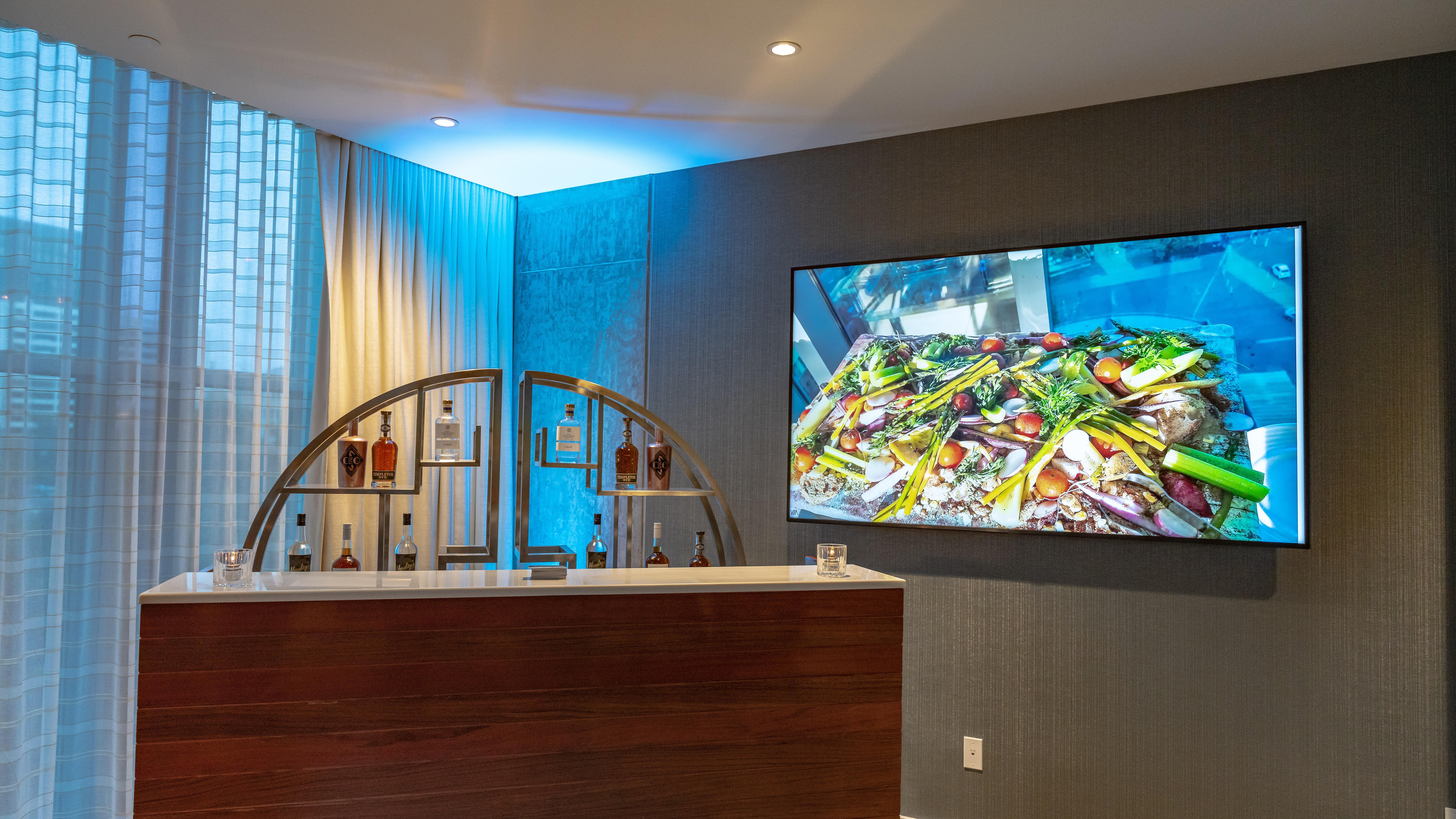 Complimentary Wi-Fi. Three 80” Smart TVs with fully-wireless adaptability. All streaming devices can be accessed at no additional cost. Client is allowed to bring outside AV at no additional cost. Dimmers to create ambiance.