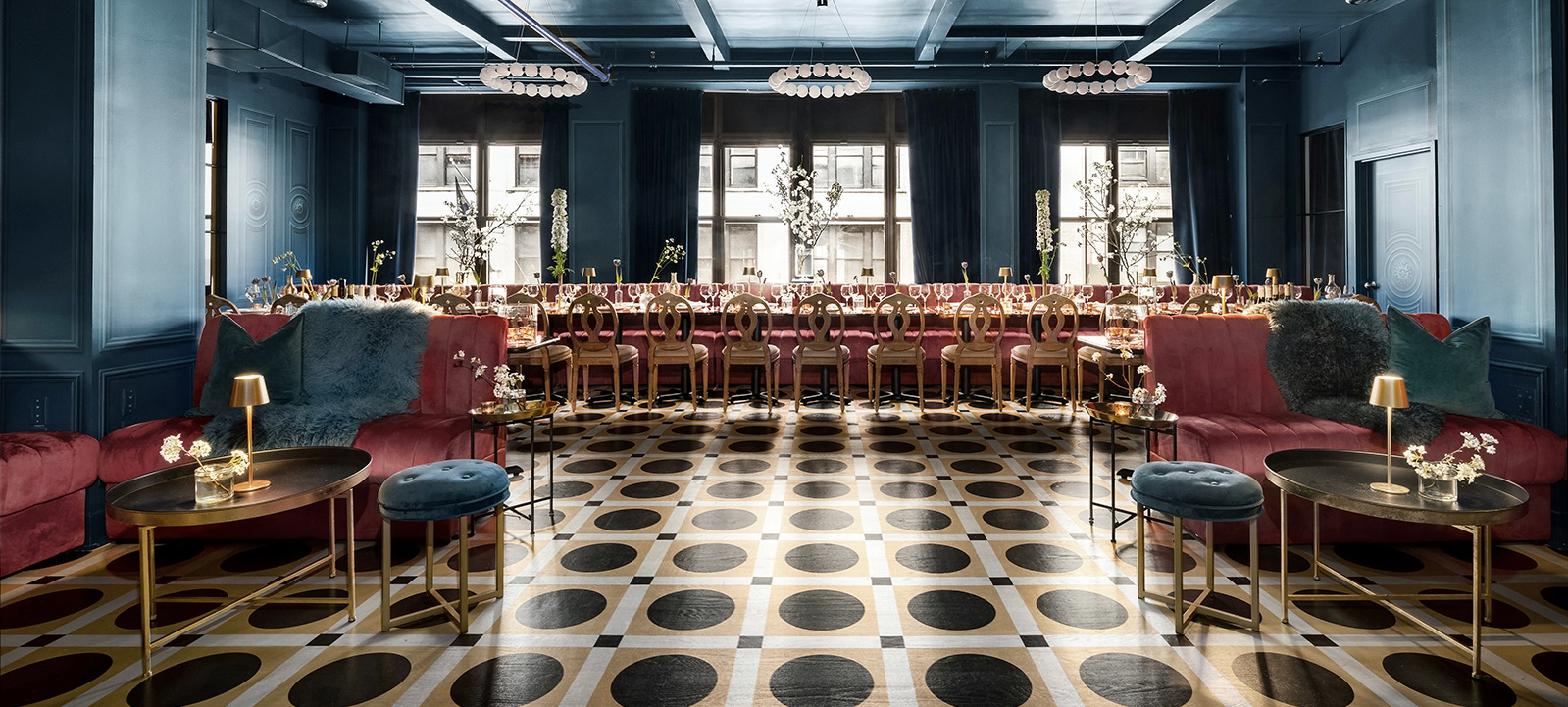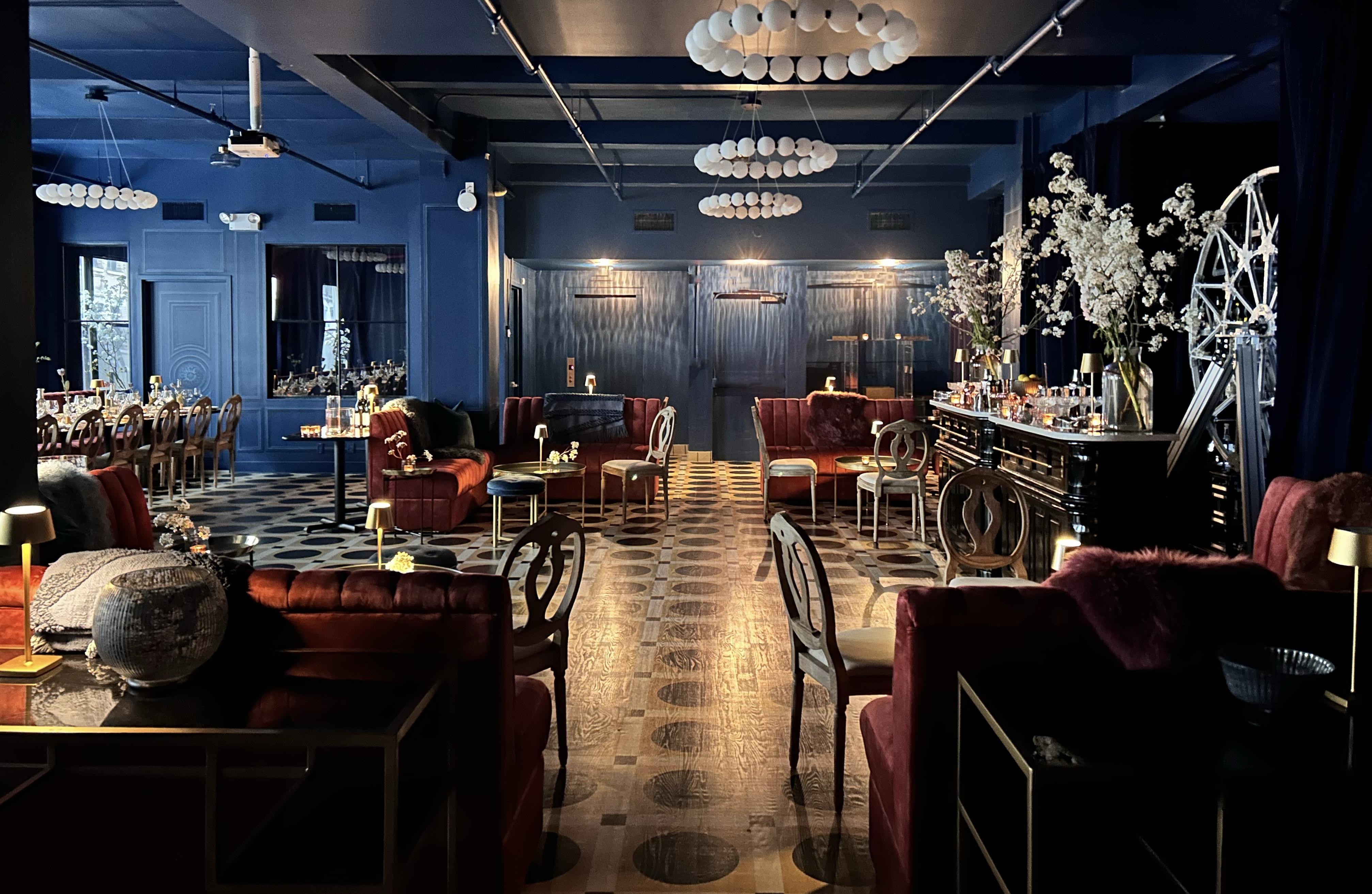 Carton House is a new beautiful indoor venue in Nomad/Chelsea New York designed for Weddings, Rehearsal Dinners, Engagement Parties, Bridal Showers and more. The space is fully decorated, has beautiful lounge furniture, elegant bars, copper mirror topped dinner tables, elegant place settings, a flexible layout. There is lighting on dimmers, complimentary in-house florist, sound system if using our complimentary in-house DJ and exceptional cuisine from the Peter Callahan Catering team. The cuisine is elegant, seasonal, local, thoughtful and delicious, from classic with just the right amounts of whimsy as desired. The restrooms are fully decorated. All is overseen by the renowned Wedding team from Peter Callahan Events who have been producing landmark Wedding events in and around NYC for the last two decades. Peter Callahan has been a longtime editor at Martha Stewart Weddings. Up to 160 guests for cocktails, and seated dinner as well as ceremonies and smaller events as well.