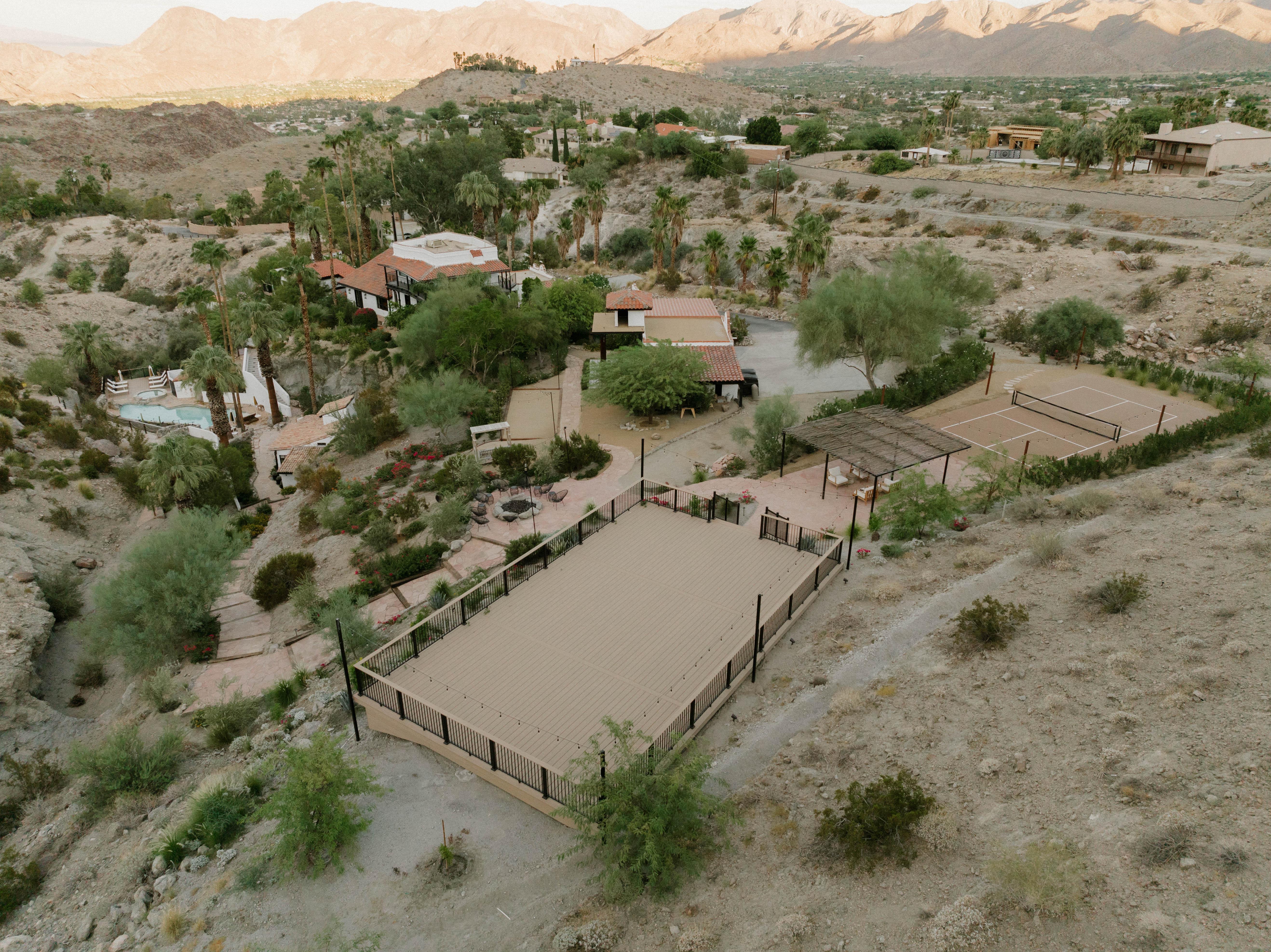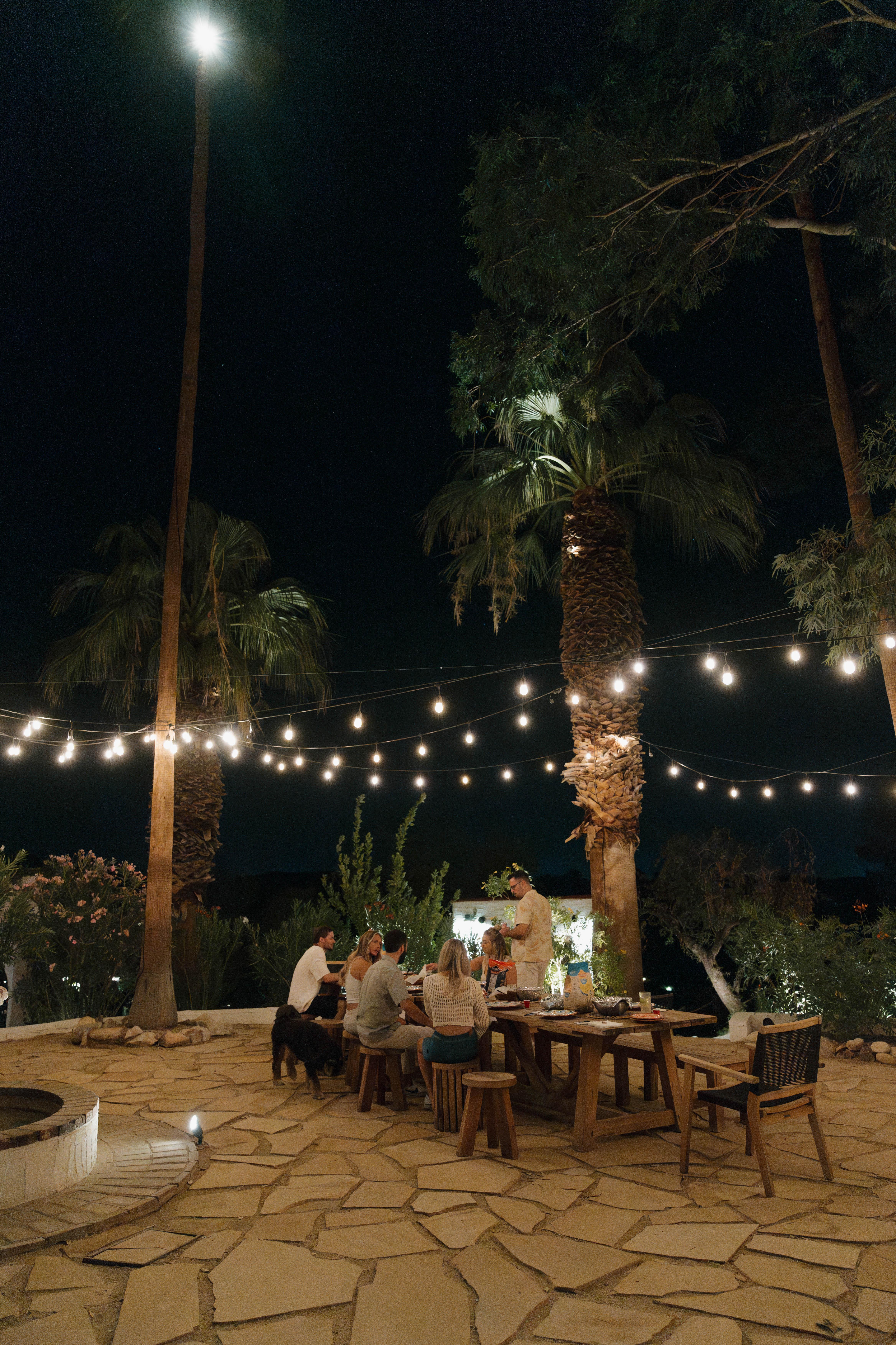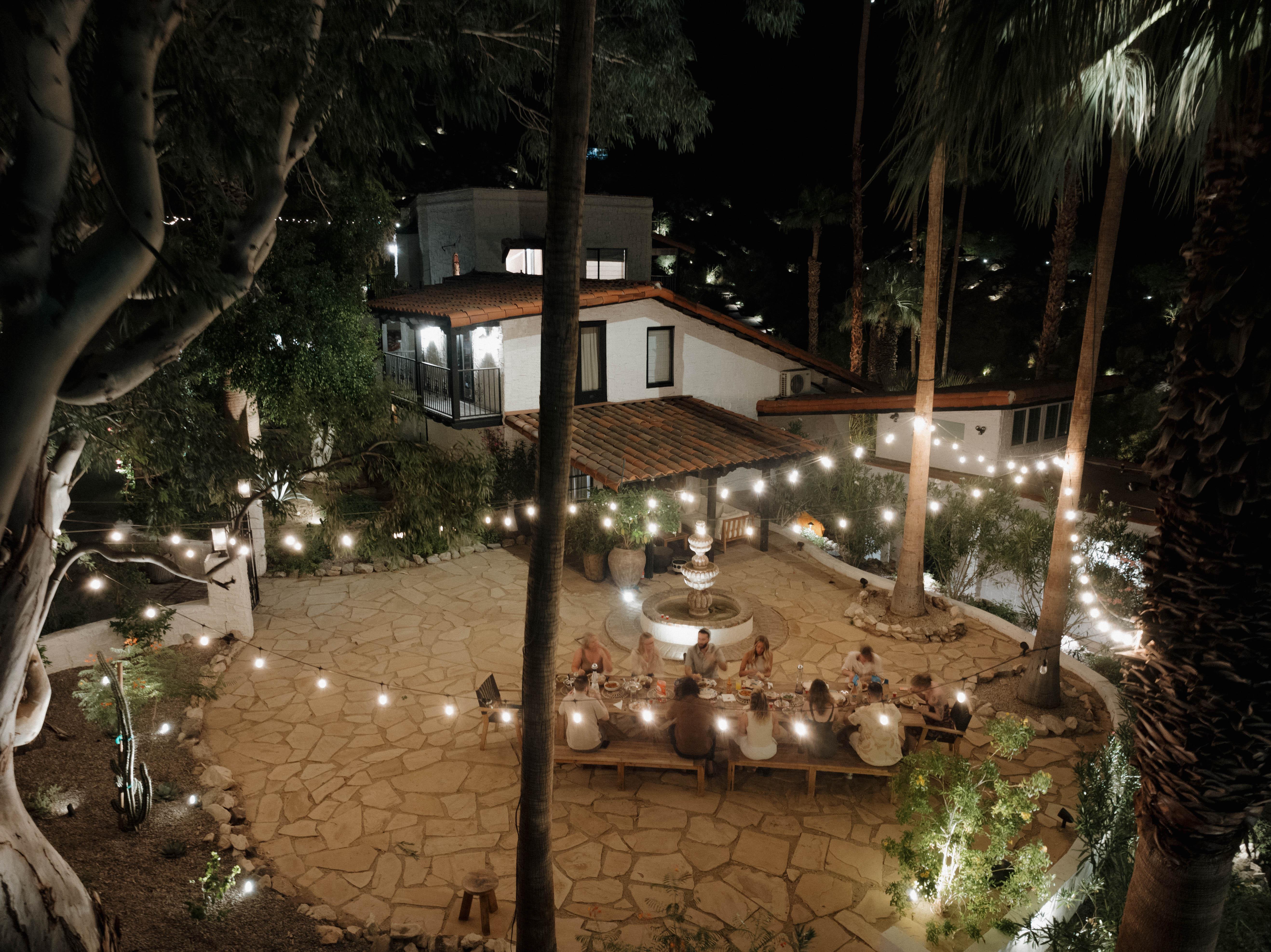 Owned by a famous host and designer, Casa Tierra is an exceptional wedding venue for many reasons. Its unique Spanish-style architecture, paired with modern, cozy touches, provides a beautiful and distinctive backdrop that adds natural elegance and romance to any celebration. You can dress it up as much, or as little, as you like. The spacious layout, spanning over 5,000 square feet with 7 bedrooms and 6.5 baths, allows for both intimate gatherings, and larger dinner parties under the golden desert light. The property’s seamless indoor-outdoor flow is ideal for a wedding; allowing ceremonies, cocktail hours, & dinners to take place outdoors against the desert landscape, while also offering perfectly curated indoor options for stunning photos. This flexibility enhances the experience, giving couples and their guests a variety of beautiful spaces to enjoy throughout the day. The mountainside location provides a sense of privacy and intimacy, creating an exclusive atmosphere.